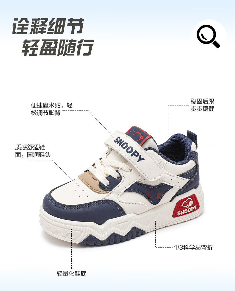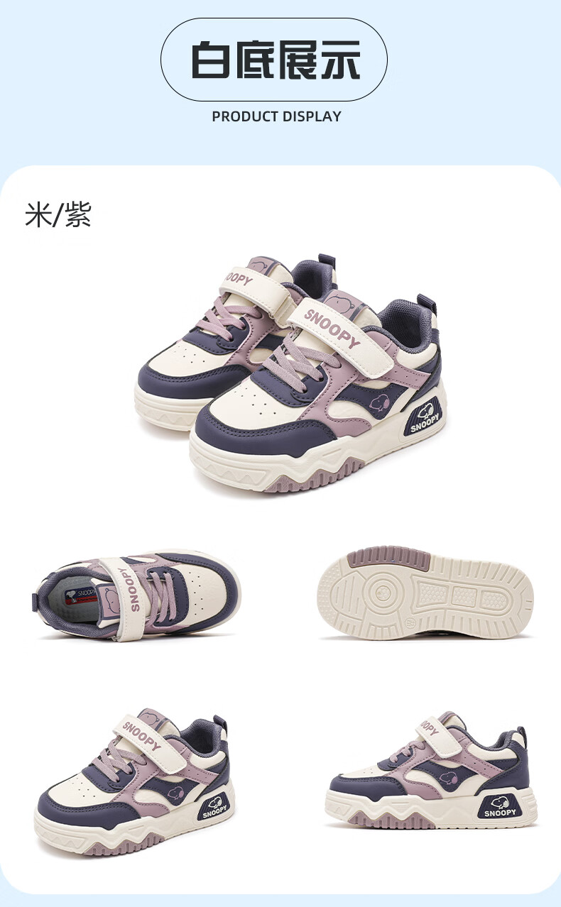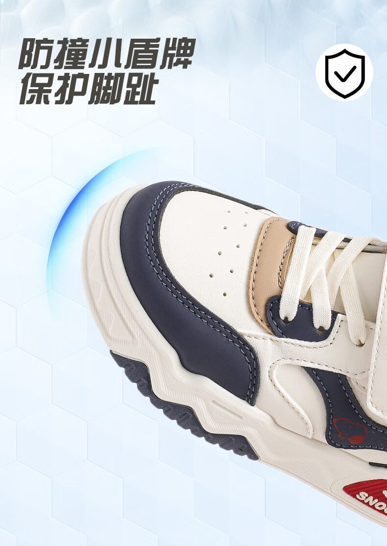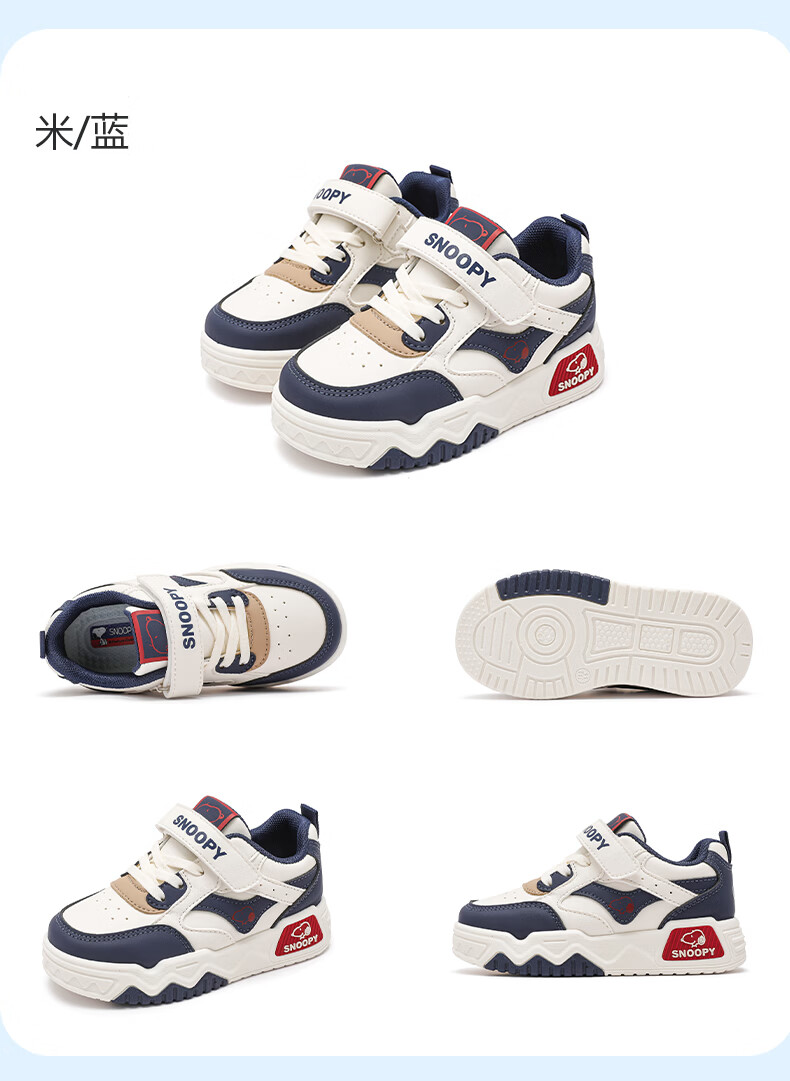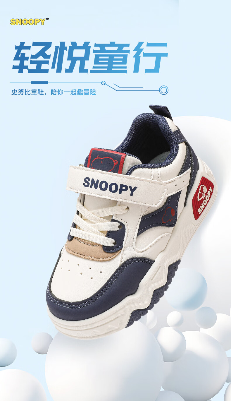 史努比童鞋女童板鞋低帮高颜值皮面防水2026春季新款休闲百搭儿童运动鞋 黑/绿 38 内长24.3/脚长23.3