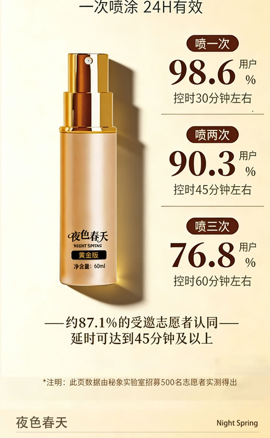 夜色春天延时喷雾男用延时喷剂男专用持久防早泄敏感享久持久不射延迟喷剂 1瓶房事急用一喷秒硬可水洗勃起不射