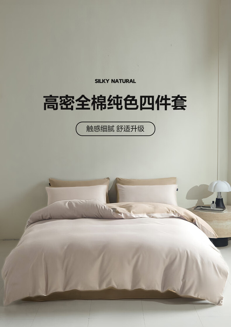 无印良品床上四件套纯棉高端轻奢高级感新疆长绒棉床单被套全棉被罩床笠款 浅米卡其棕【亲肤柔软 A类品质】 1.8m 床单款 四件套-被套200x230cm