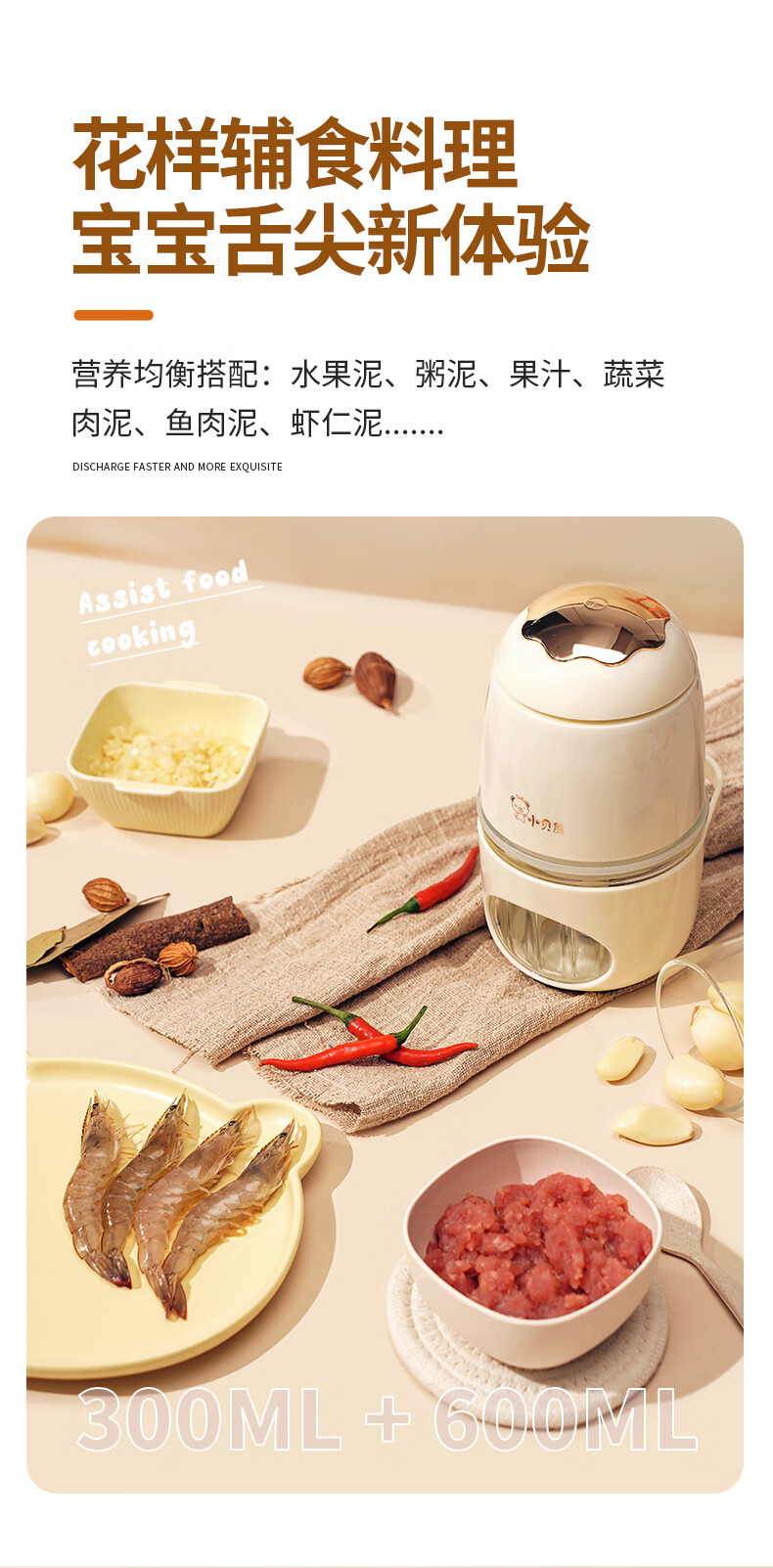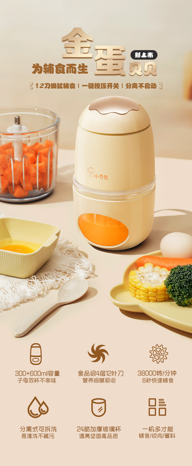 小贝熊(xiaobeixiong)小贝熊辅食机婴儿小型宝宝辅食工具套辅食理机研磨打泥神器多功能