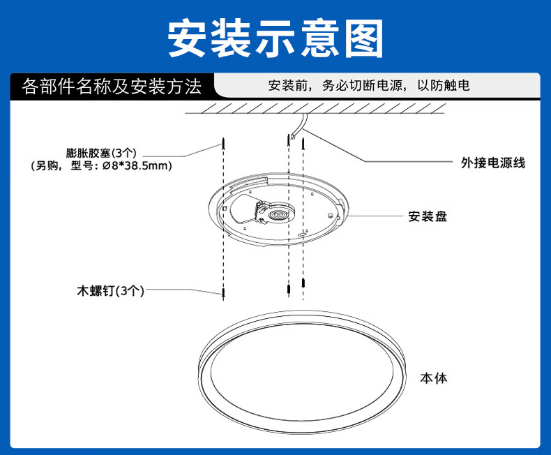 公牛(BULL)LED吸顶灯MX-E048E-BS三段调光卧室灯(M16-B)48W 送安装