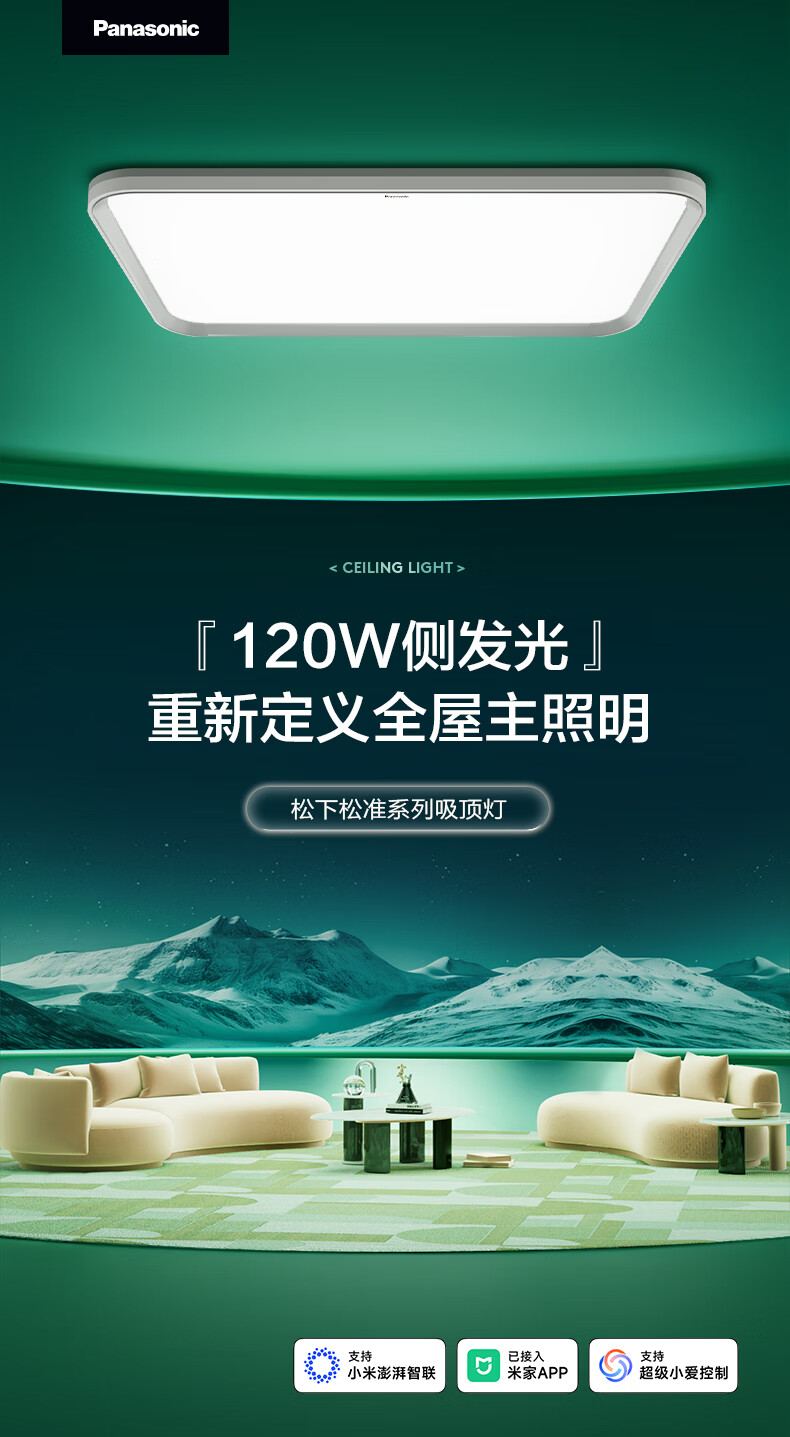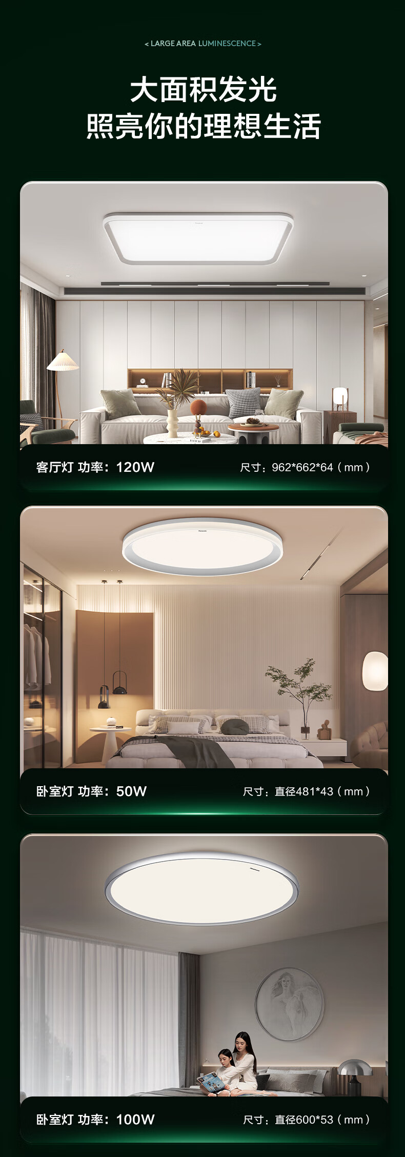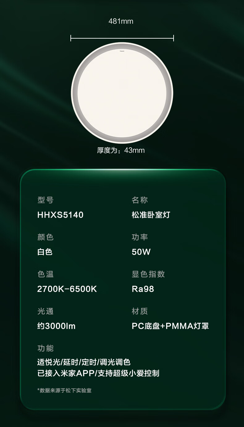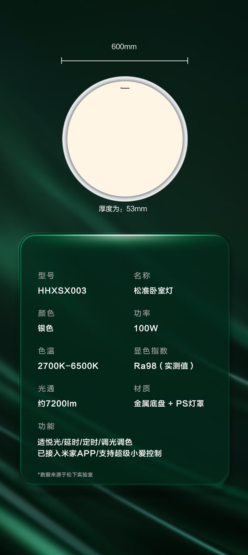 松下(Panasonic)室内吸顶灯松准智能全光谱护眼灯50瓦 18㎡内适用 3000lm