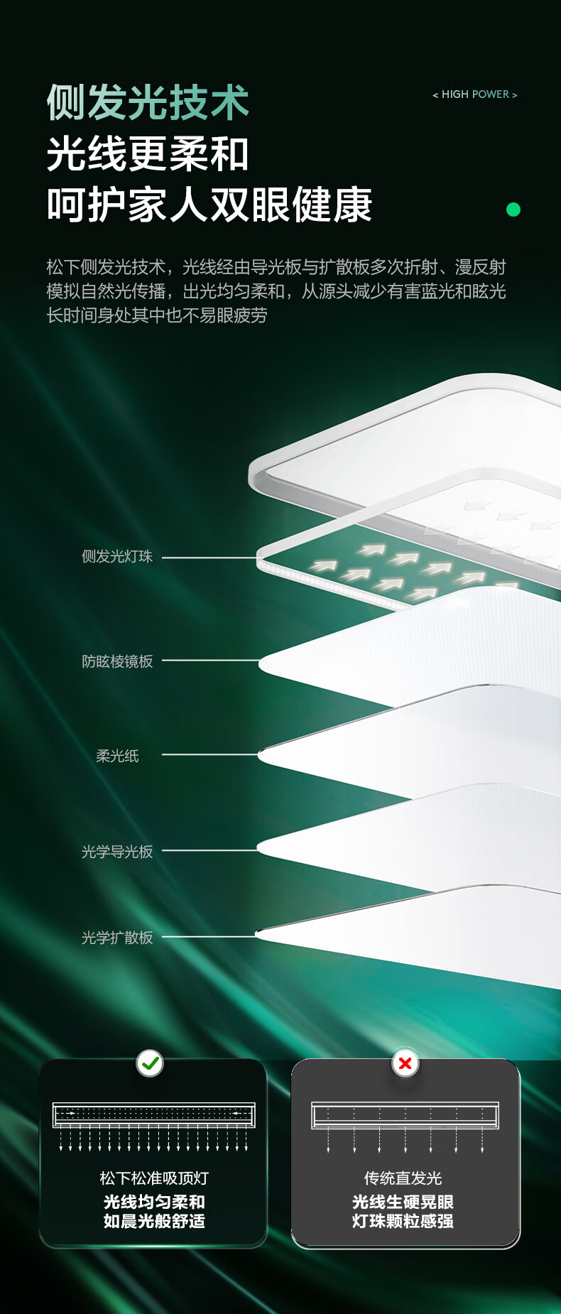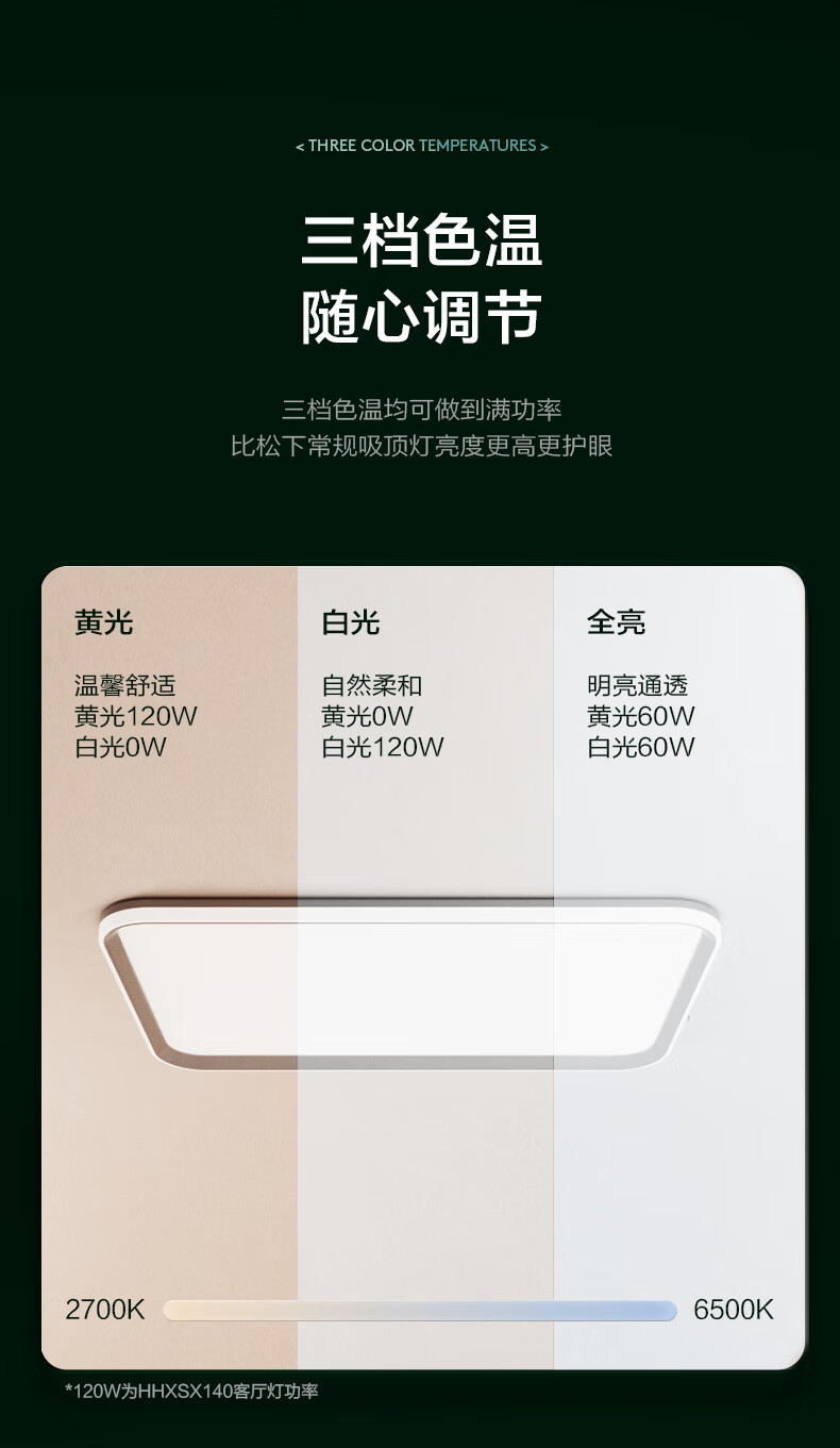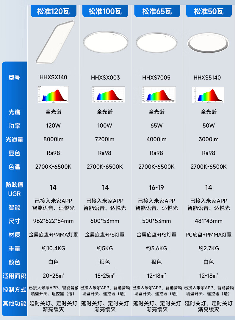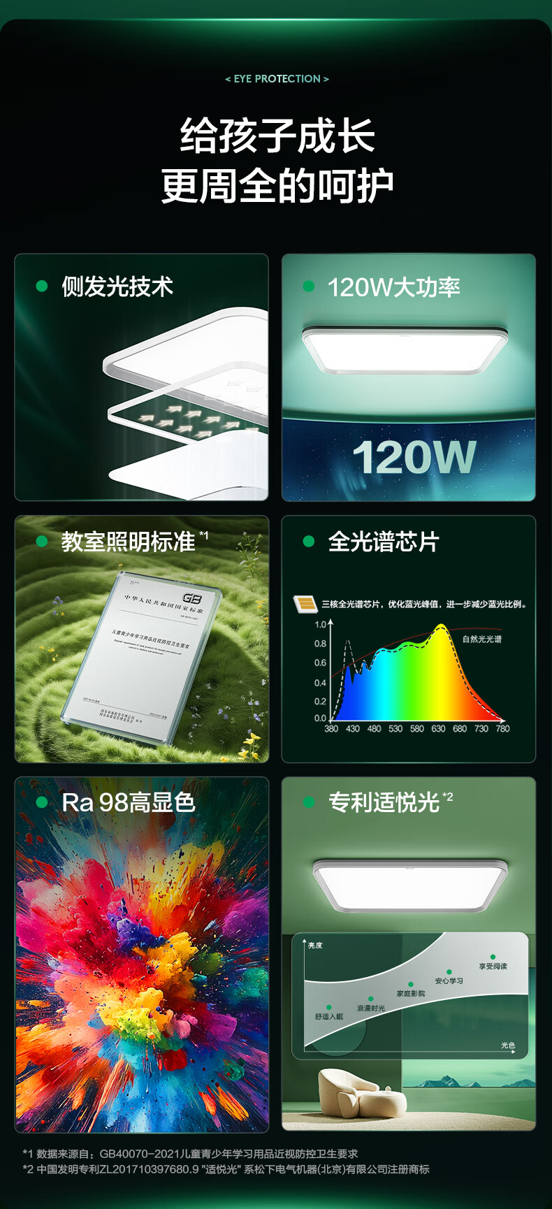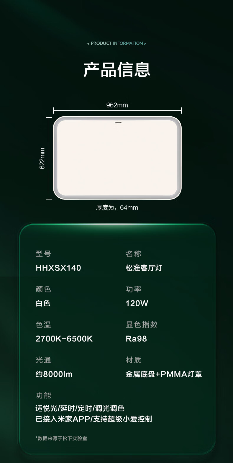 松下(Panasonic)室内吸顶灯松准智能全光谱护眼灯50瓦 18㎡内适用 3000lm
