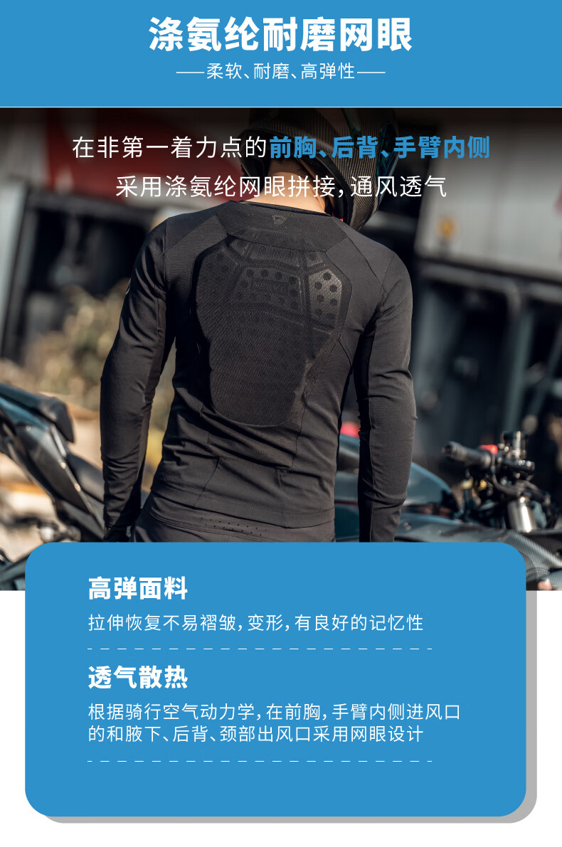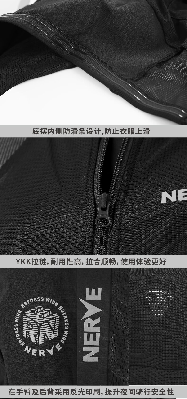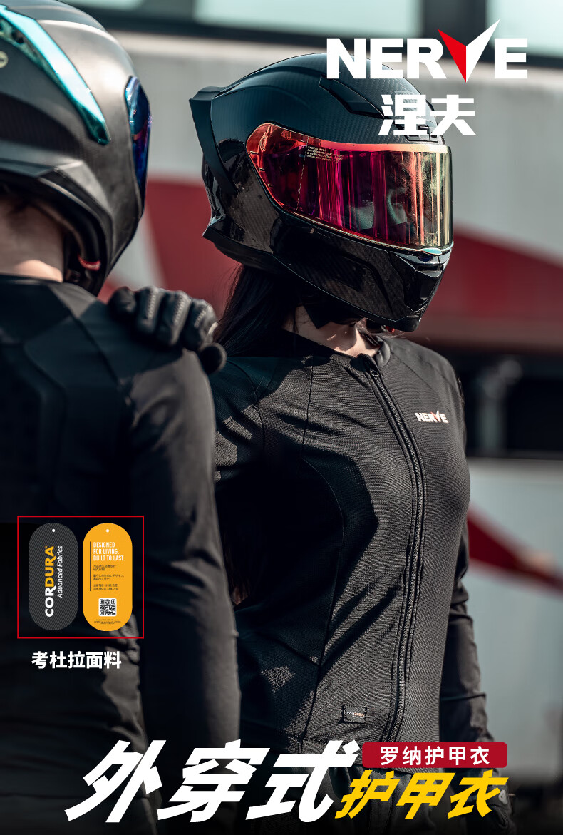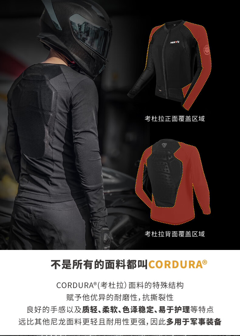 NERVE涅夫考度拉面料摩托车护具防摔骑行服罗纳护甲衣透气四季防护衣服 黑色(尺寸偏小) XL