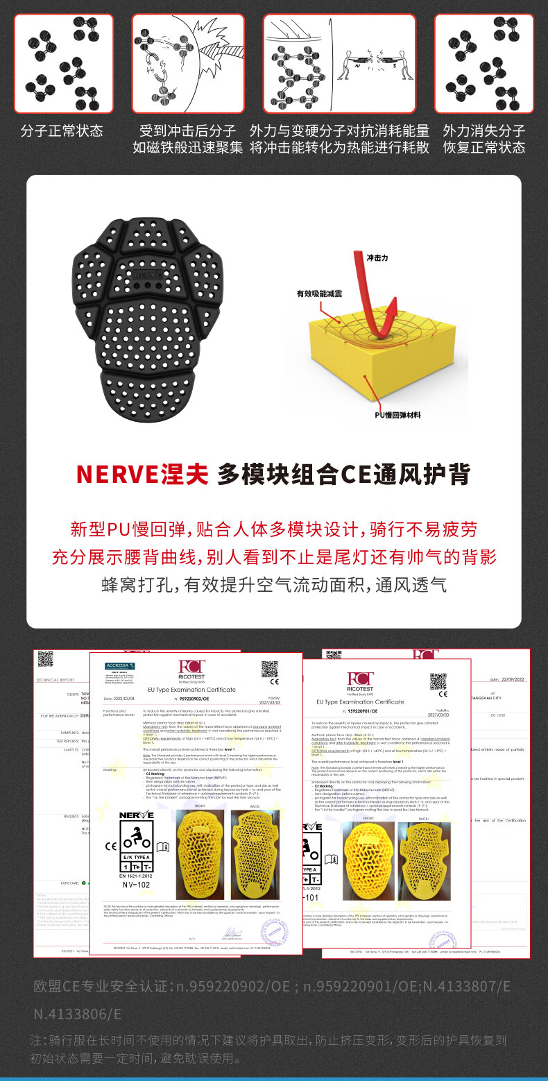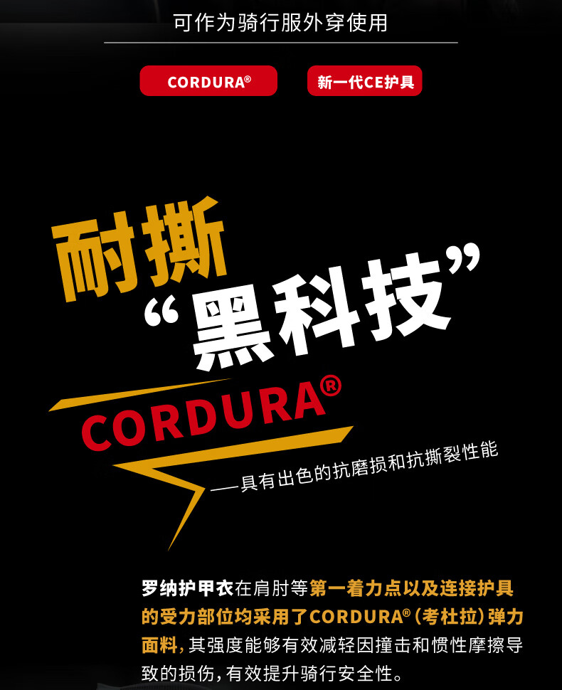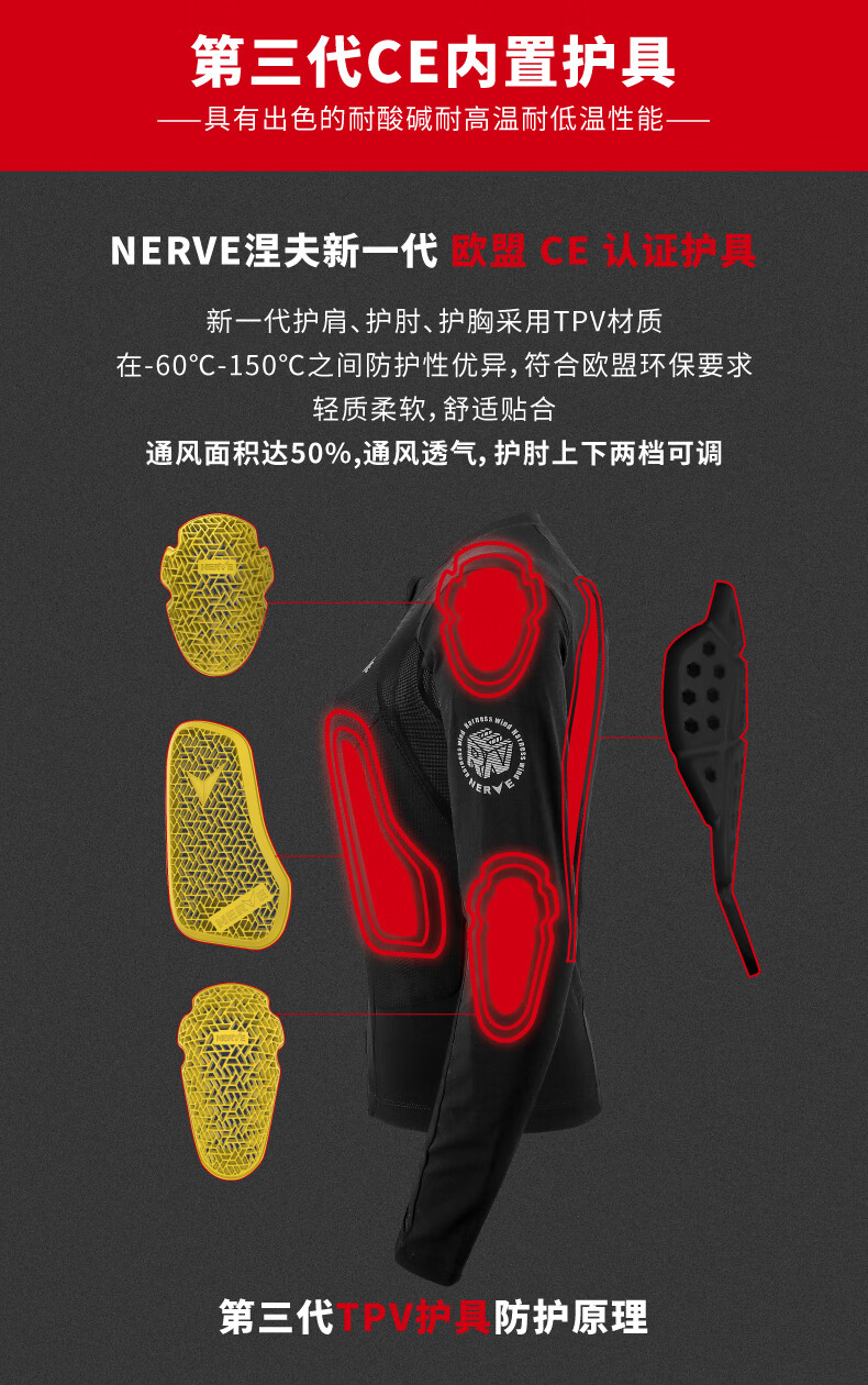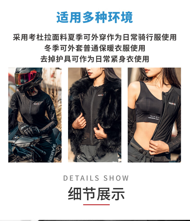 NERVE涅夫考度拉面料摩托车护具防摔骑行服罗纳护甲衣透气四季防护衣服 黑色(尺寸偏小) XL