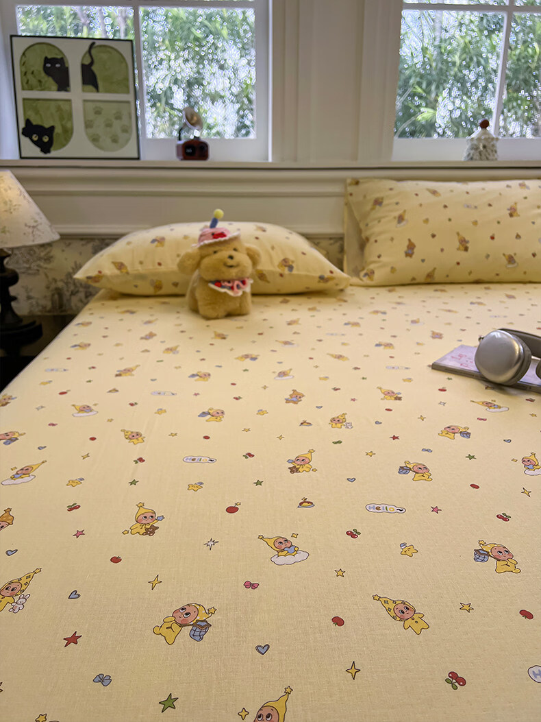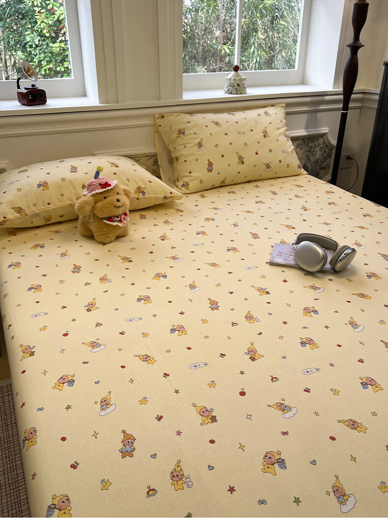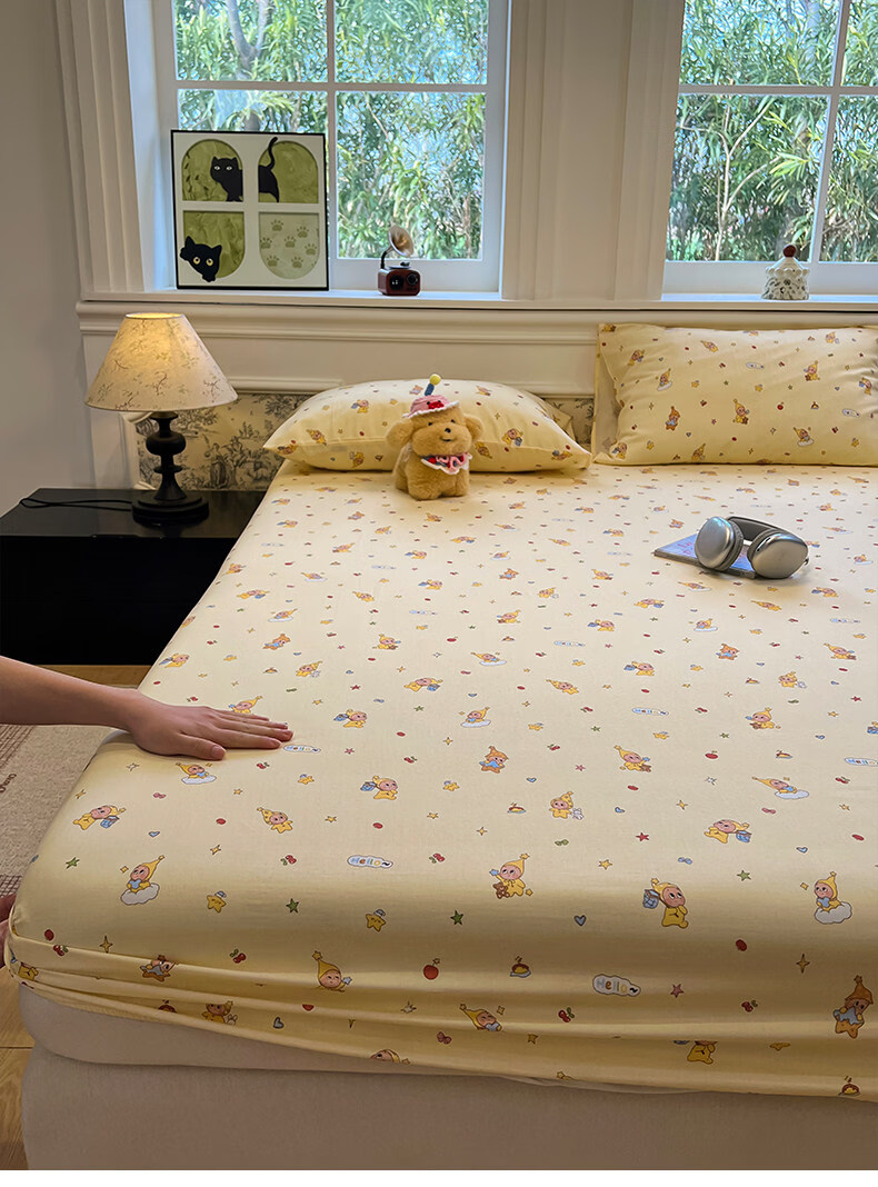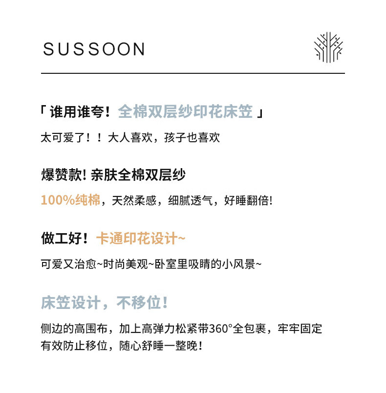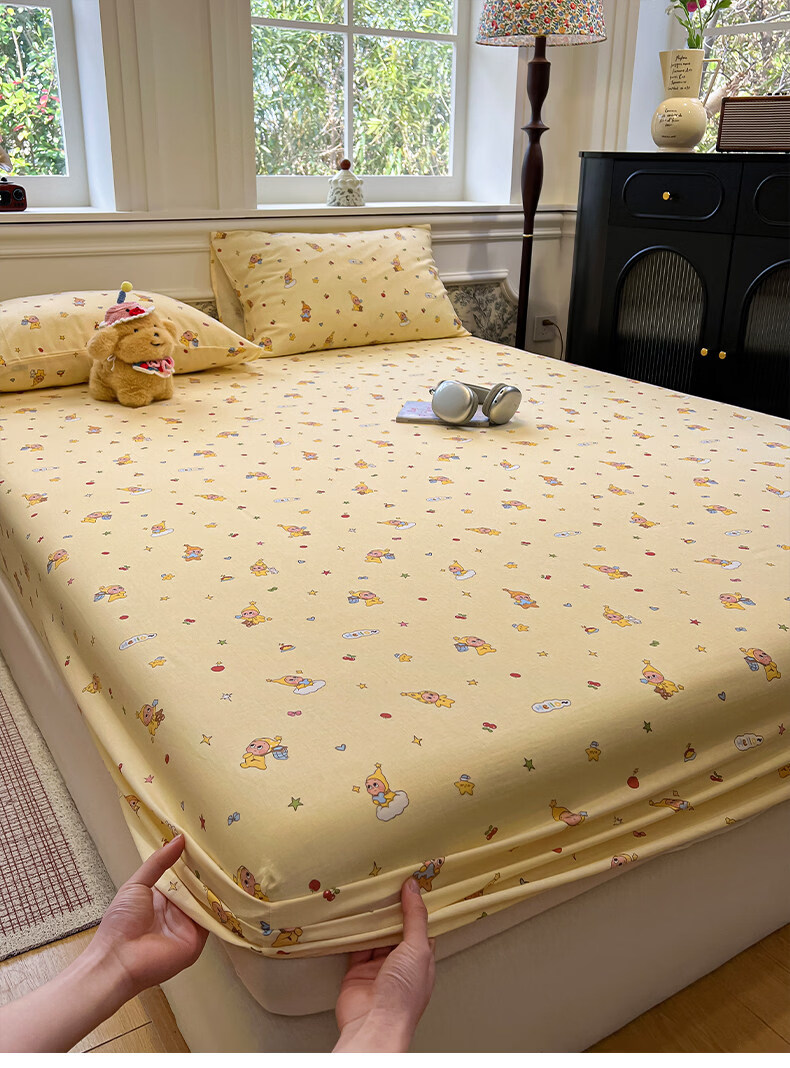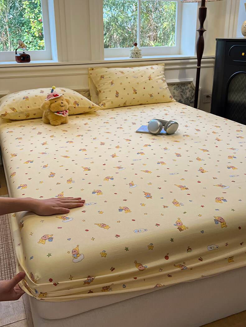 苏萱2026新款全棉双层纱床笠单件四季通用透气床罩榻榻米床垫保护罩3 星星人 床笠单件:120x200cm