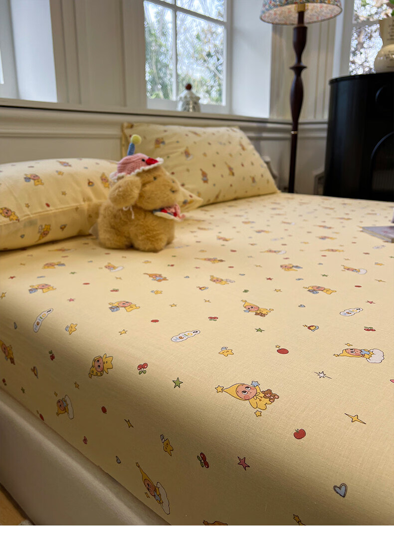 名创优品(MINISO)纯棉床笠1.8米x2米 全棉床笠罩床垫保护套被单枕套三件套 全棉-香槟 90cm*200cm 单床笠