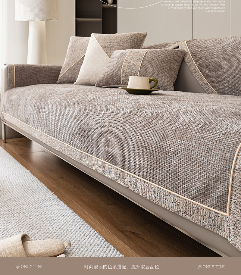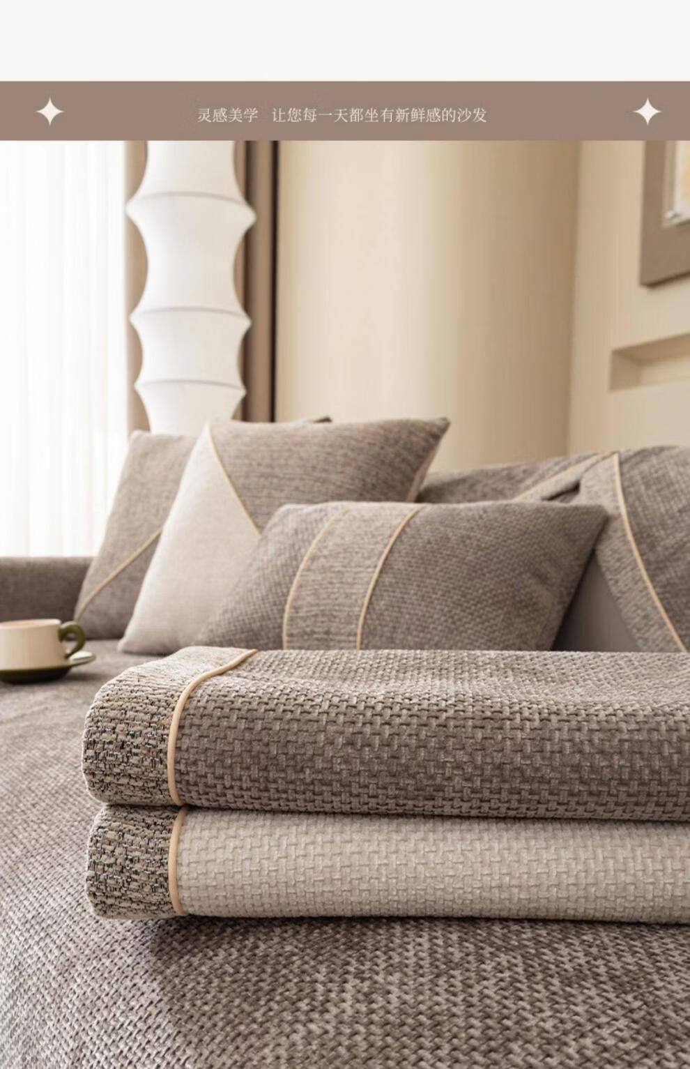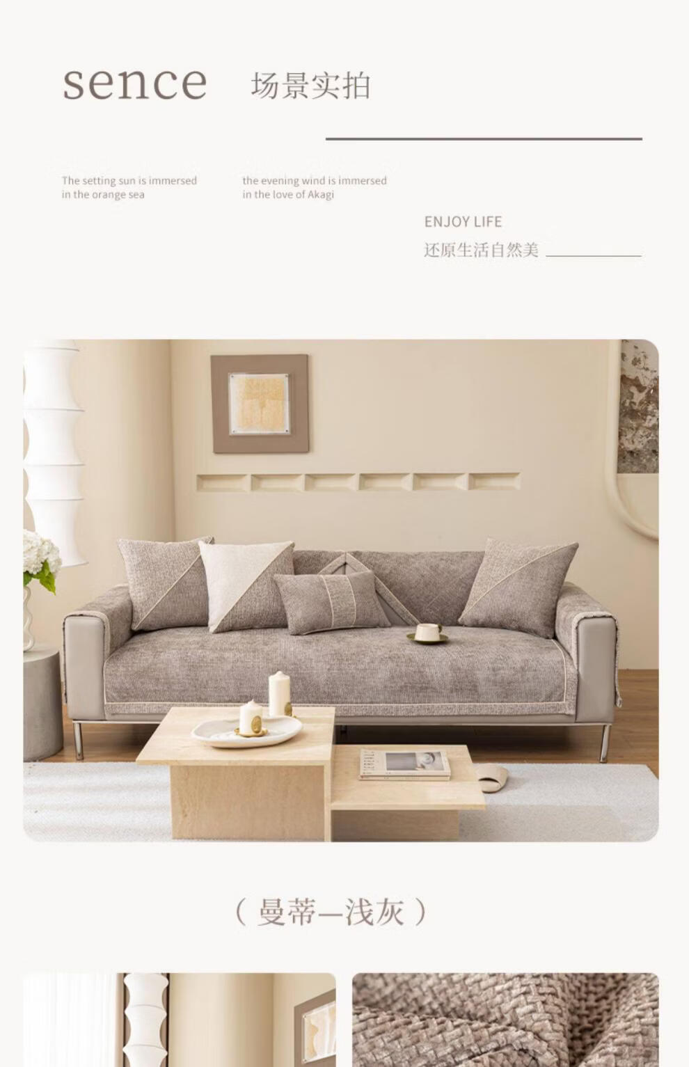 DONOYA 多罗亚简约现代轻奢沙发垫四季通用防滑2026年新款高端盖布雪尼尔座套罩 曼蒂-浅灰 1cm*1cm 定制专拍(定制不退换)