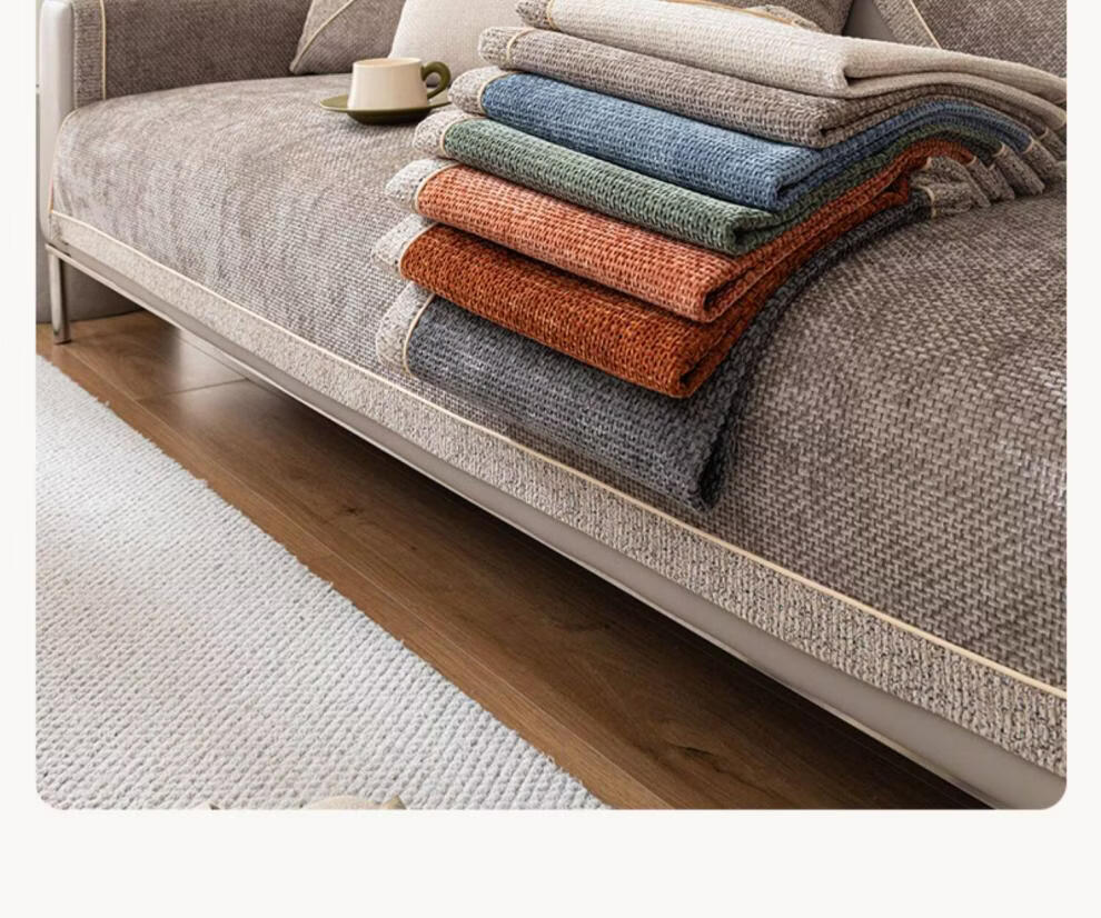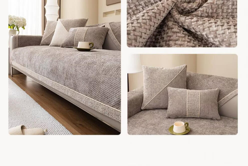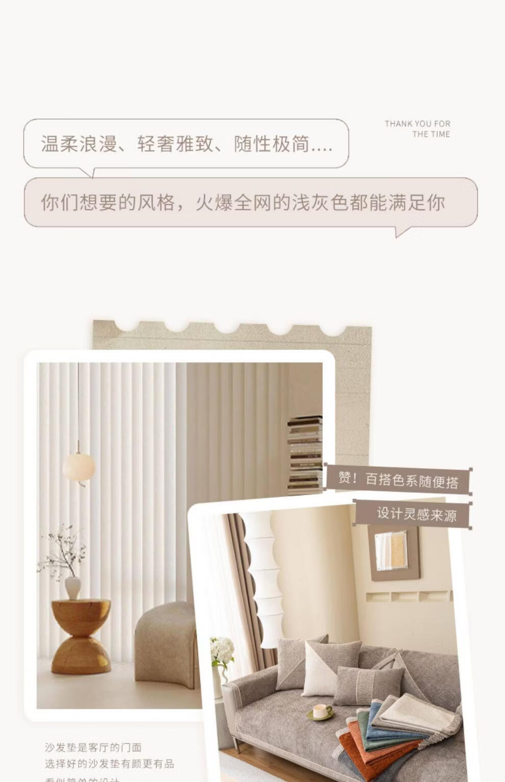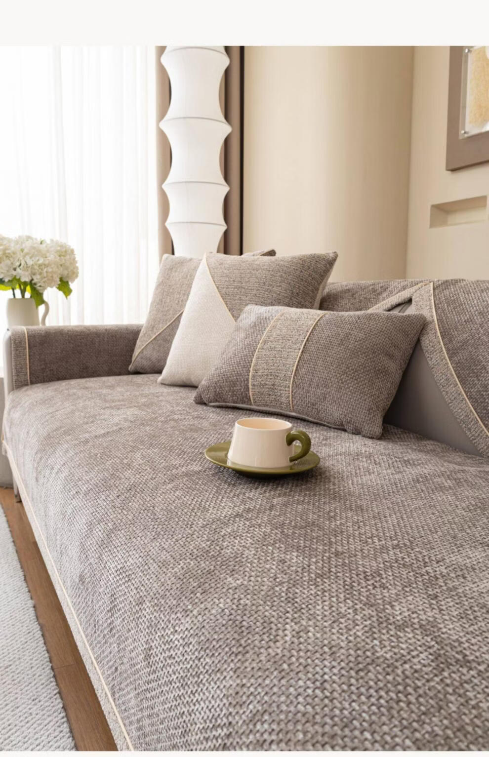 DONOYA 多罗亚简约现代轻奢沙发垫四季通用防滑2026年新款高端盖布雪尼尔座套罩 曼蒂-浅灰 1cm*1cm 定制专拍(定制不退换)