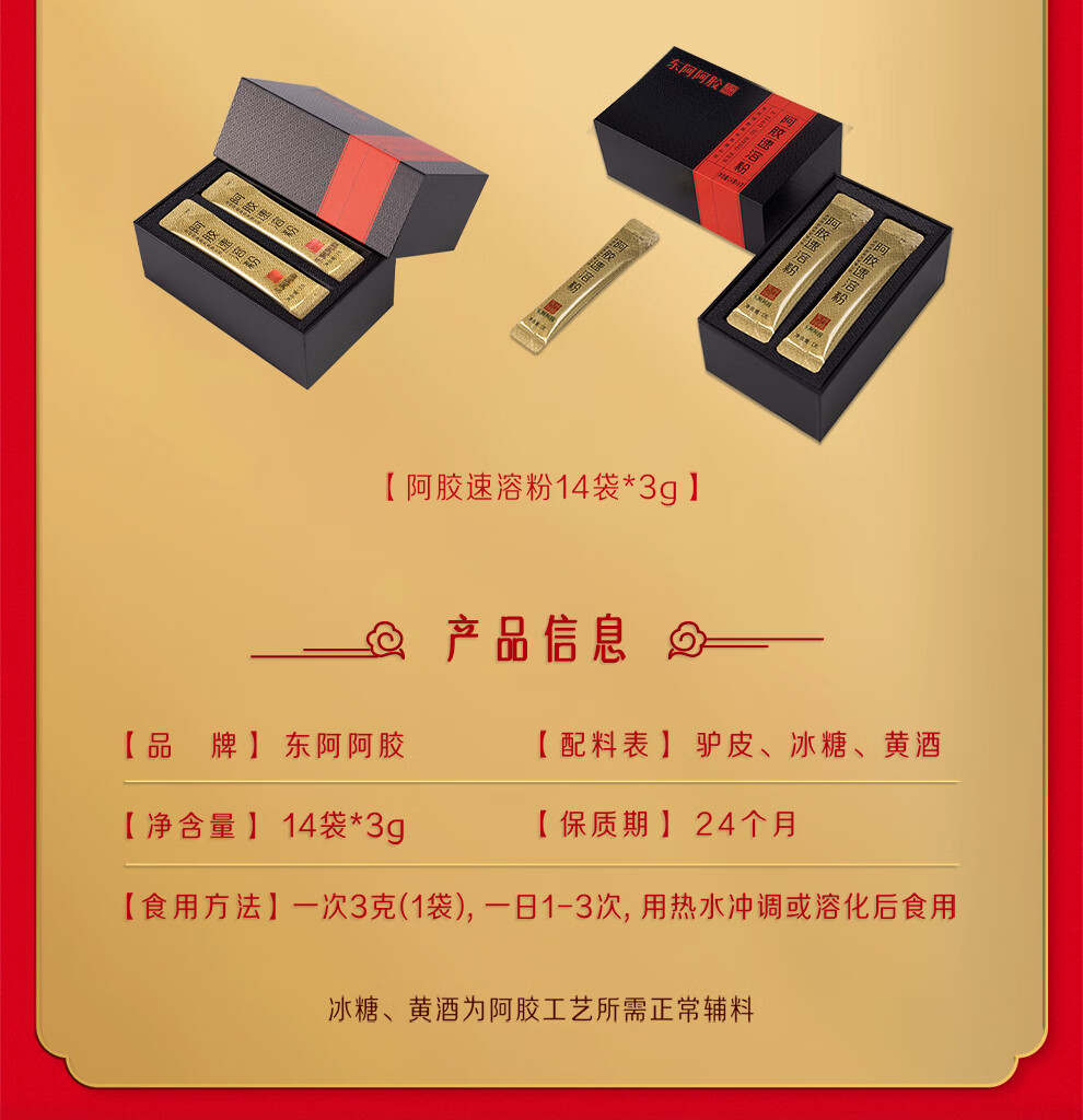 东阿阿胶速溶粉小金条3g*14袋阿胶粉礼盒礼品送妈妈礼物长辈老人营养品