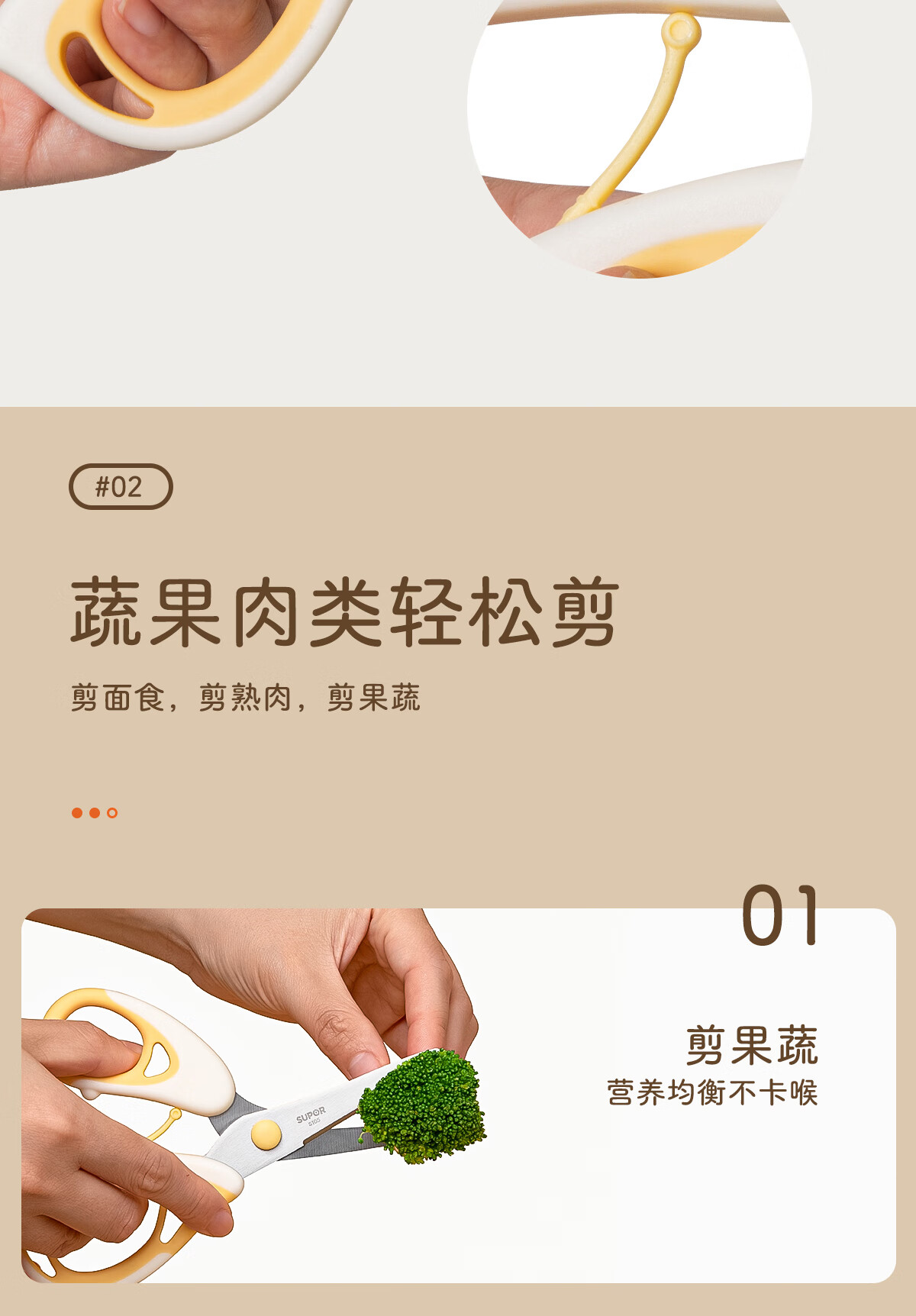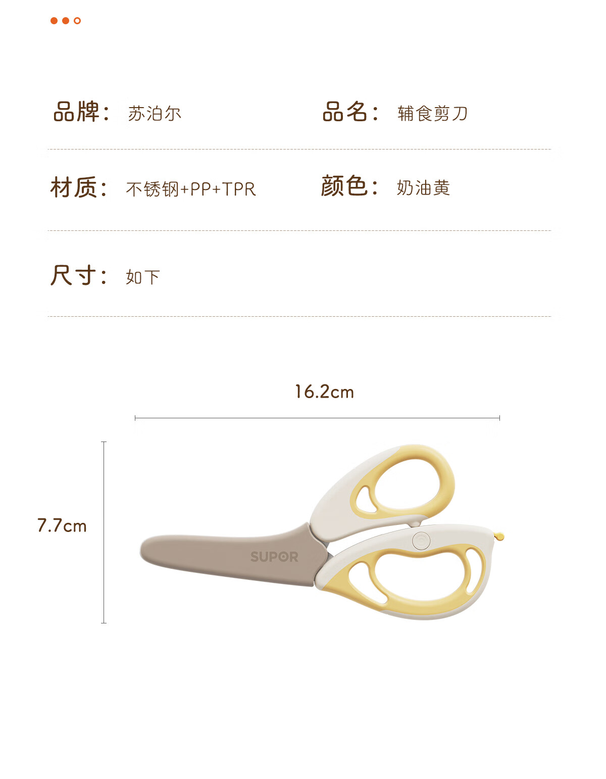 苏泊尔(SUPOR)辅食剪刀宝宝专用便携儿童工具刀具不锈钢辅食剪KGF01AP10