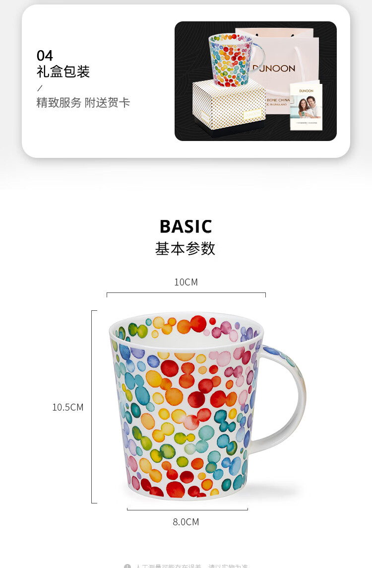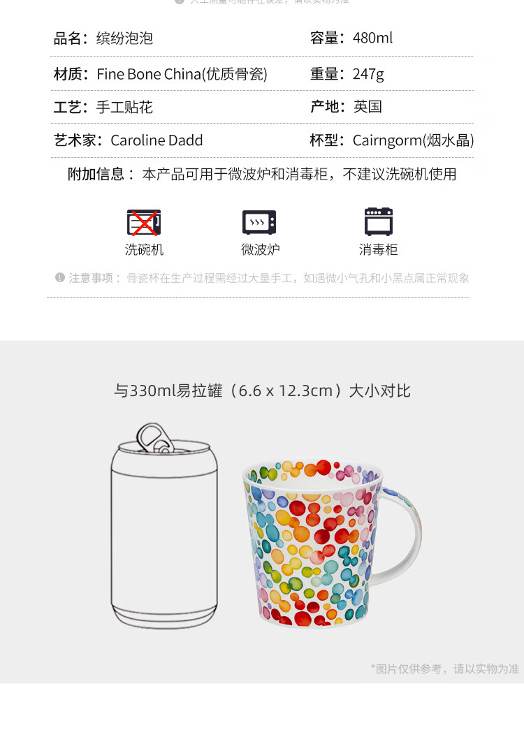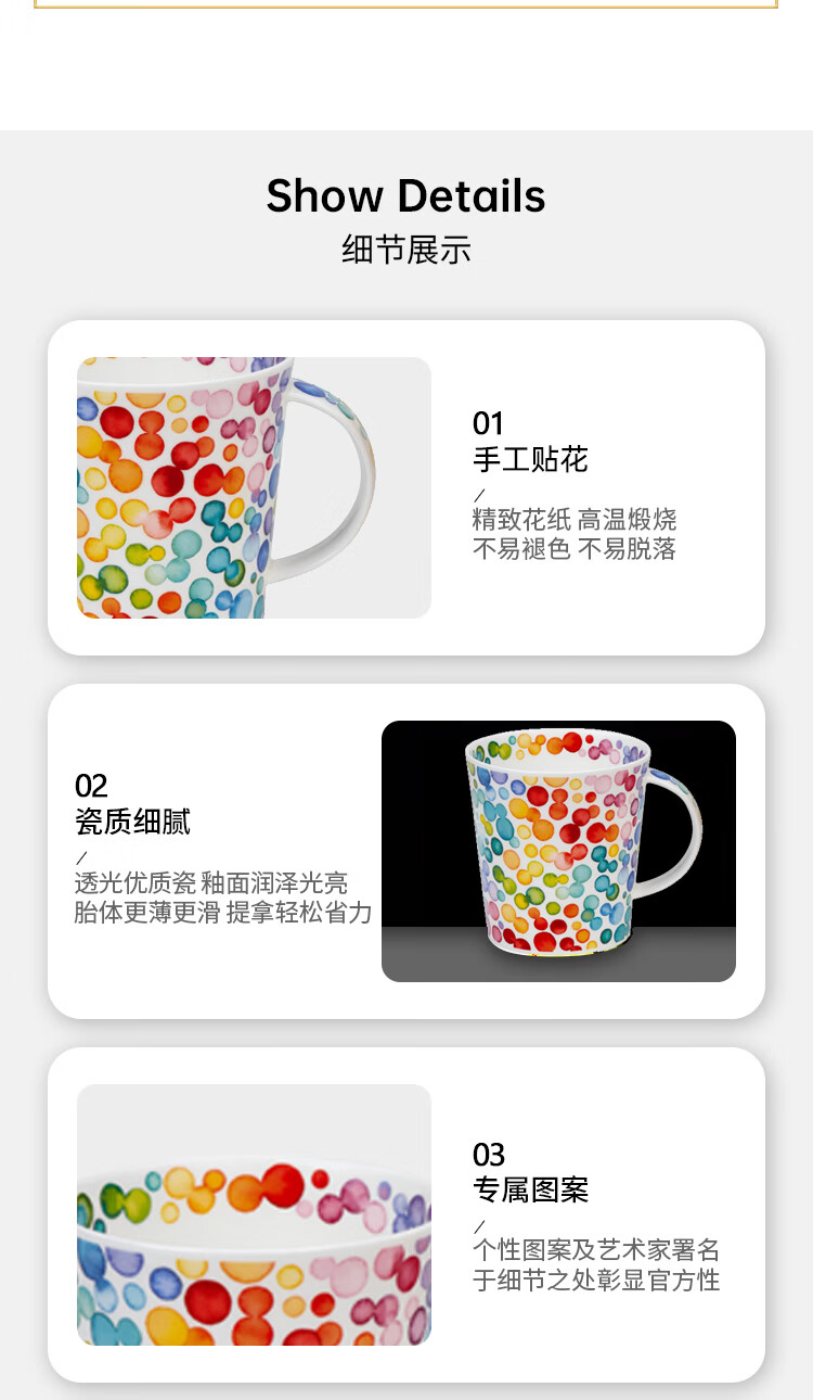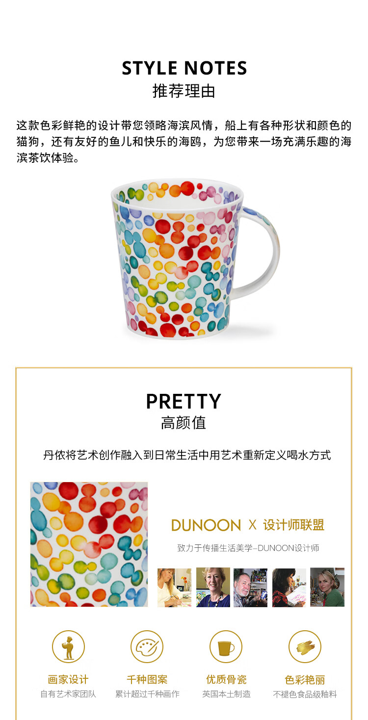 丹侬(DUNOON)英国骨瓷马克杯大容量咖啡杯 色彩缤纷泡泡陶瓷水杯情侣杯礼盒装