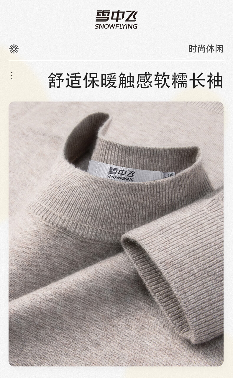 雪中飞绵羊毛毛衣男女2026春季新款圆领百搭羊毛衫商务休闲内搭保暖上衣 灰色 170/88A(M) (90-110斤)