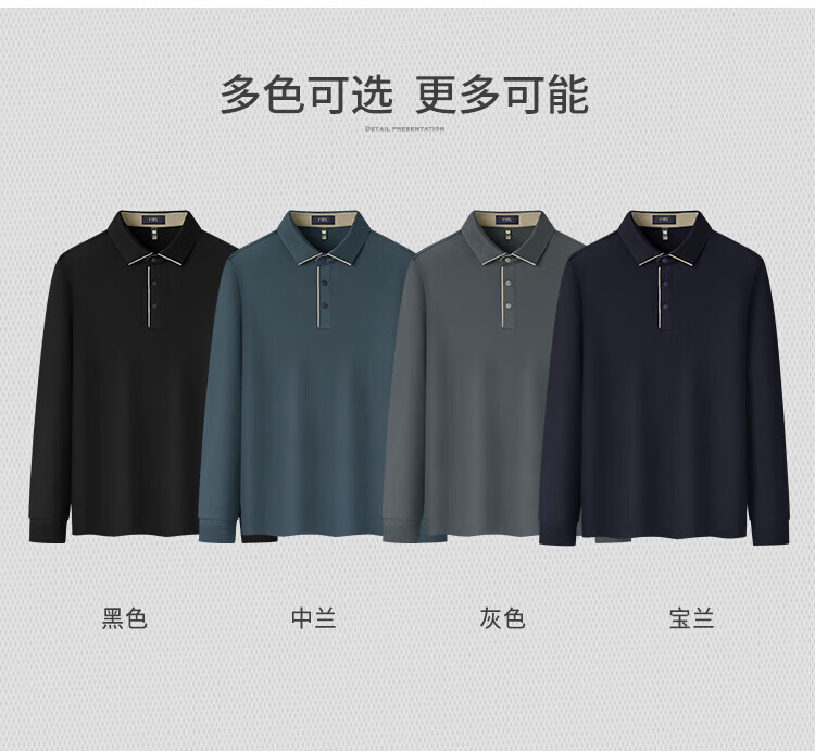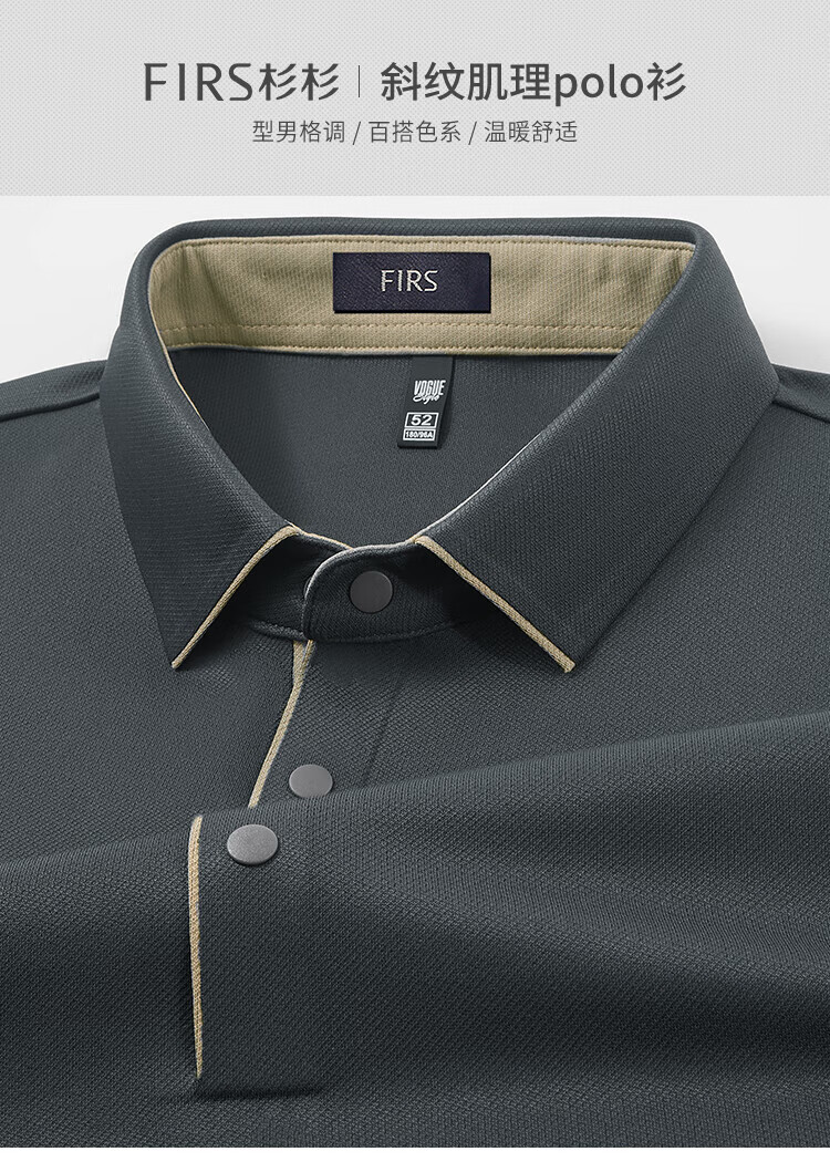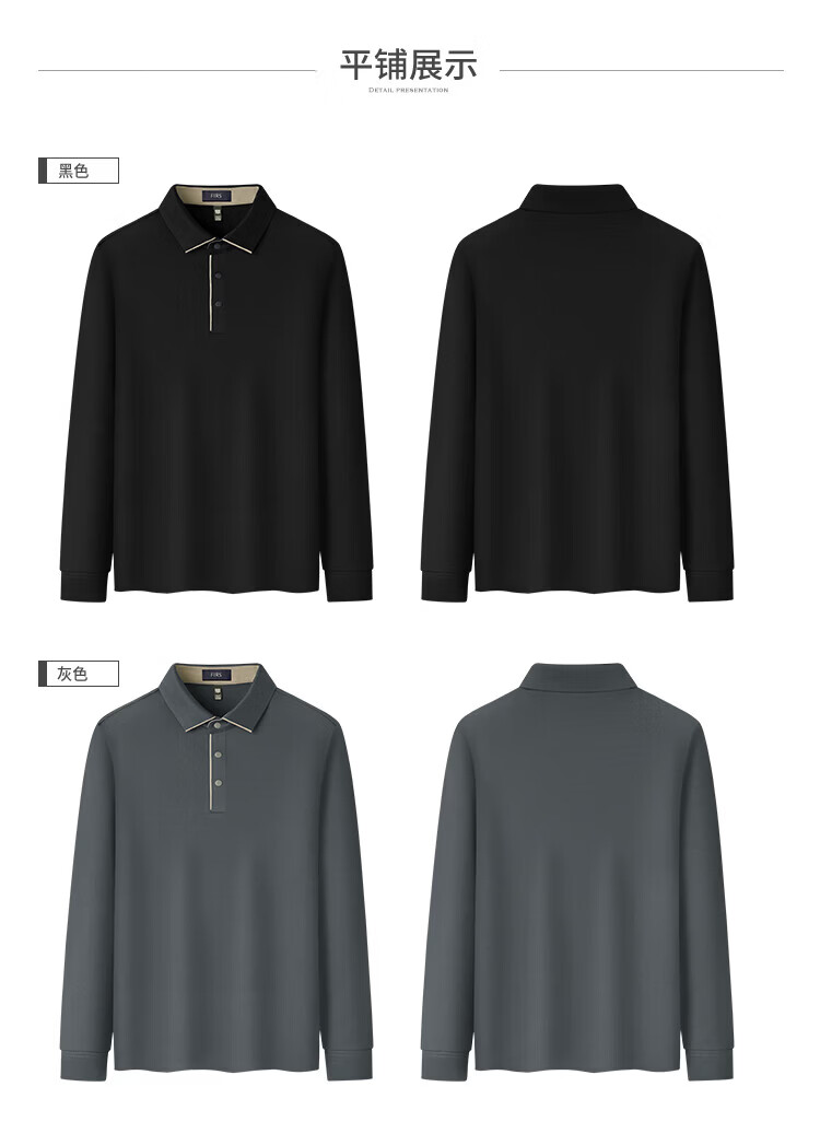 杉杉(FIRS)【免烫混纺】长袖t恤男中青年上衣商务休闲纯色polo打底衫男装 黑色 M 170/88A