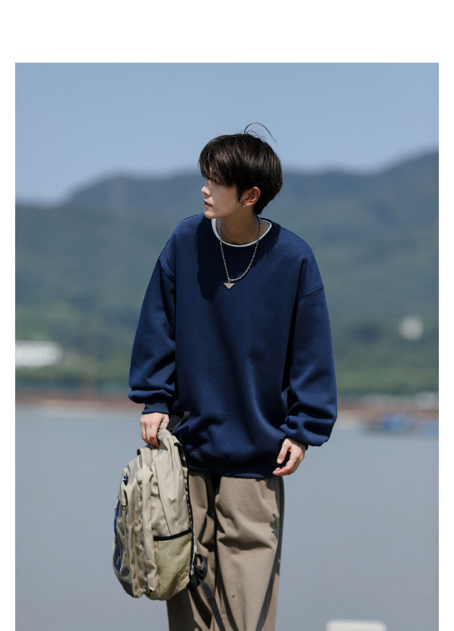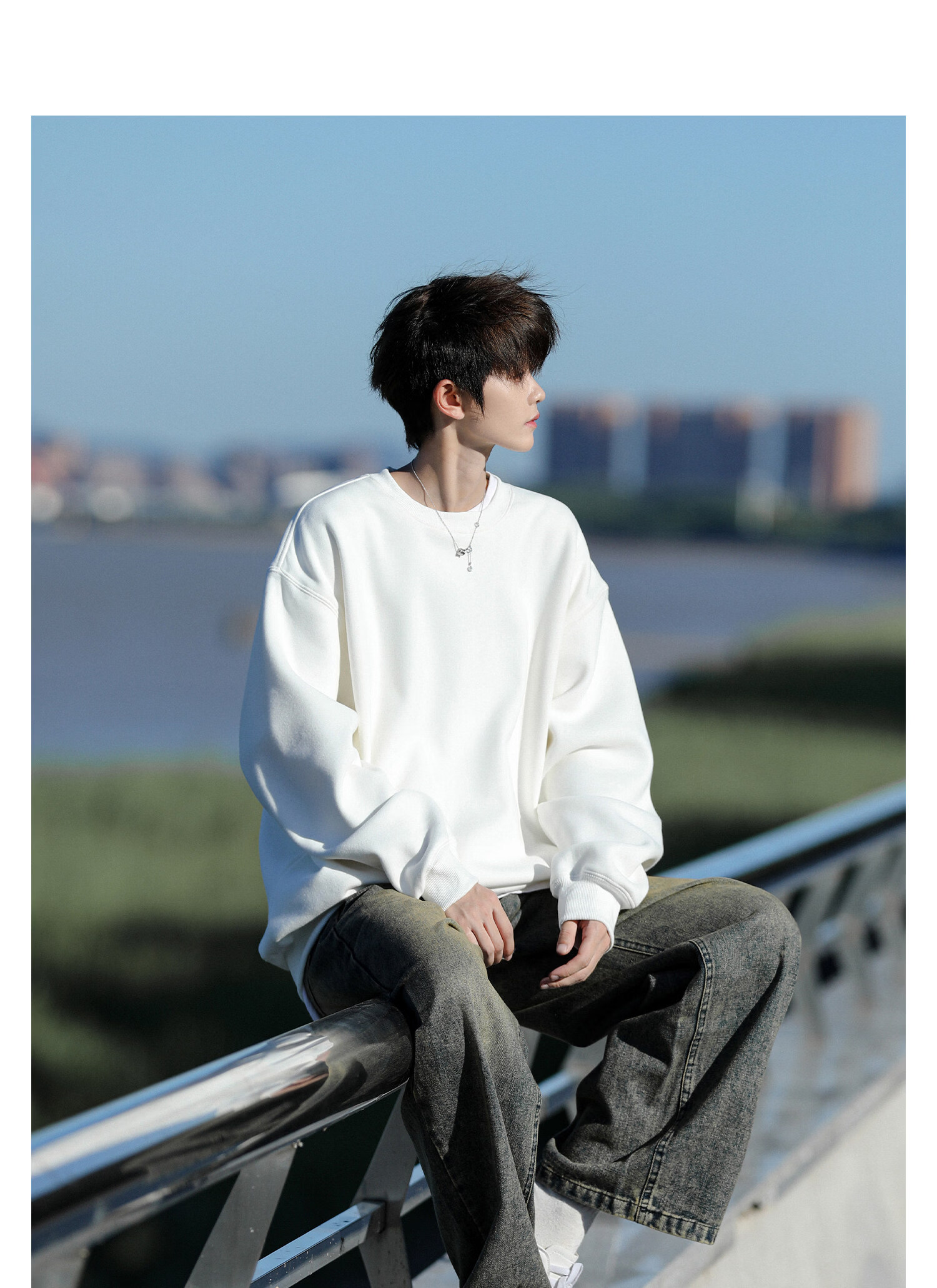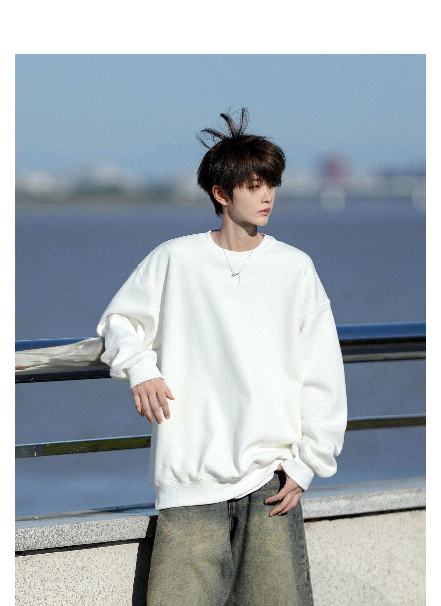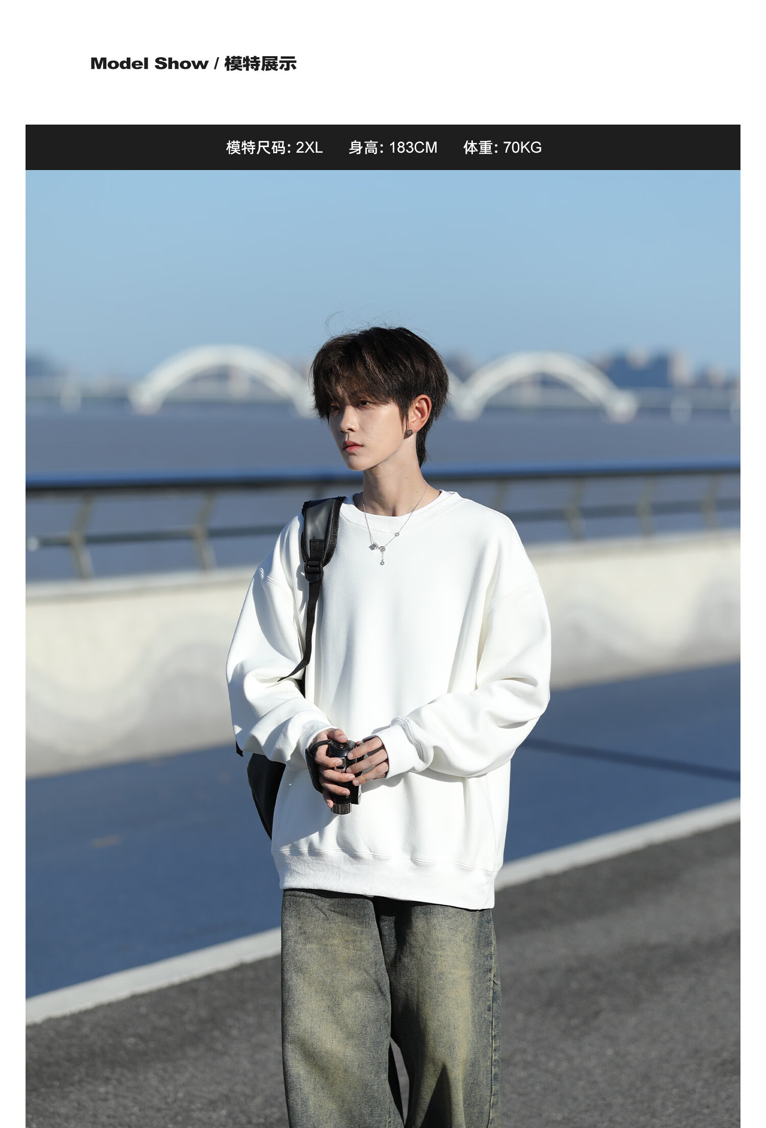 NEW OR MODE美式重磅圆领卫衣男春秋新款复古潮流宽松大码青少年休闲上衣外套 白色【高品质】 M 【建议90-110斤】
