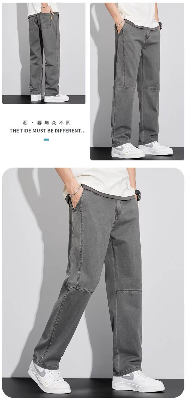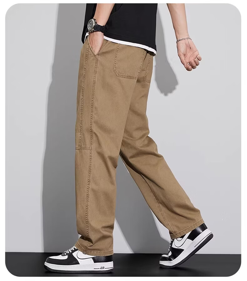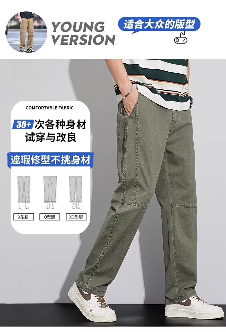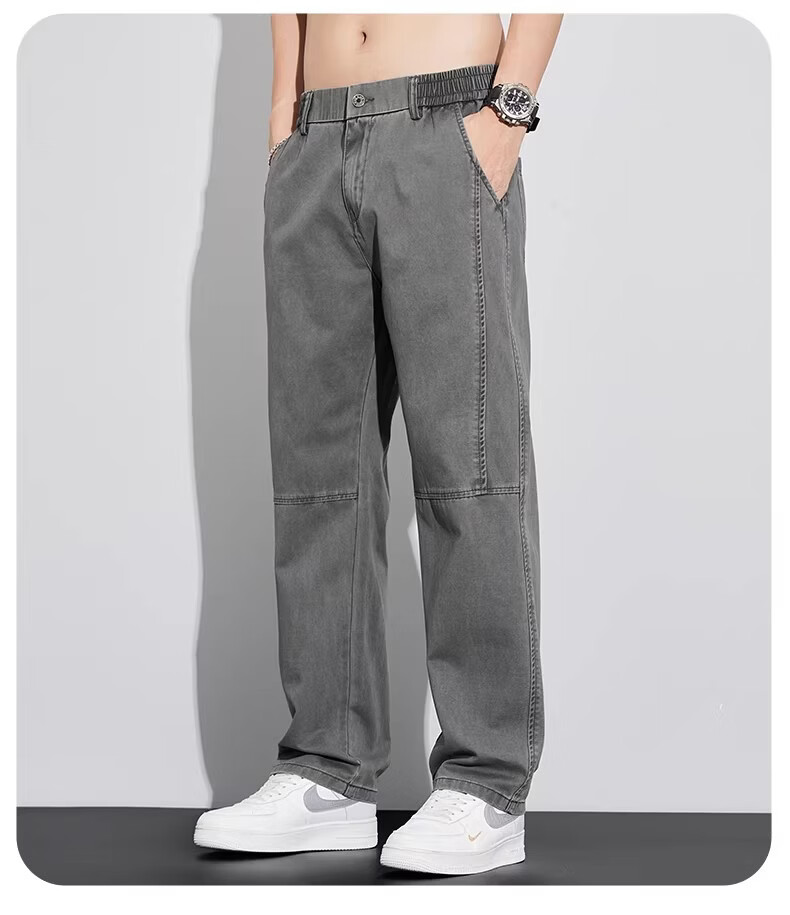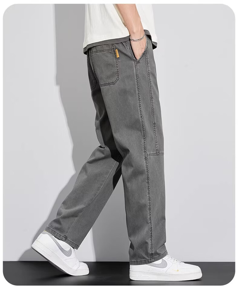 真维斯工装裤子男宽松直筒阔腿裤2026新款美式抽绳男士休闲长裤夏季薄款 灰色 M