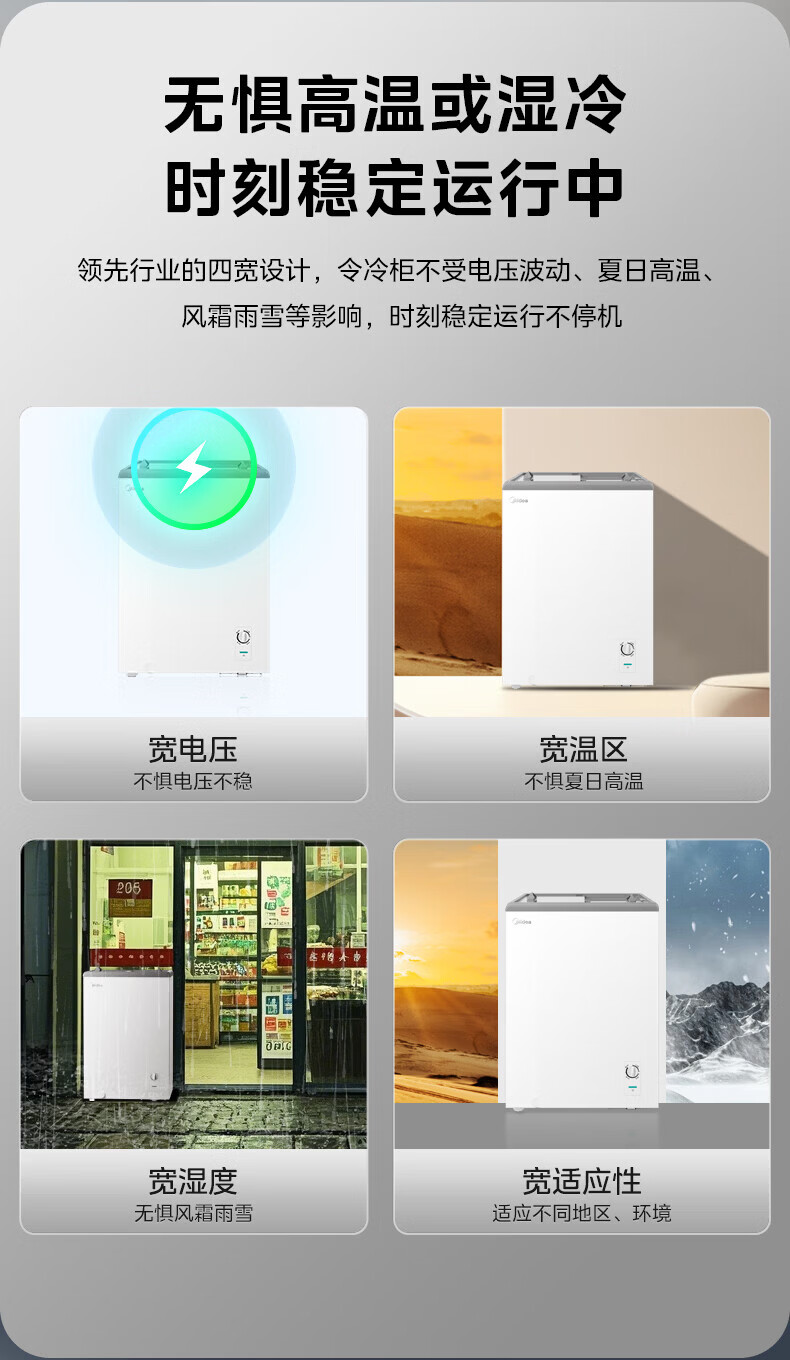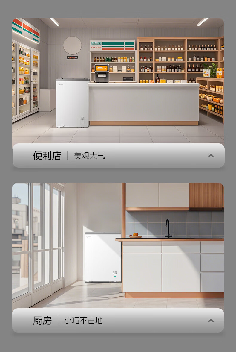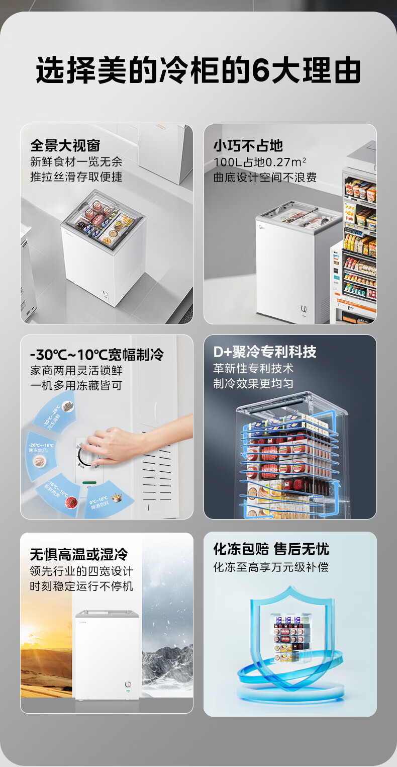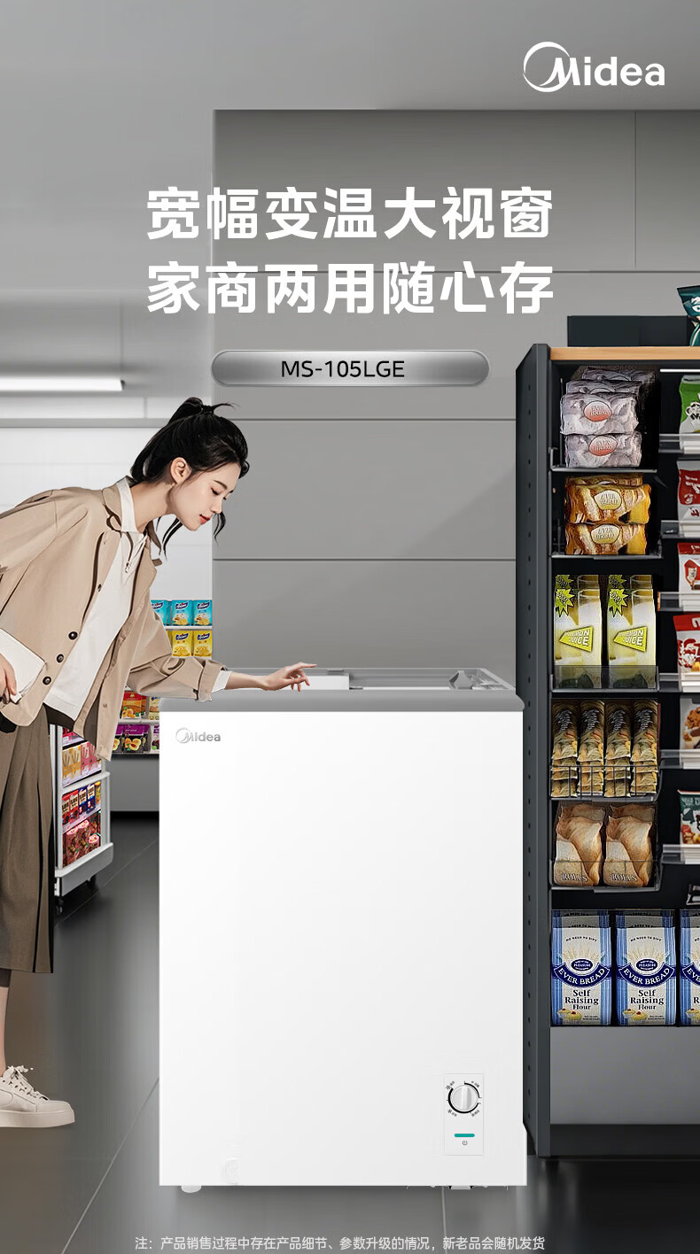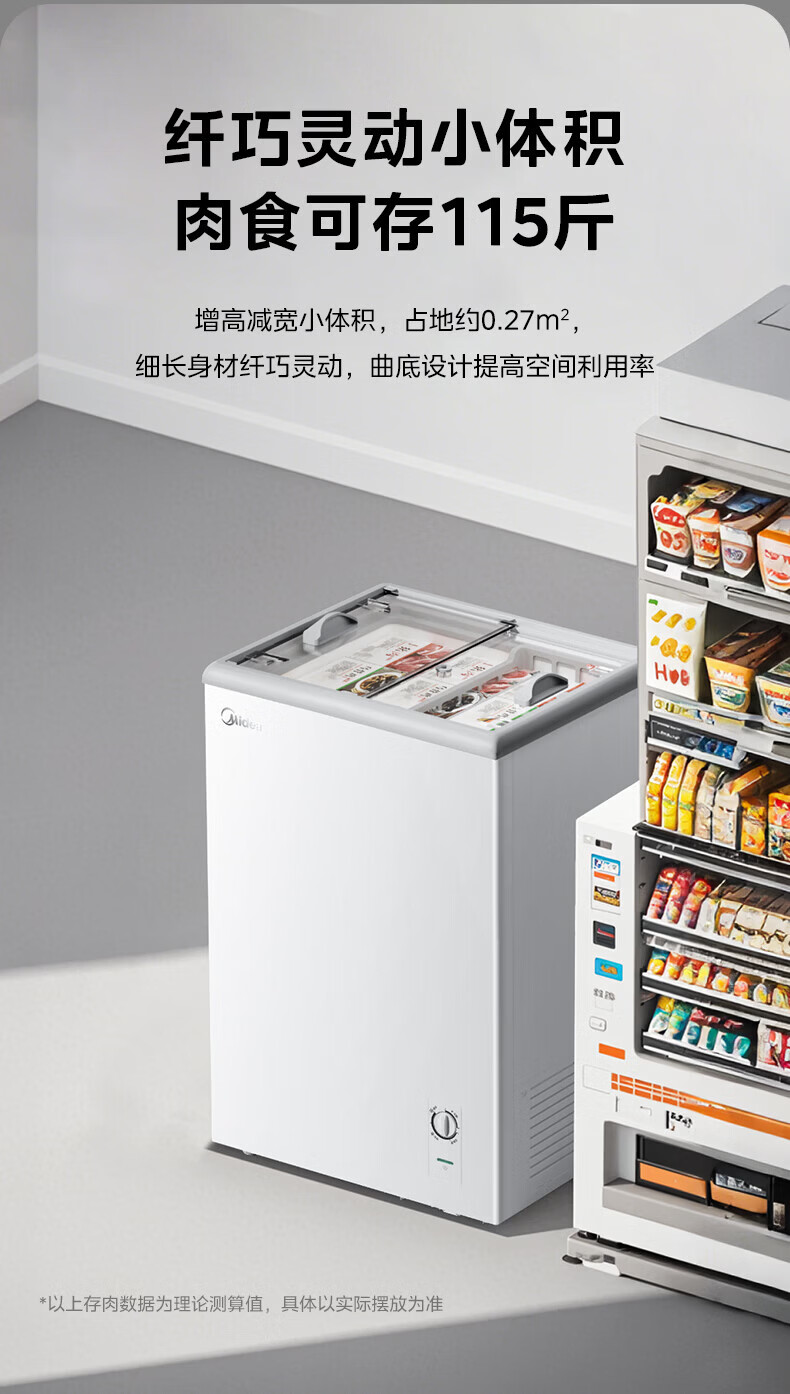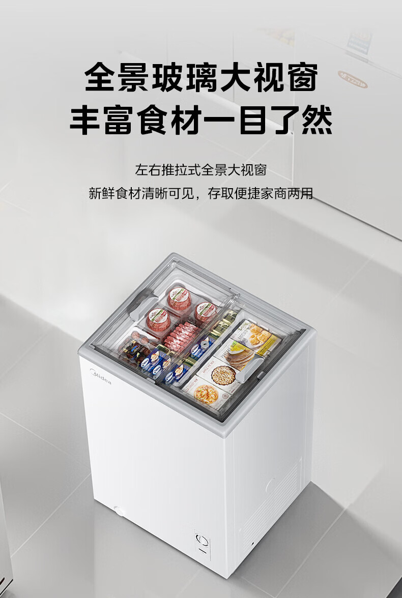 美的(Midea)商用展示柜家用小型全玻璃视窗超市便利店卧式雪糕饮料啤酒冷藏冷冻两用一级能效冰箱冷柜 带门锁|全景玻璃|断电保护 105L