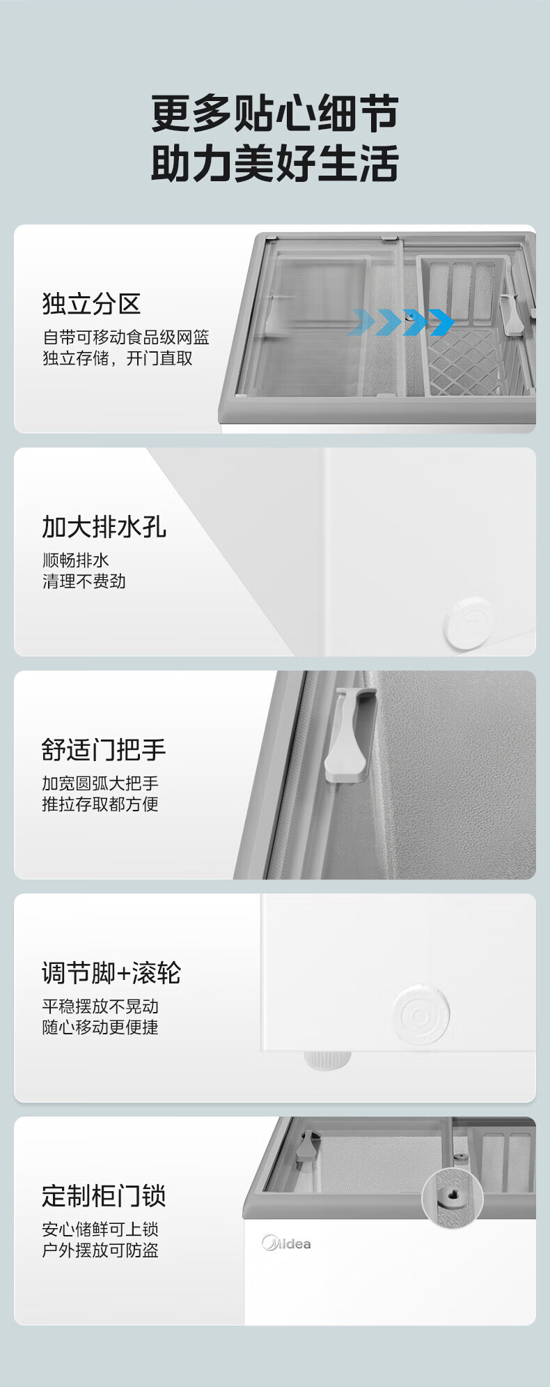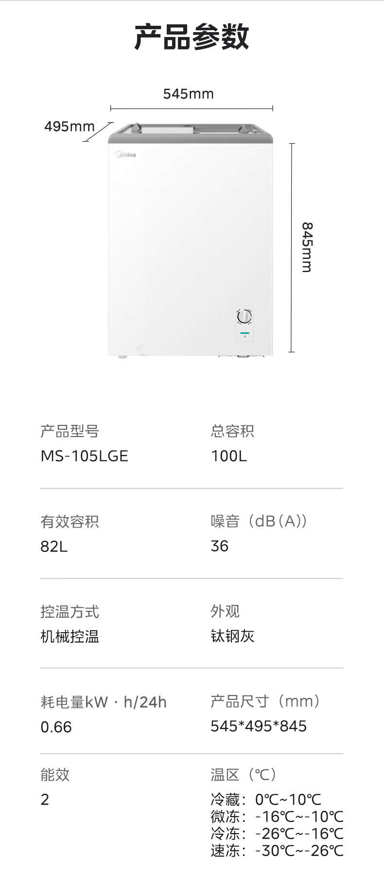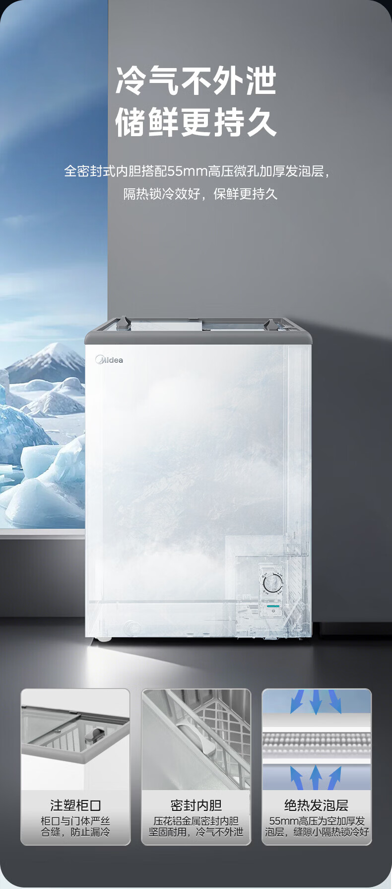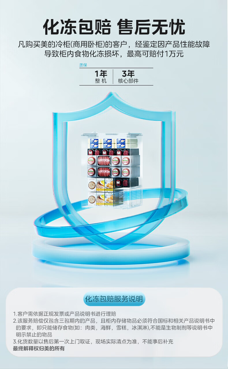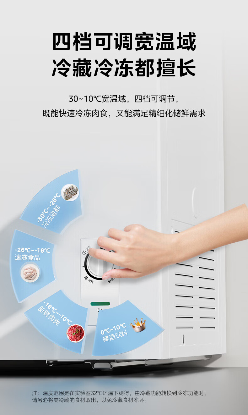 美的(Midea)商用展示柜家用小型全玻璃视窗超市便利店卧式雪糕饮料啤酒冷藏冷冻两用一级能效冰箱冷柜 带门锁|全景玻璃|断电保护 105L