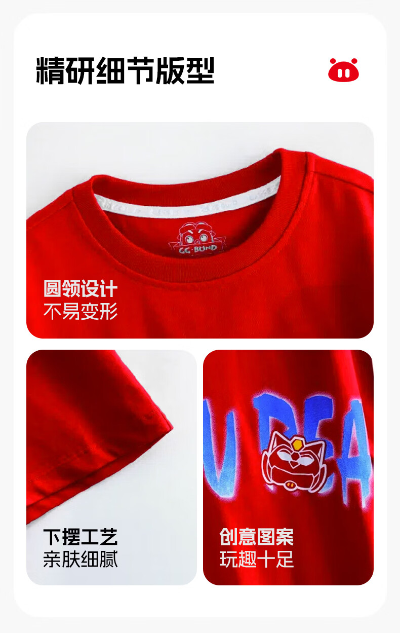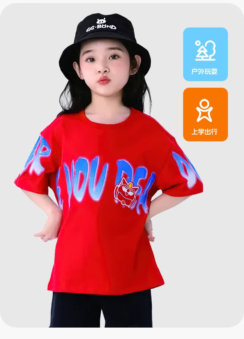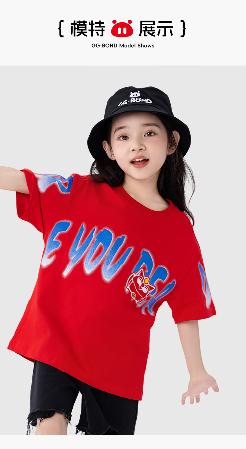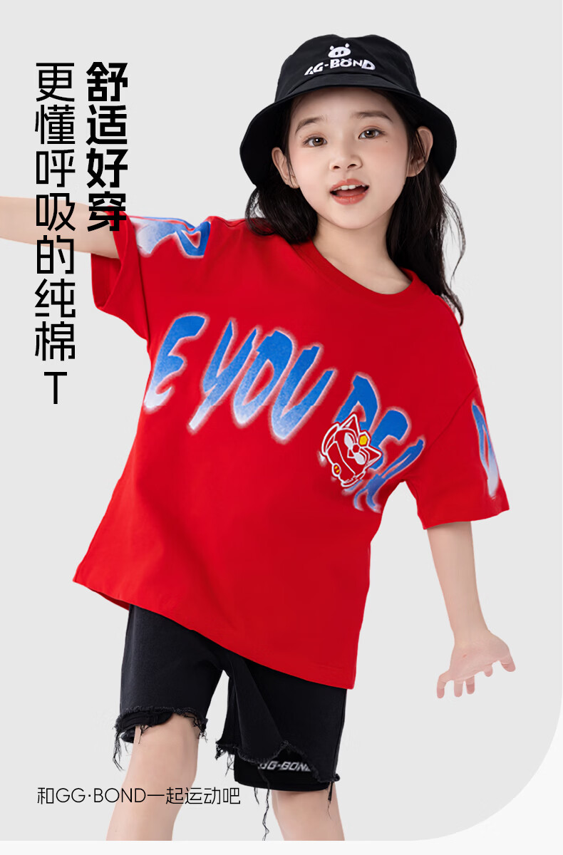 猪猪侠(GG·BOND)童装26夏季新款儿童短袖t恤男女童纯棉中大童半袖上衣炸街帅气潮t 中国红 140