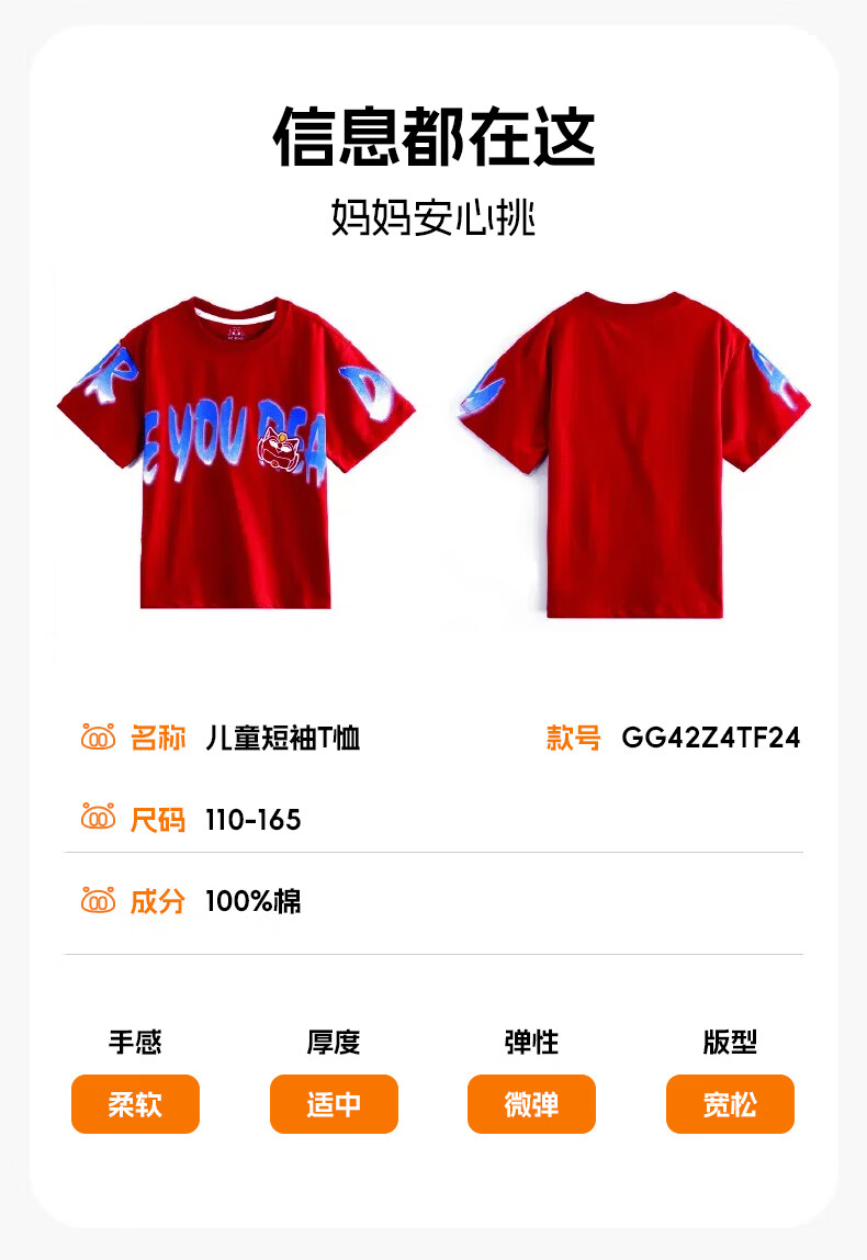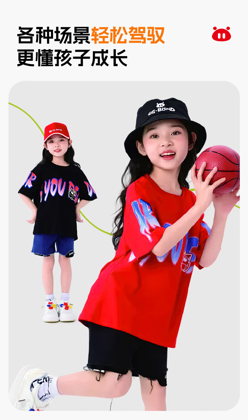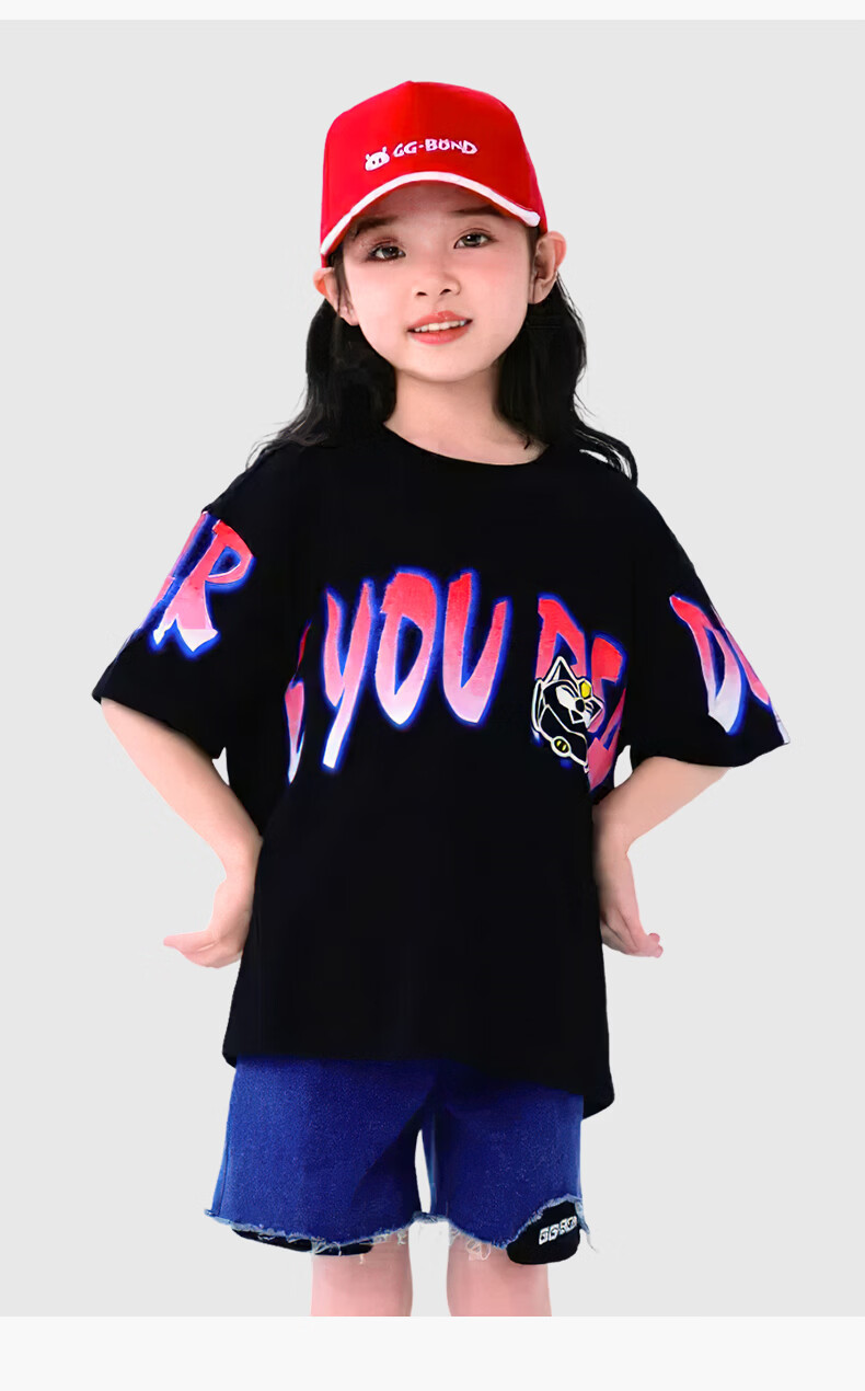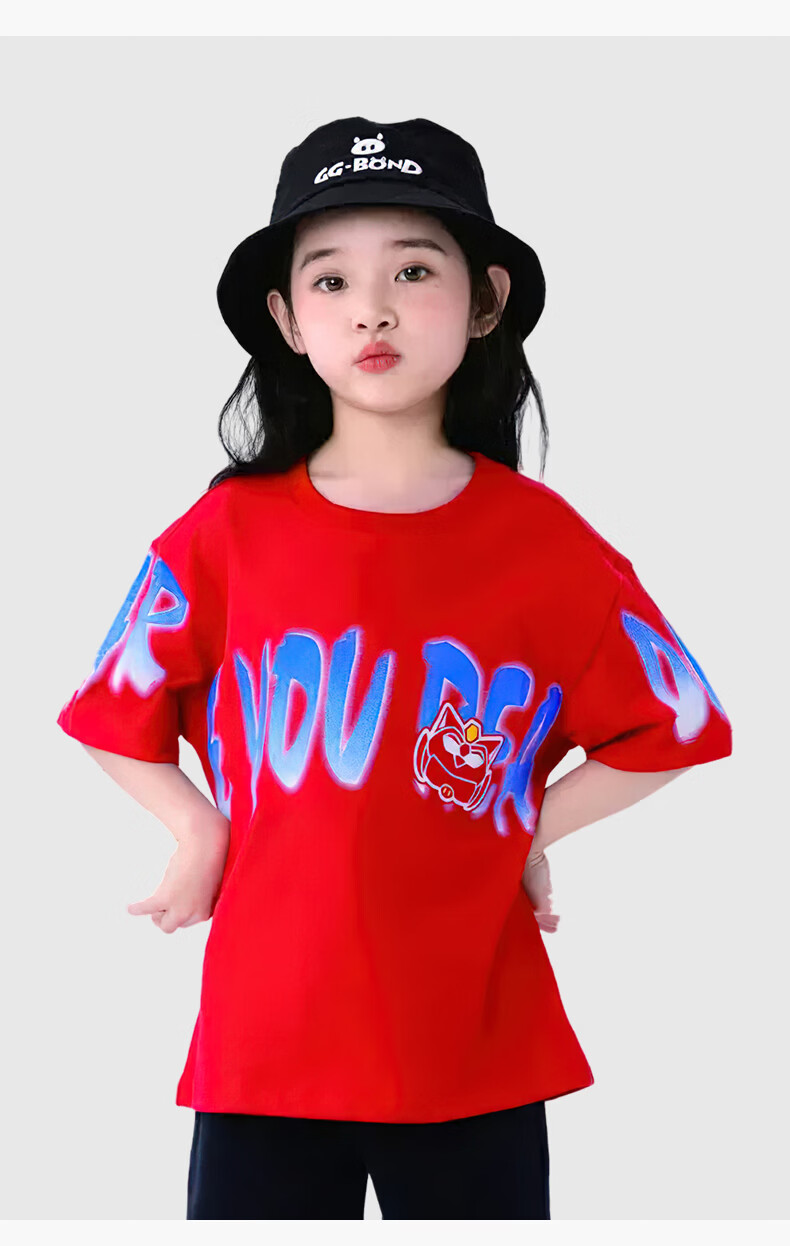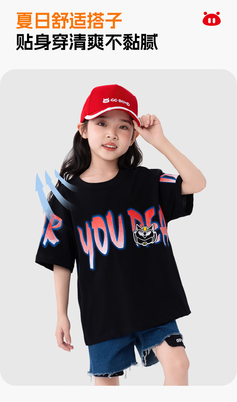 猪猪侠(GG·BOND)童装26夏季新款儿童短袖t恤男女童纯棉中大童半袖上衣炸街帅气潮t 中国红 140