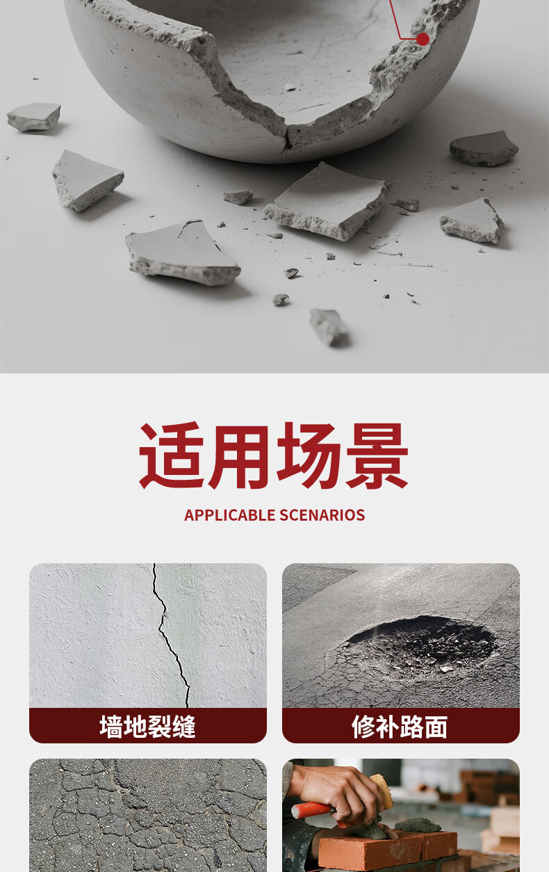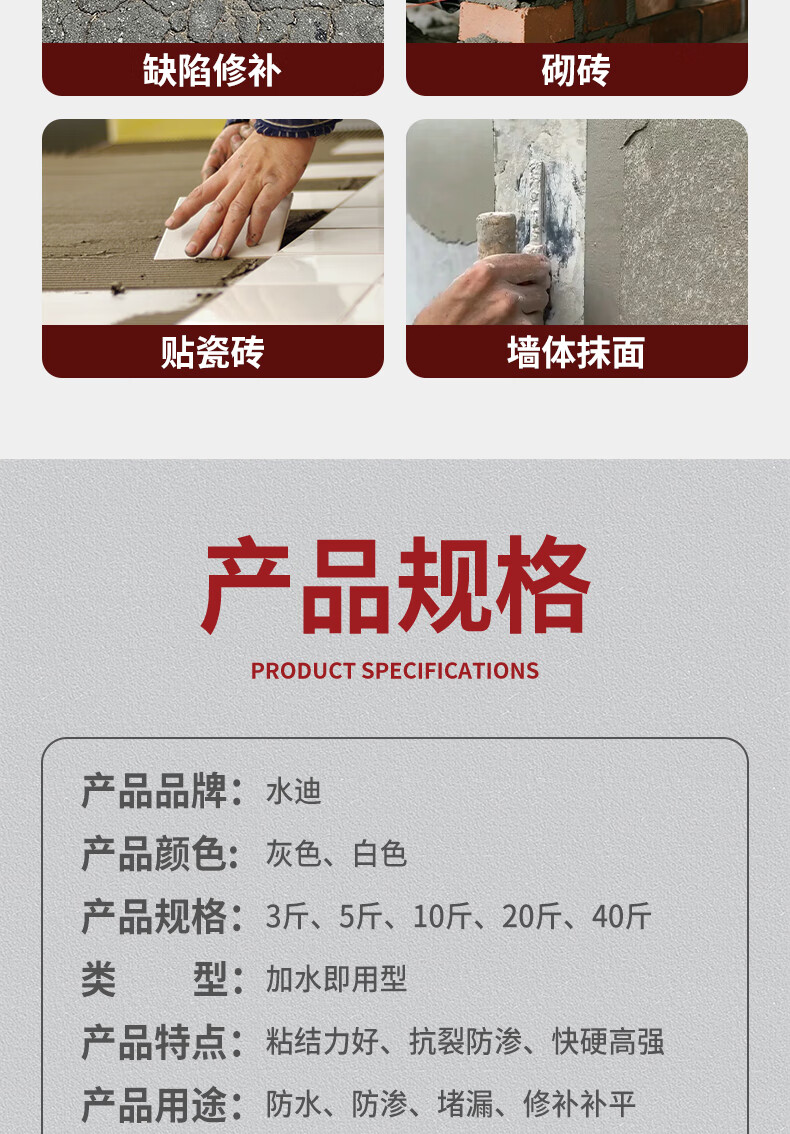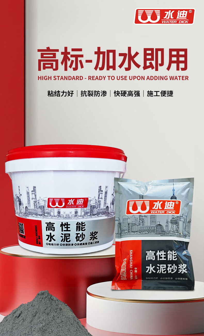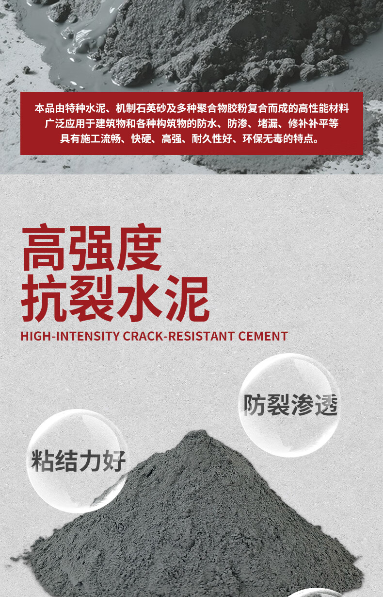 水迪(WATER DICK)水泥地面修补防水抗裂速干特种水泥高标号白水泥砂浆胶快干堵漏王 【高标抗裂】 3斤 灰水泥+送工具