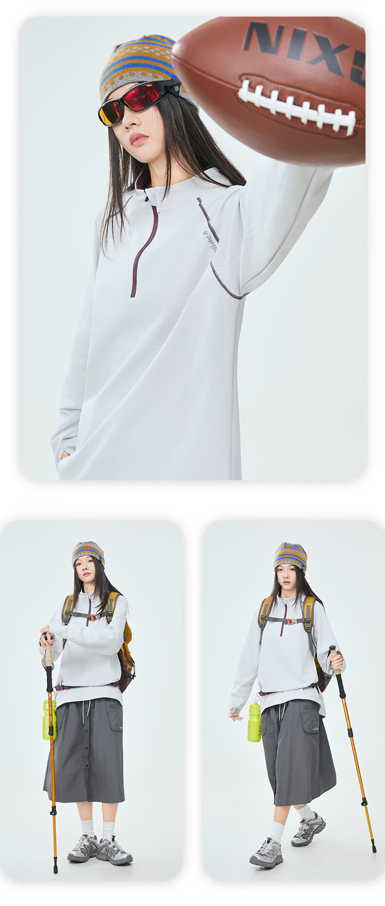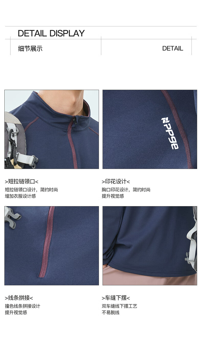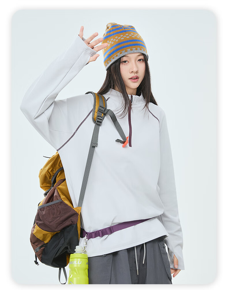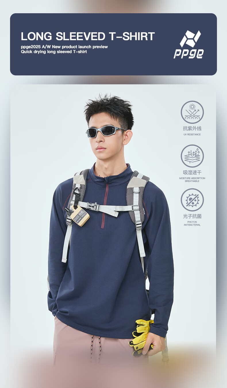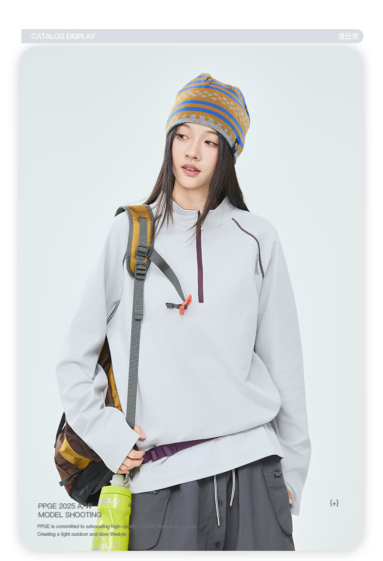 PPGE速干衣春秋季抗菌透气户外拼色半拉链运动上衣男女同款长袖T恤 浅云灰 L