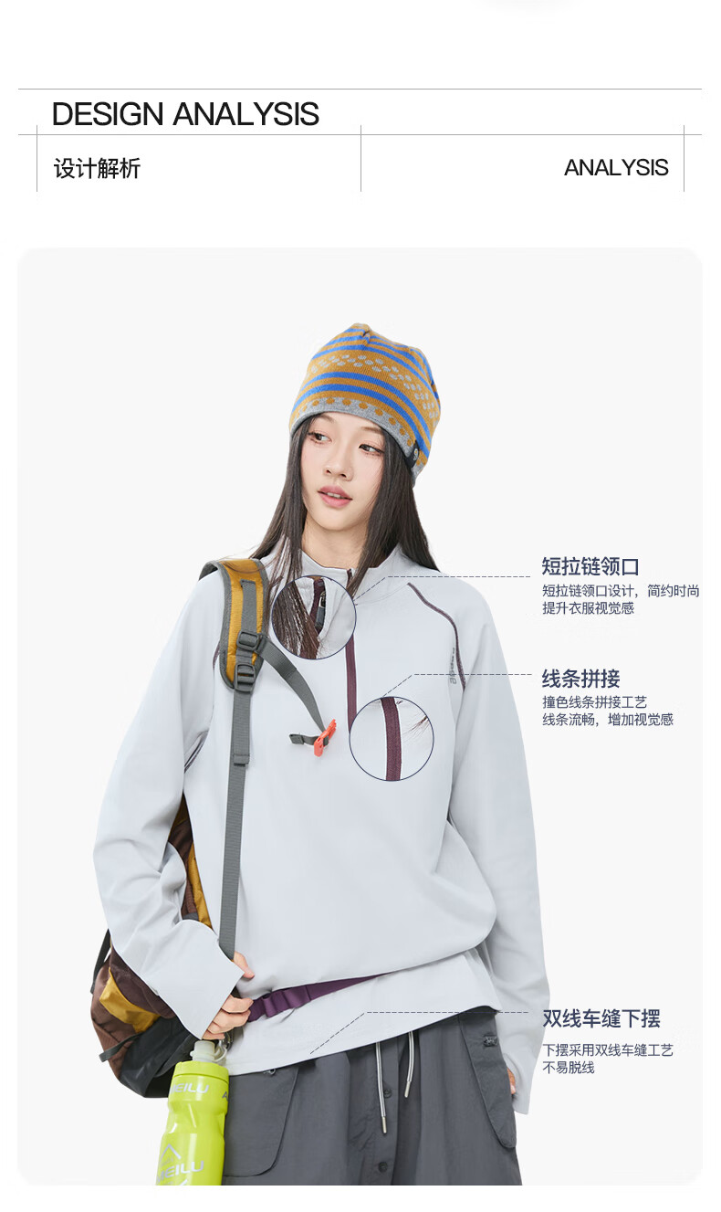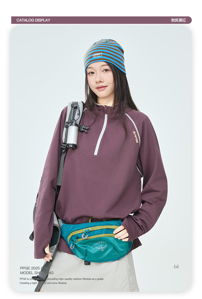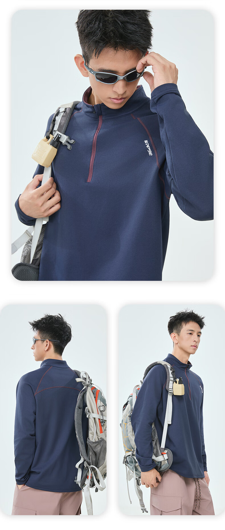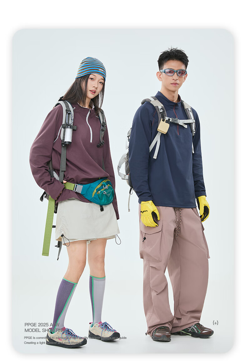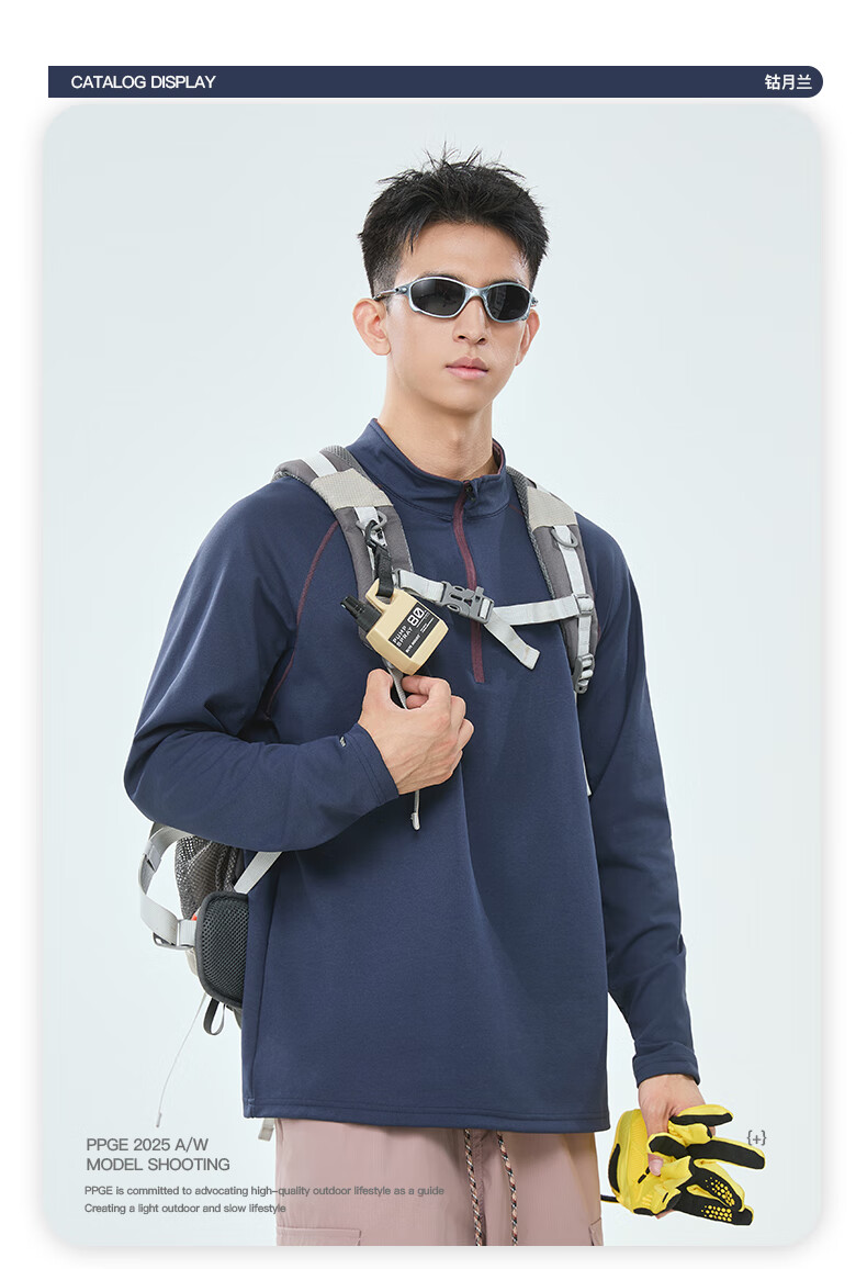 PPGE速干衣春秋季抗菌透气户外拼色半拉链运动上衣男女同款长袖T恤 浅云灰 L