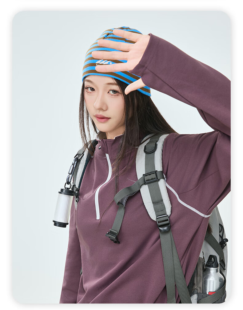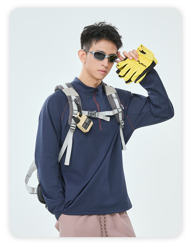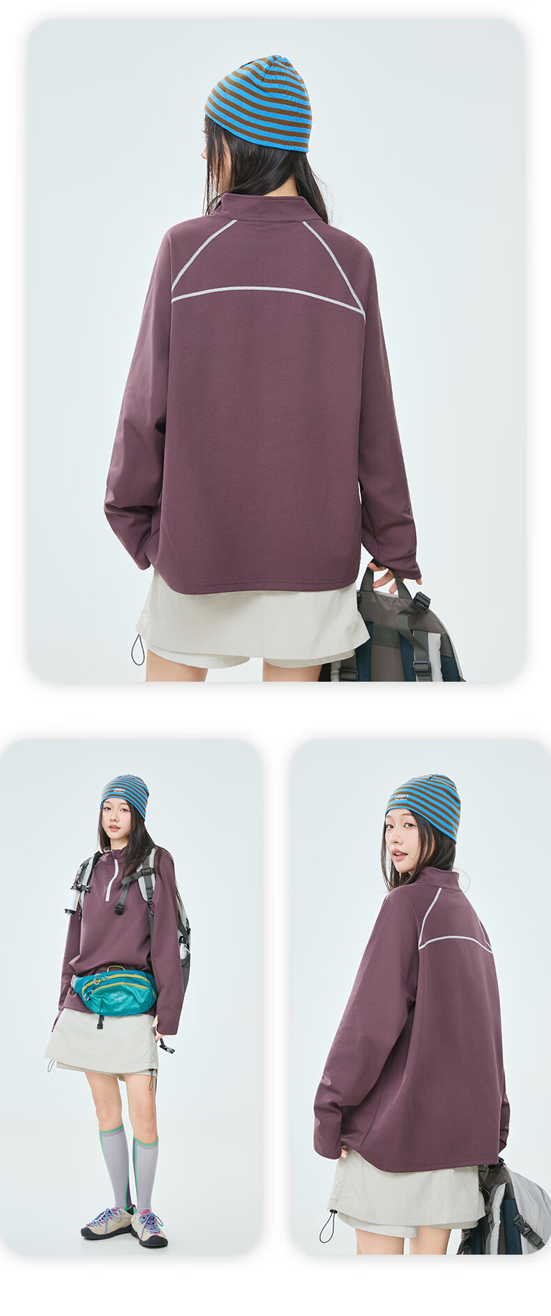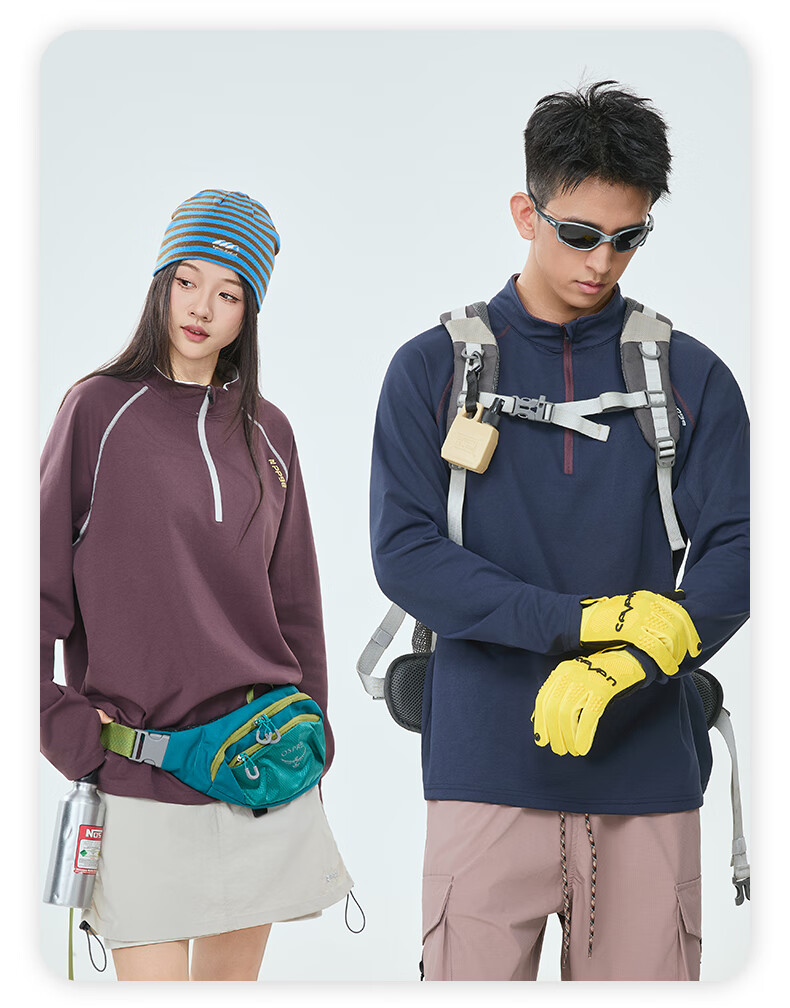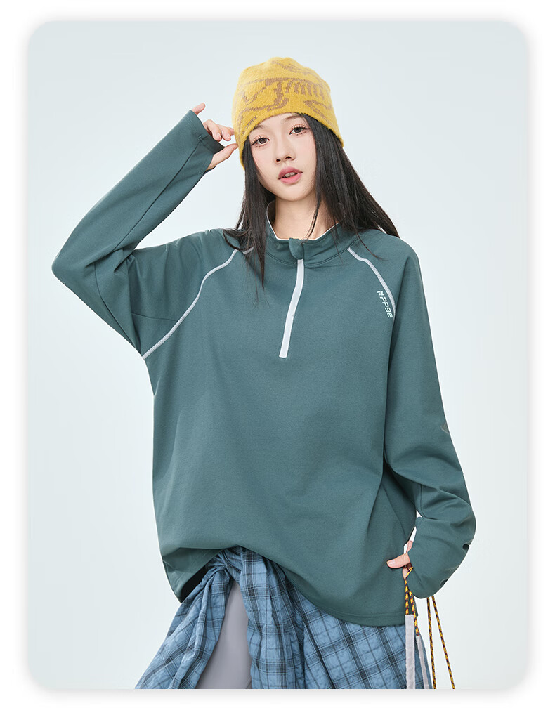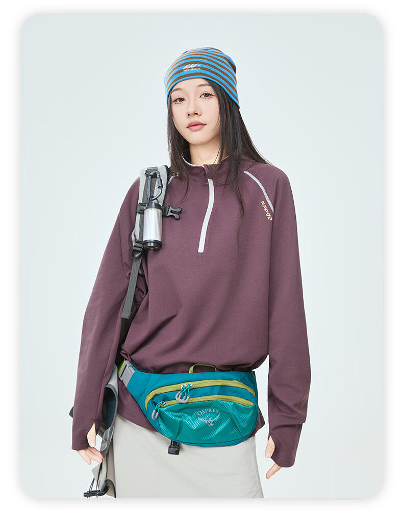 PPGE速干衣春秋季抗菌透气户外拼色半拉链运动上衣男女同款长袖T恤 浅云灰 L
