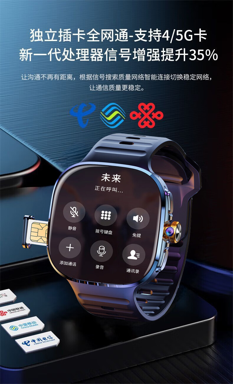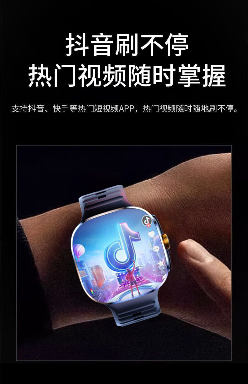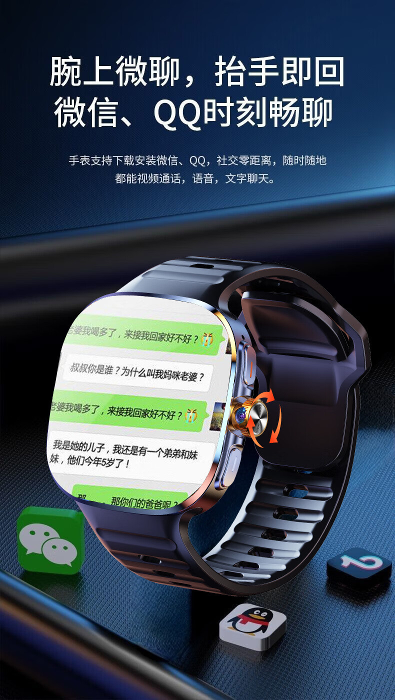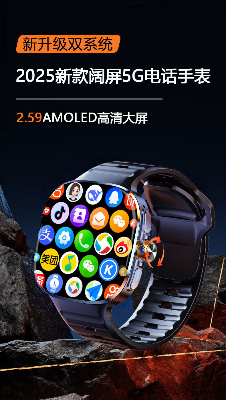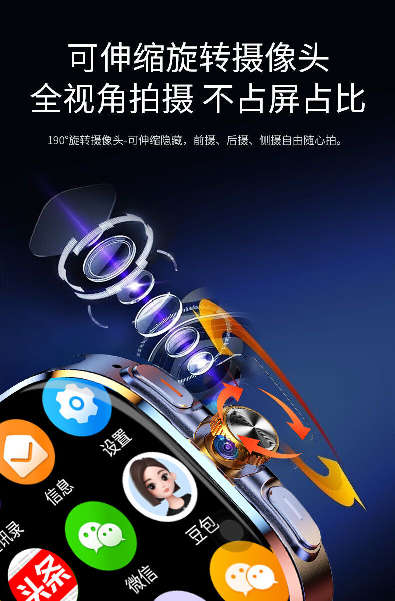 欧康胜智能手表5G通可插卡多功能任意下载旋转摄像电话手表 炫酷黑【豆包AI+旋转摄像+自由下载】