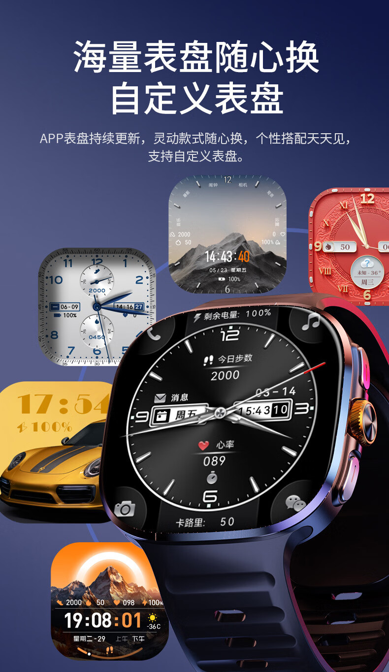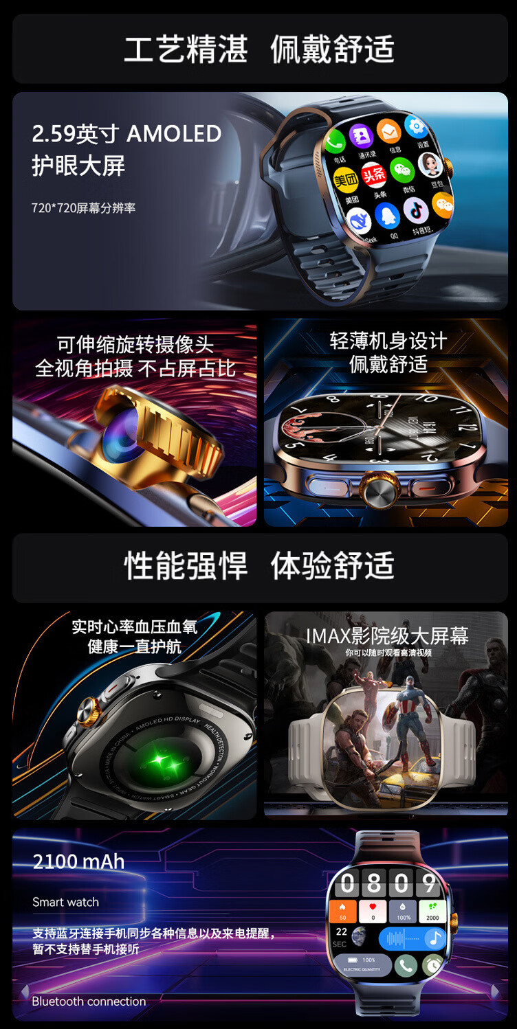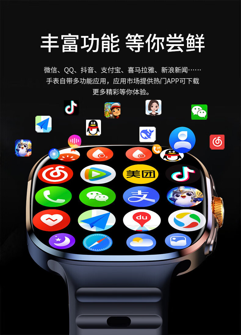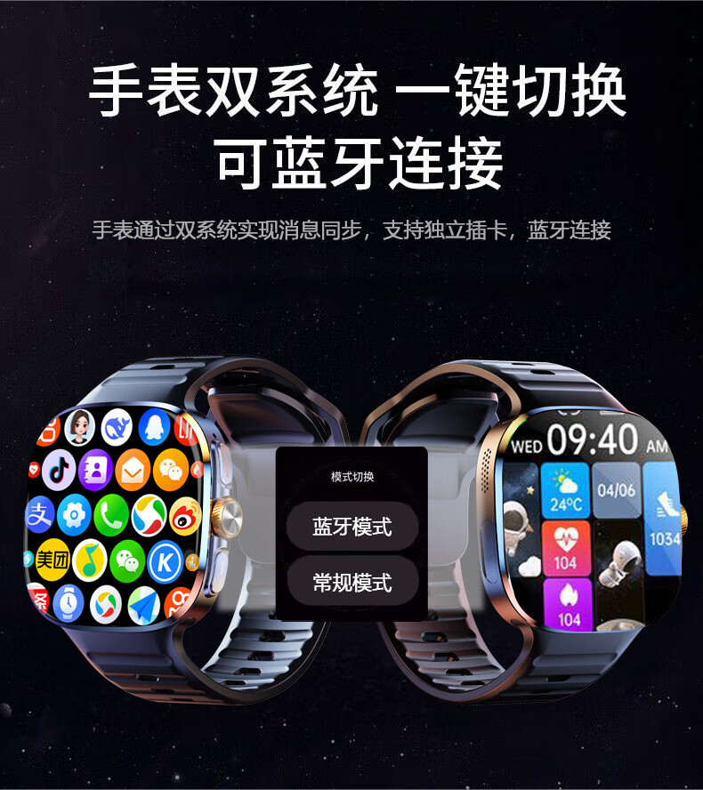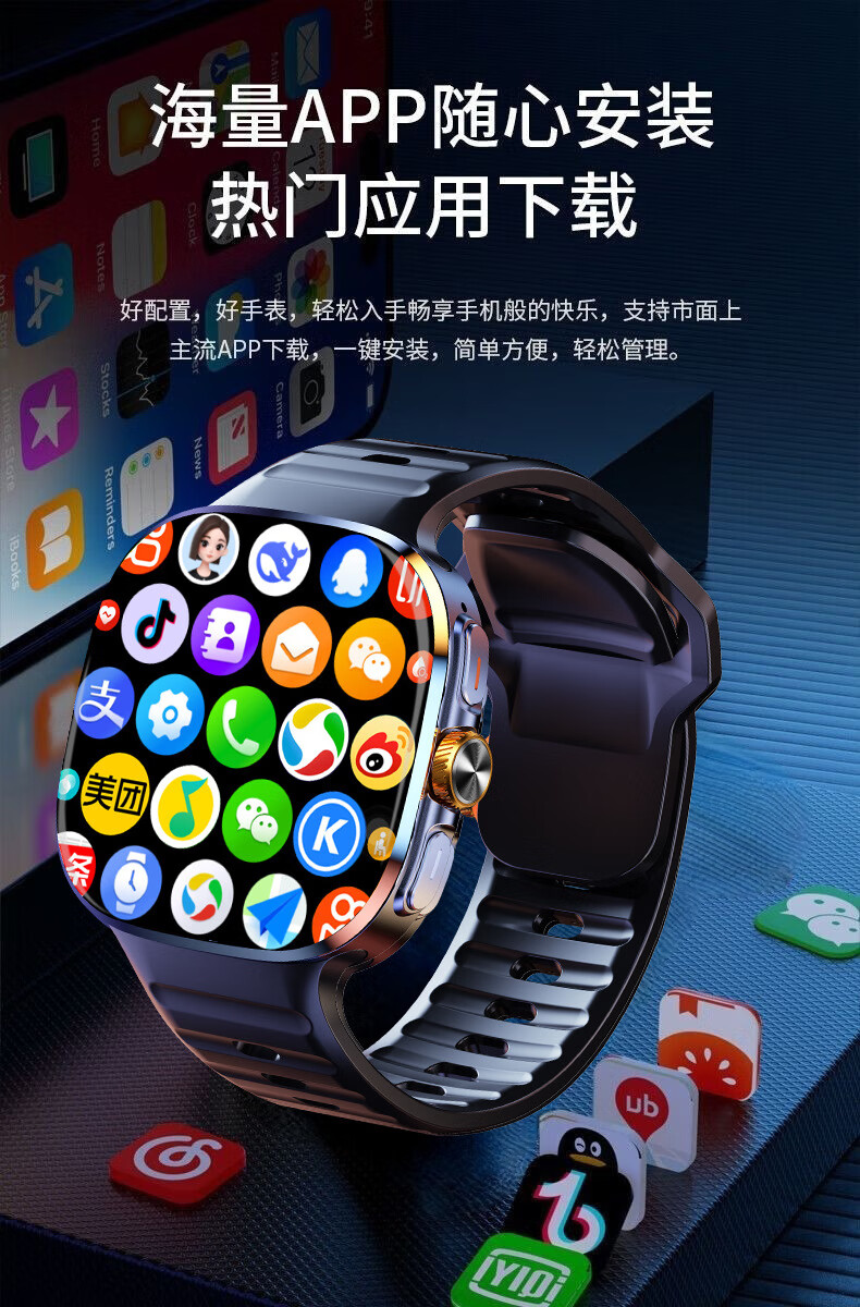 欧康胜智能手表5G通可插卡多功能任意下载旋转摄像电话手表 炫酷黑【豆包AI+旋转摄像+自由下载】
