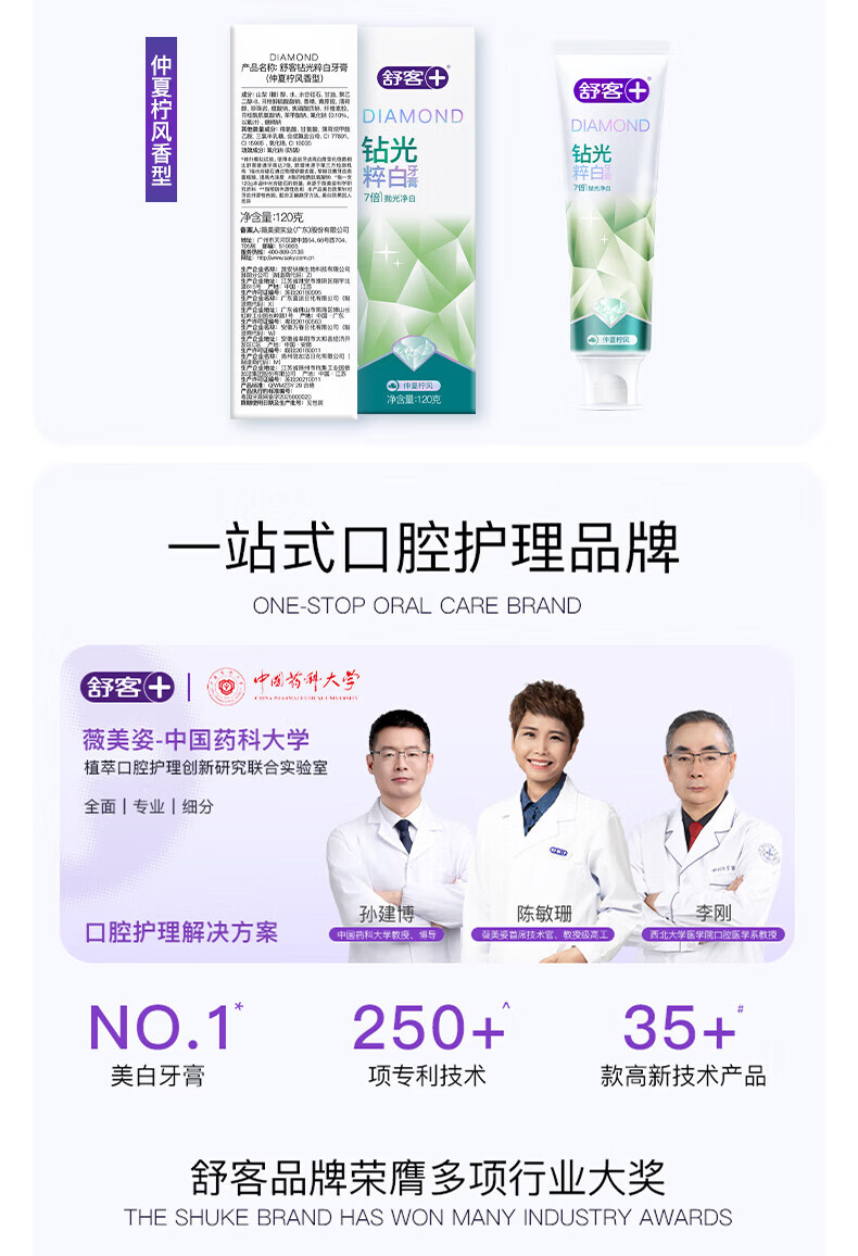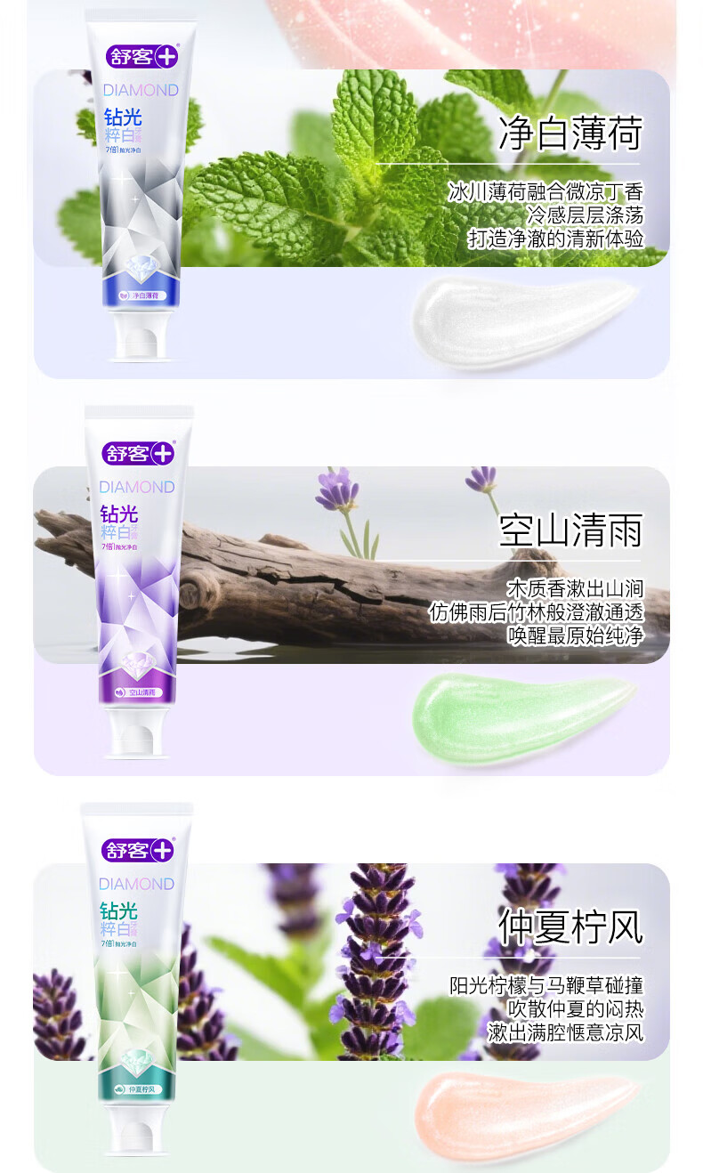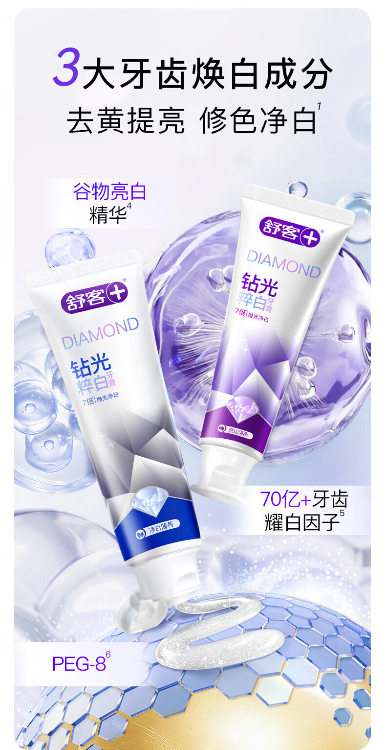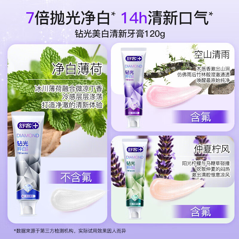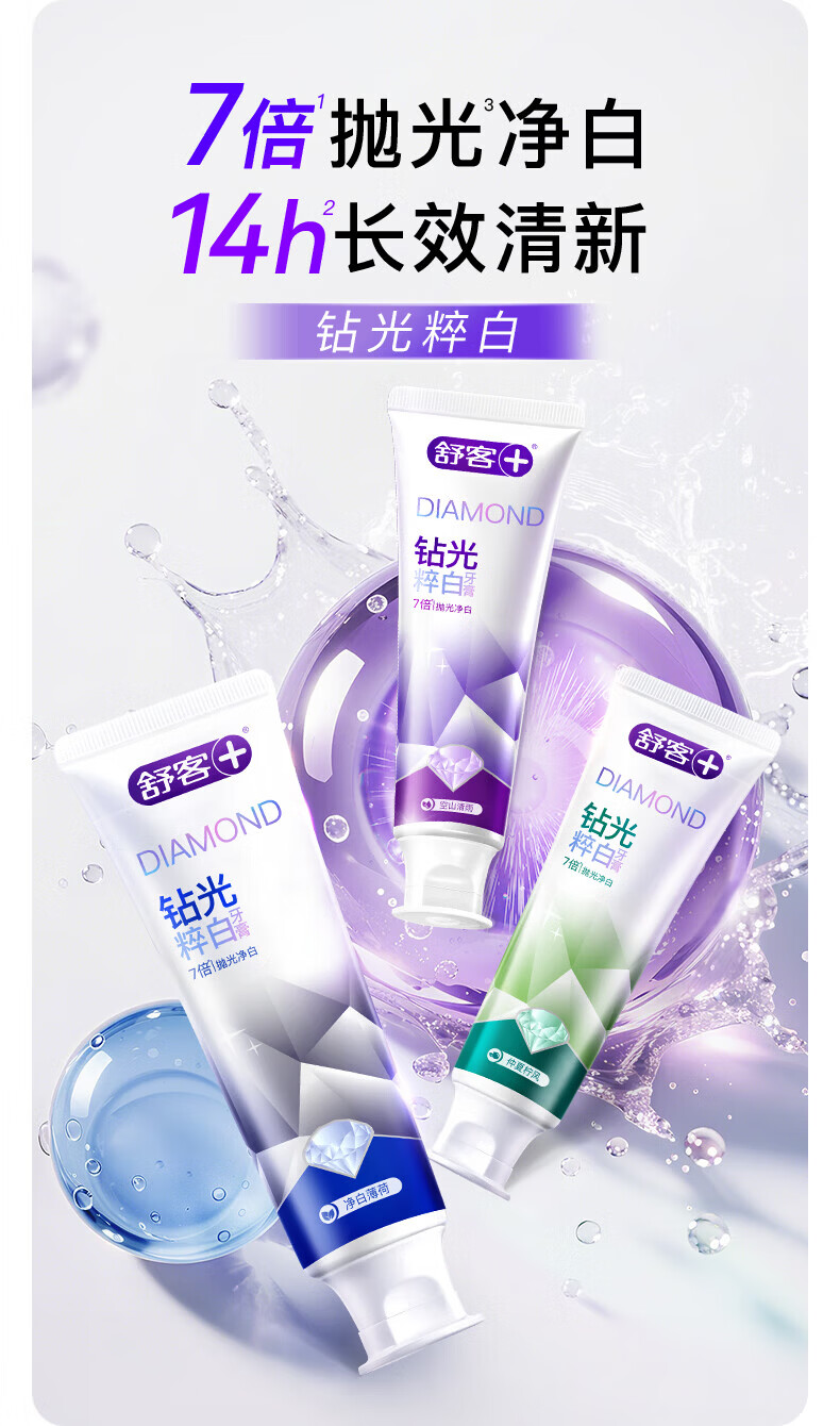 舒客肖战同款钻光粹白牙膏7倍抛光净白长效清新去牙渍牙渍美白牙齿 【7倍抛光净白】钻光清雨120g+2支樱巧牙刷
