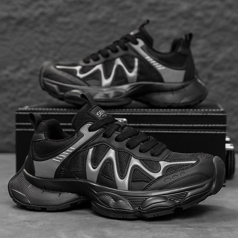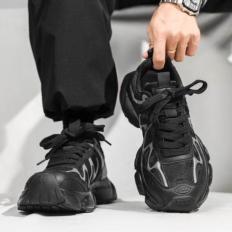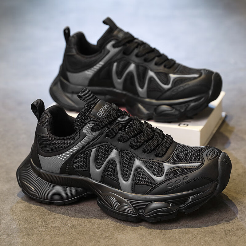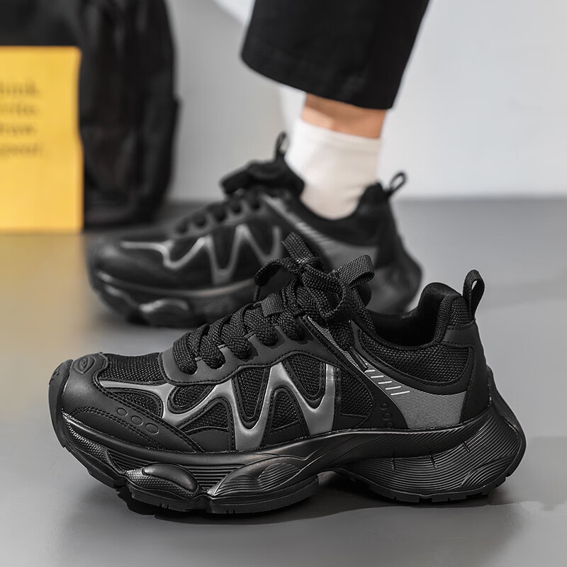 森馬男鞋老爹鞋春季2026年新款青少年学生厚底增高黑武士休闲运动潮鞋 黑色【基础款】 39 标准码数/现货秒发