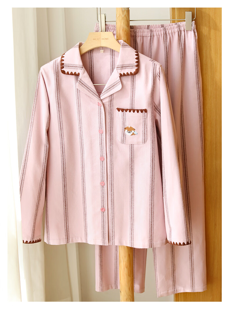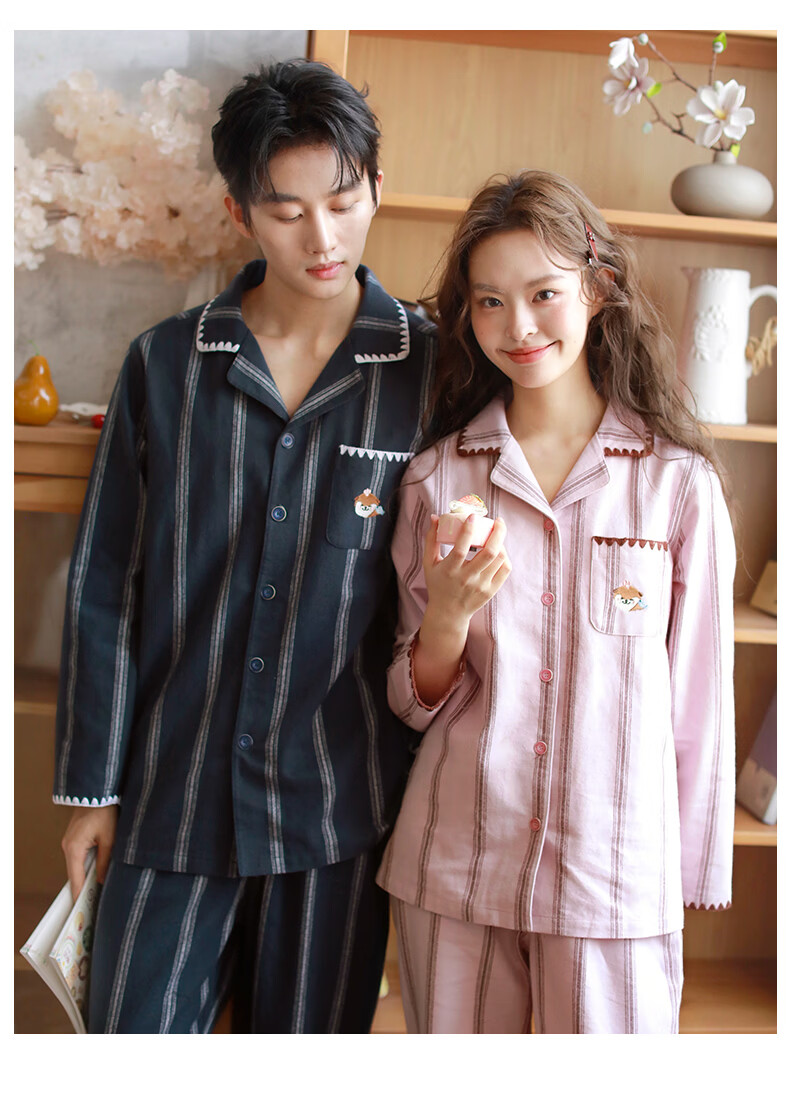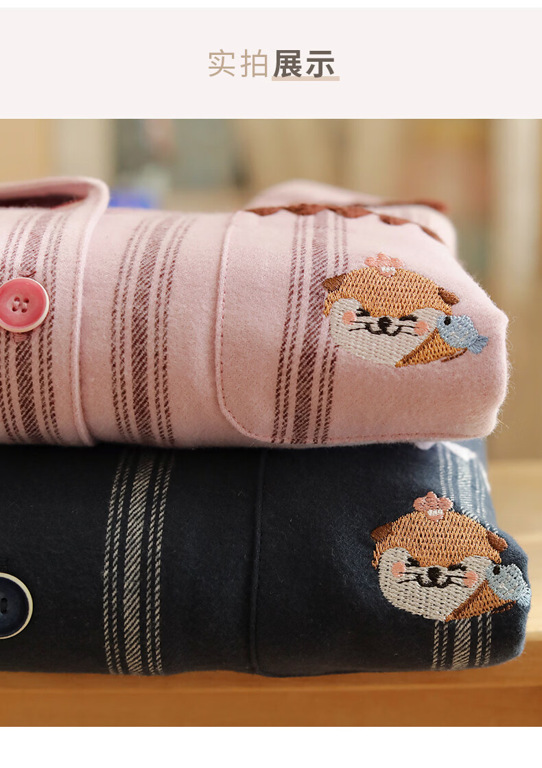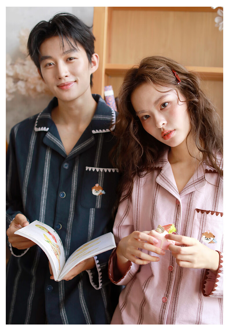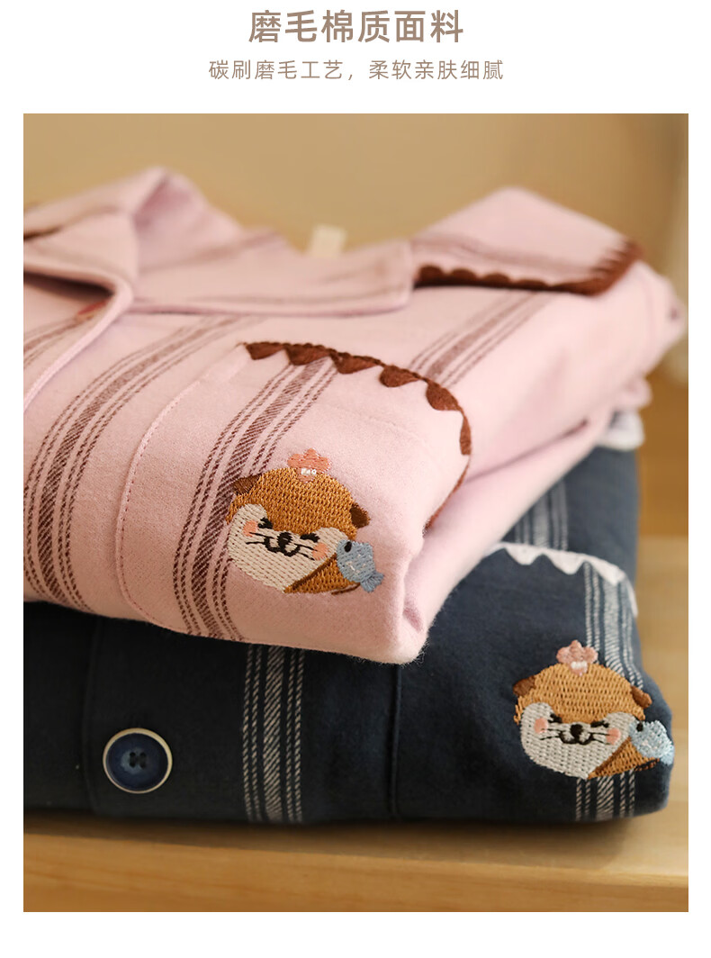 蔓秋 MEJU《萌萌水獭》翻领情侣长袖长裤套装家居服 粉色 L 男士160斤以内 女士125斤以内