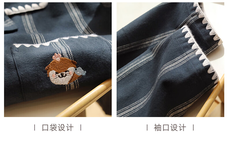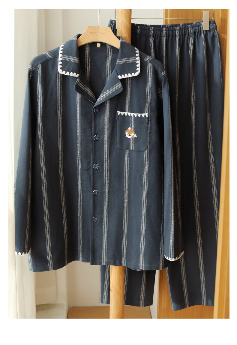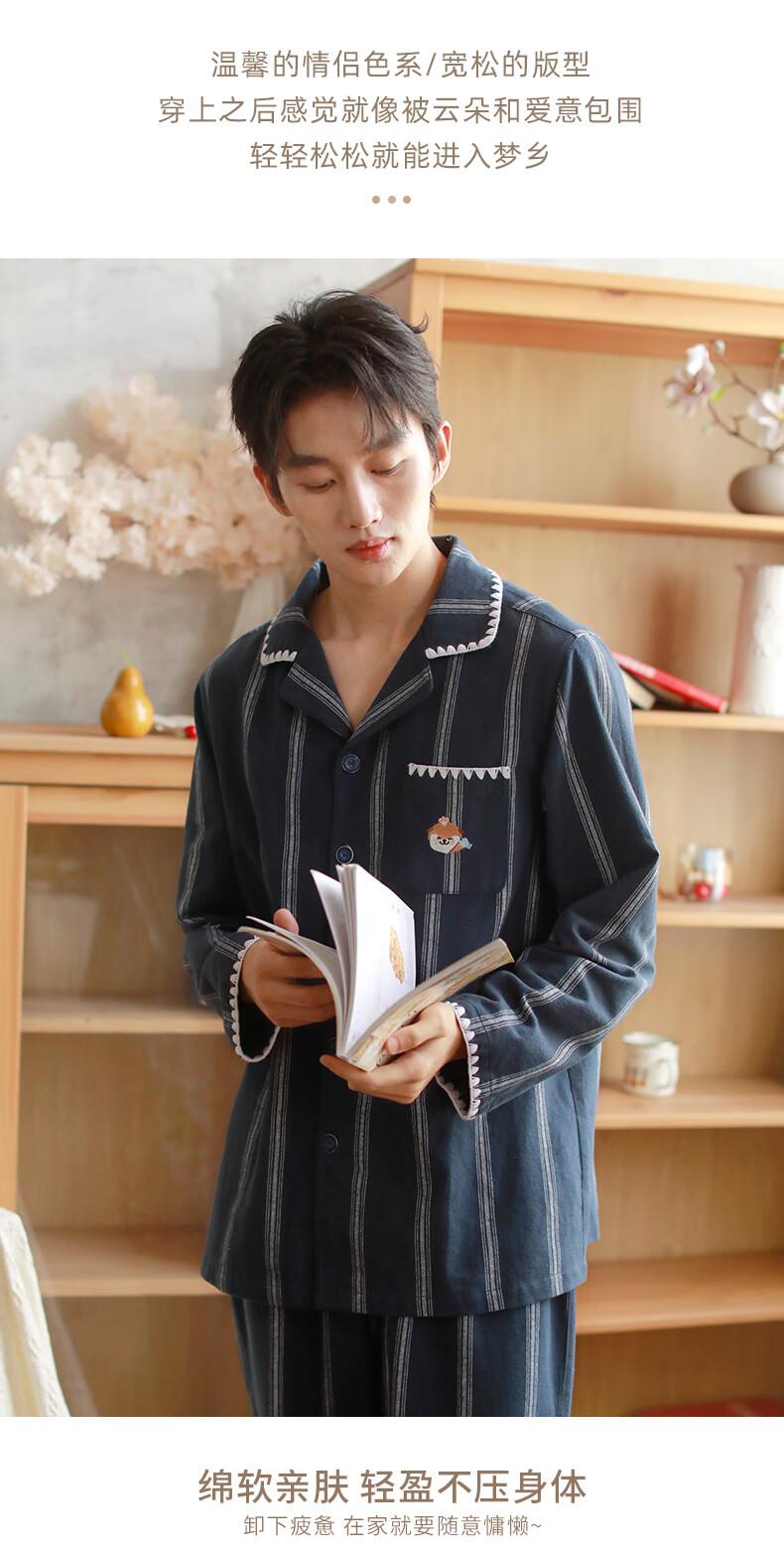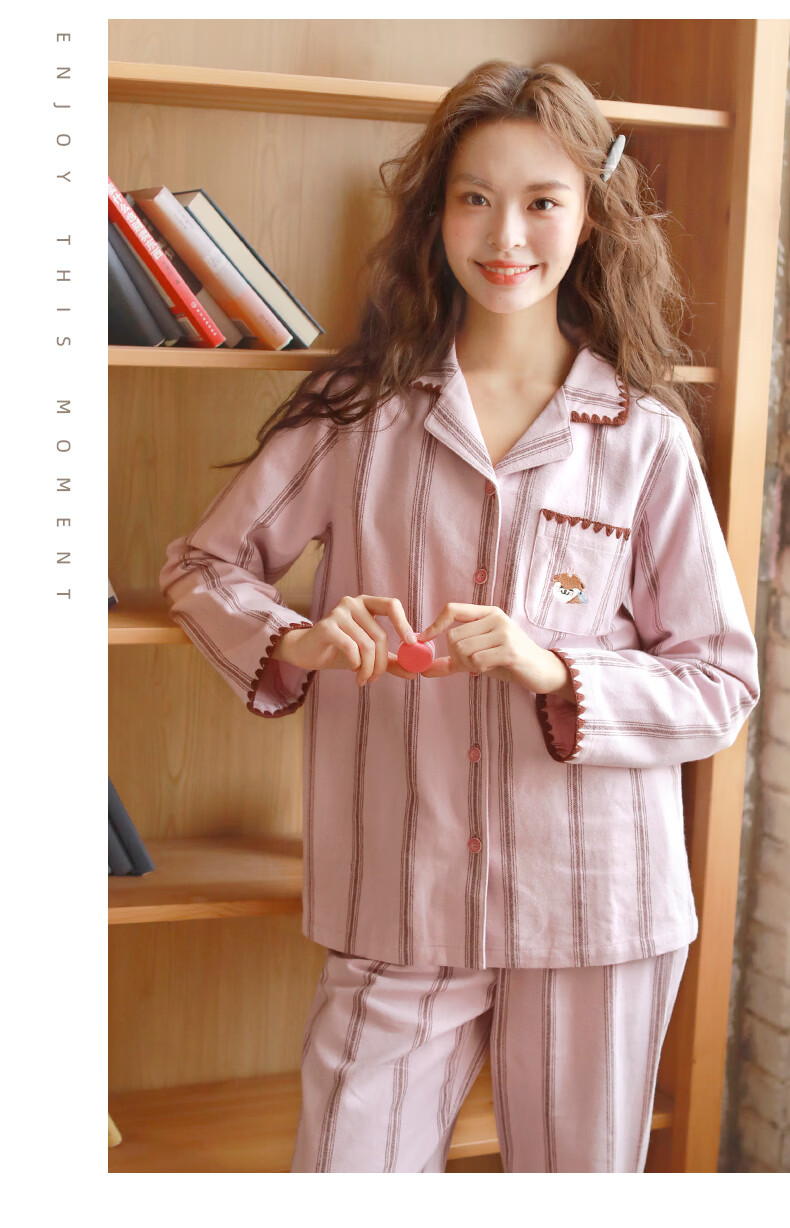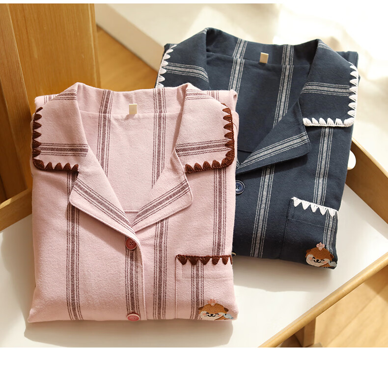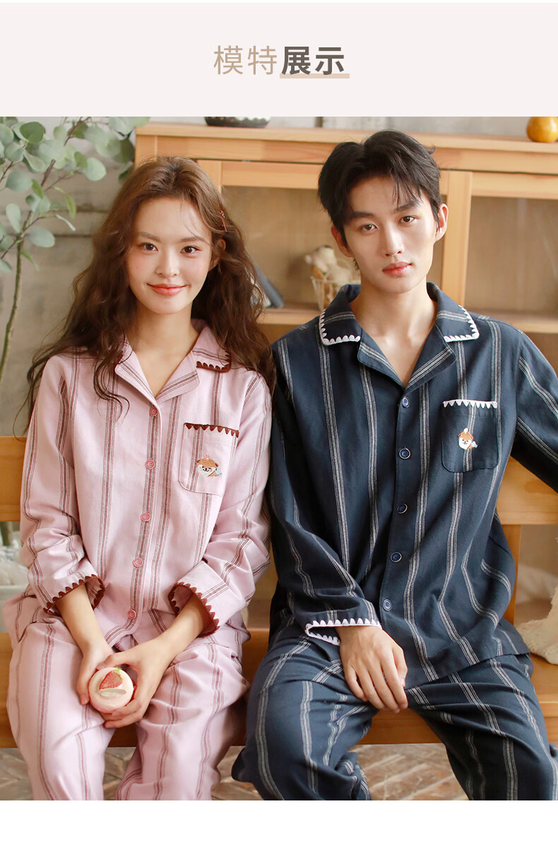 蔓秋 MEJU《萌萌水獭》翻领情侣长袖长裤套装家居服 粉色 L 男士160斤以内 女士125斤以内