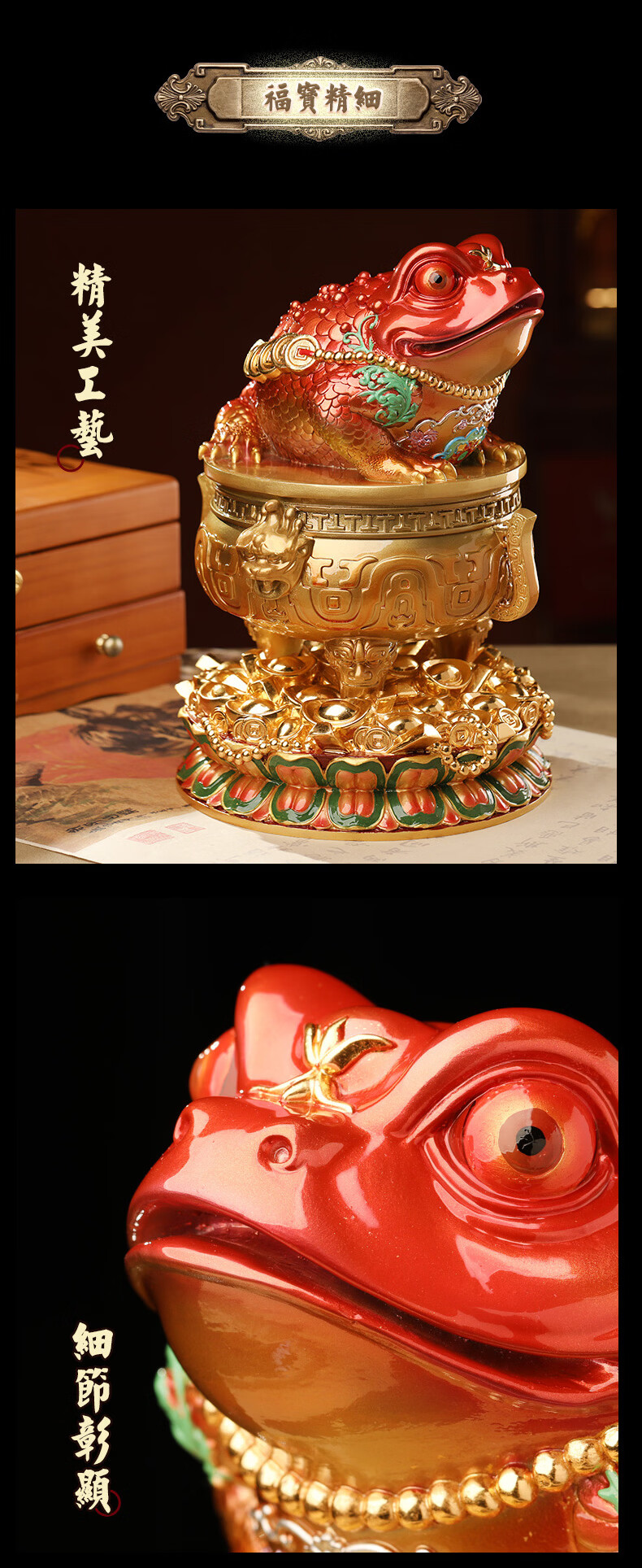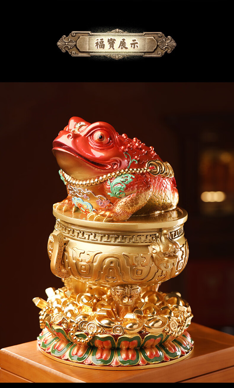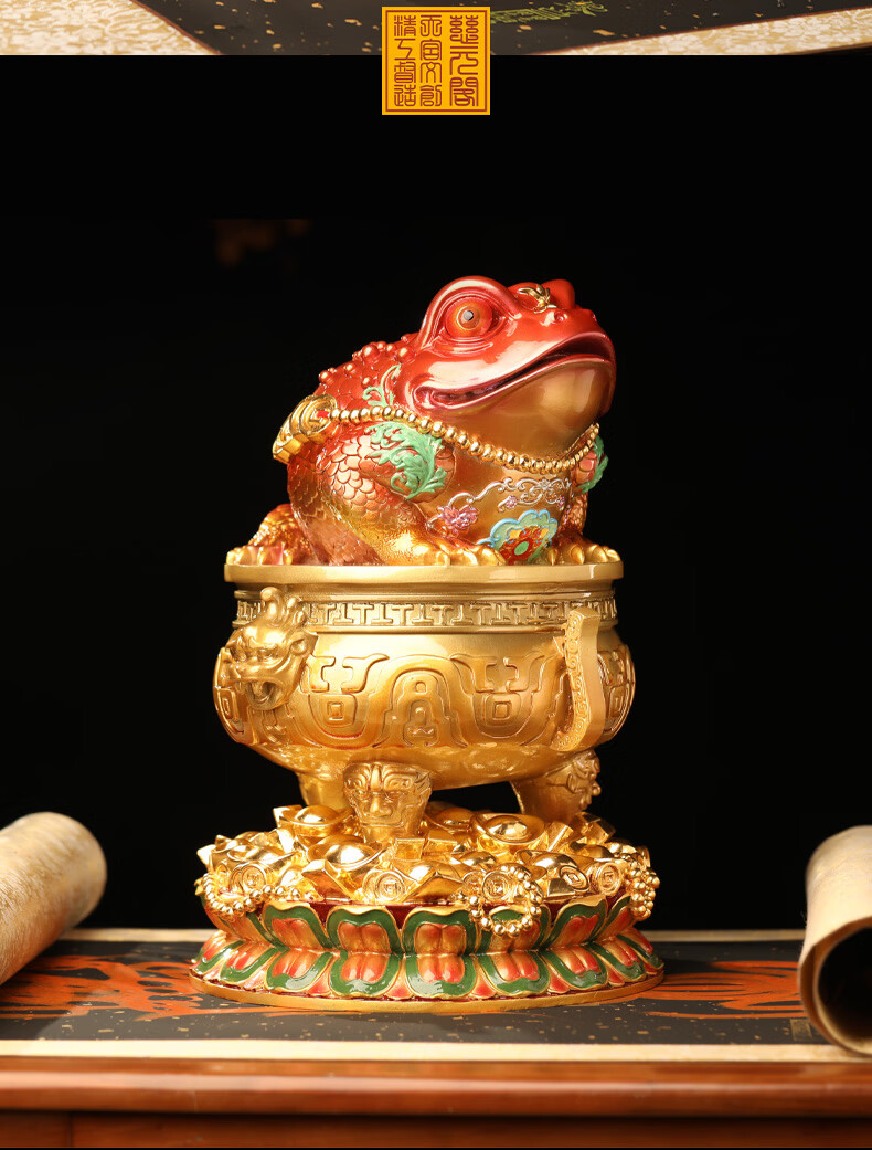 慈元阁金蟾宝鼎开财铜摆件桌面玄关办公室铜摆件电视柜前台家居装饰品 金蟾宝鼎开财铜摆件