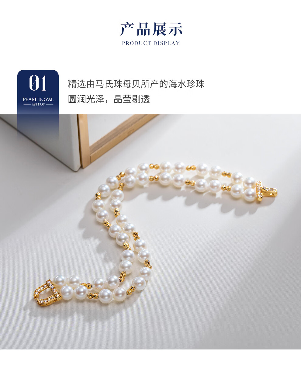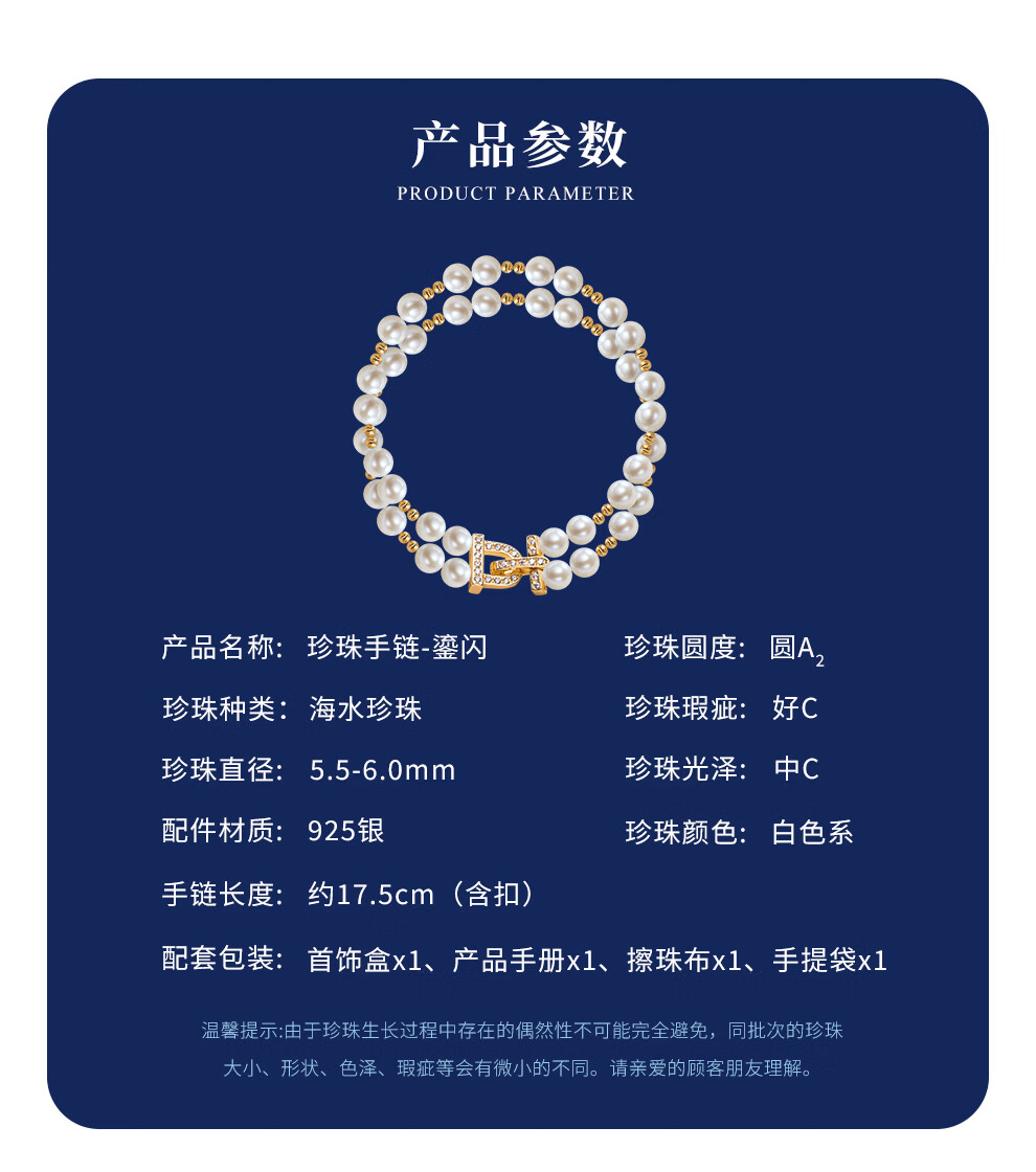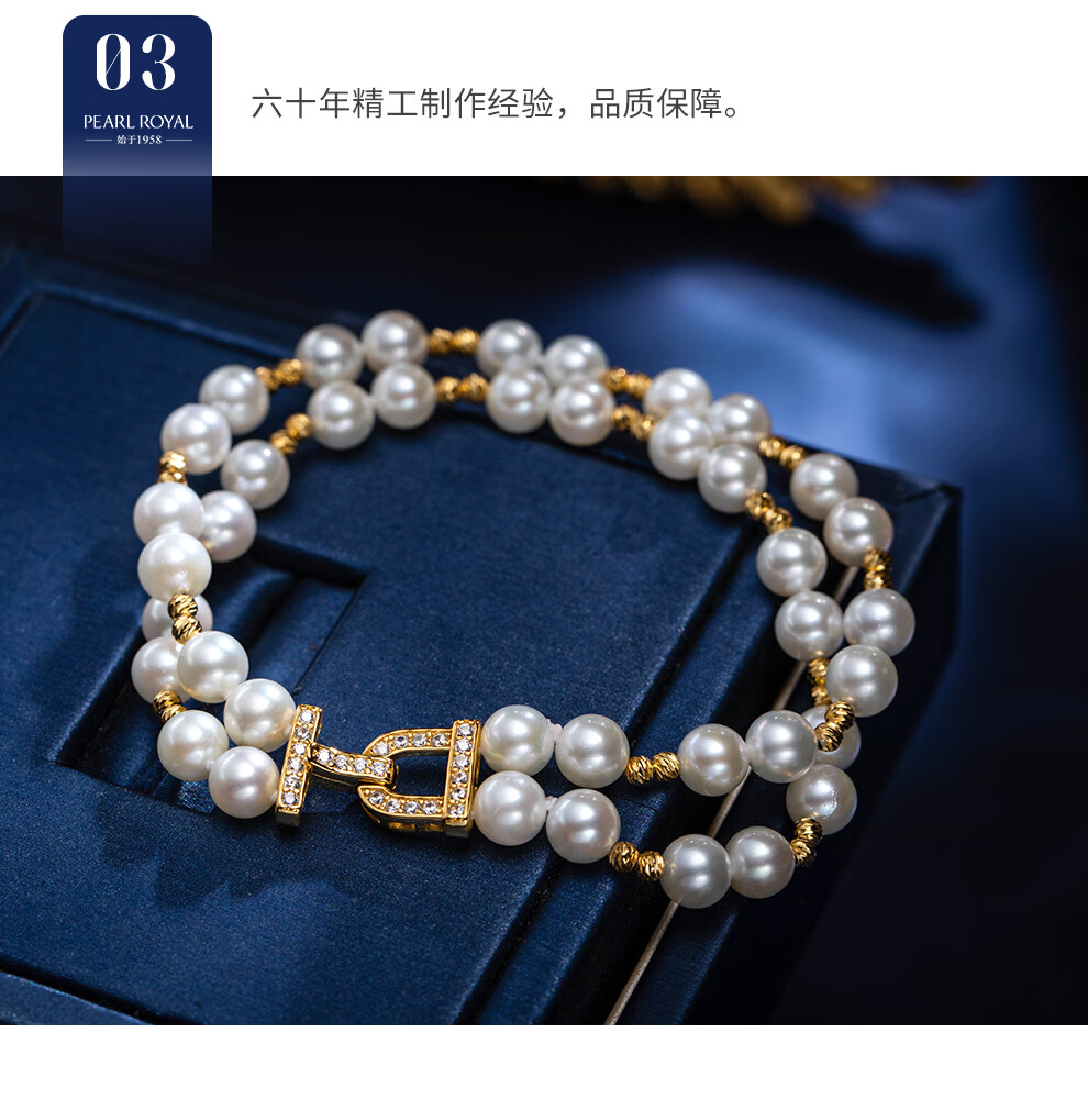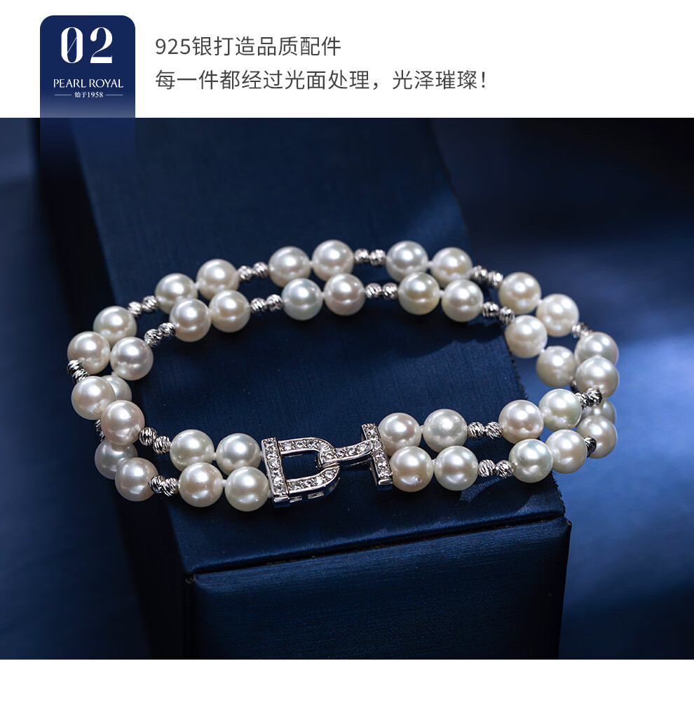 南珠宫鎏闪925银双层海水珍珠手链轻奢百搭高级感新年礼物送妈妈 银色款 5.5-6.0mm