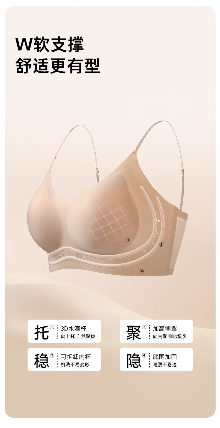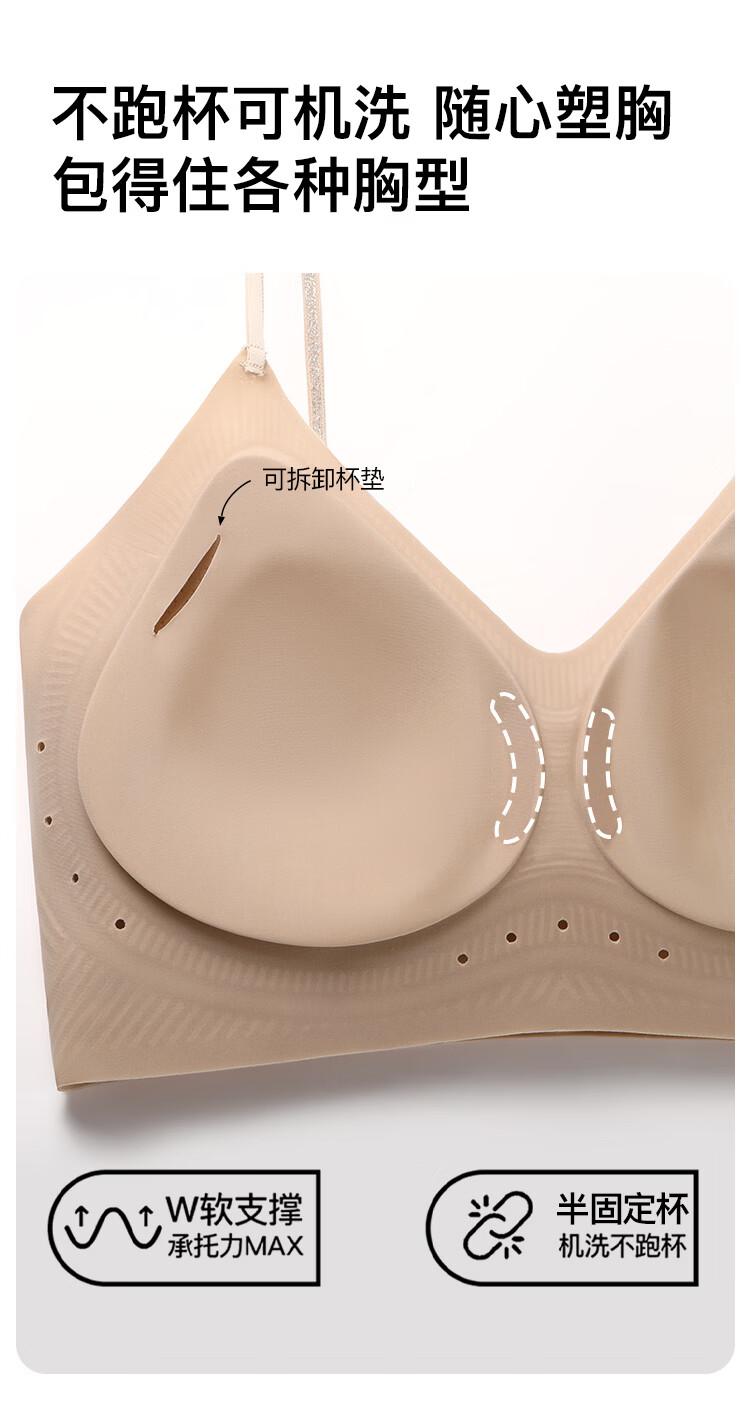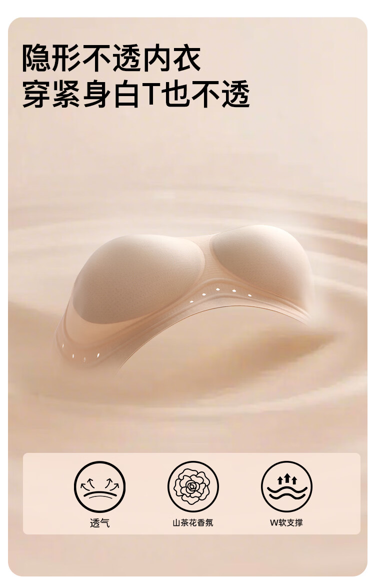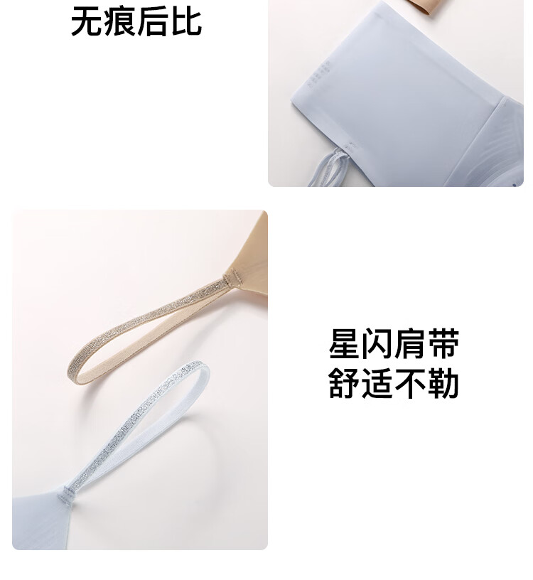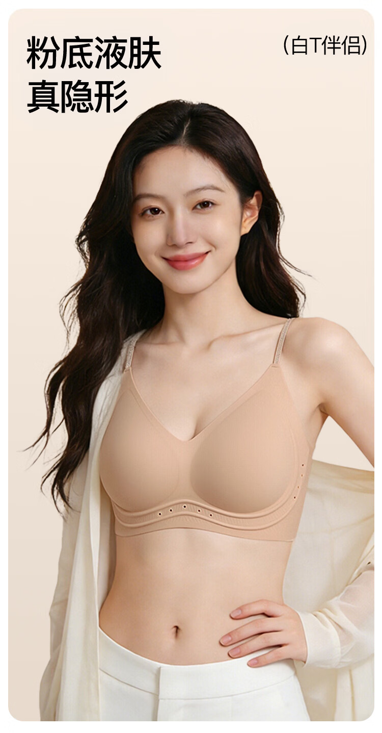 润微山茶花内衣粉底液无痕隐形洞洞杯小胸聚拢舒适肩带美背文胸 淡蓝 S (适合75ABC)