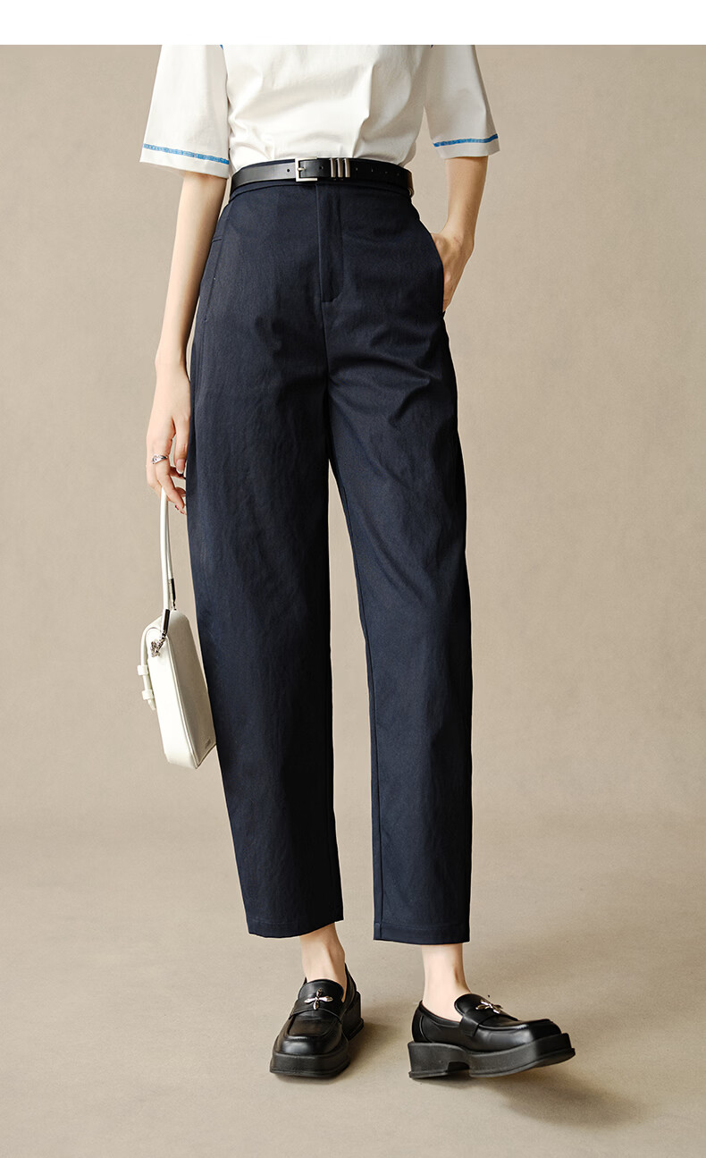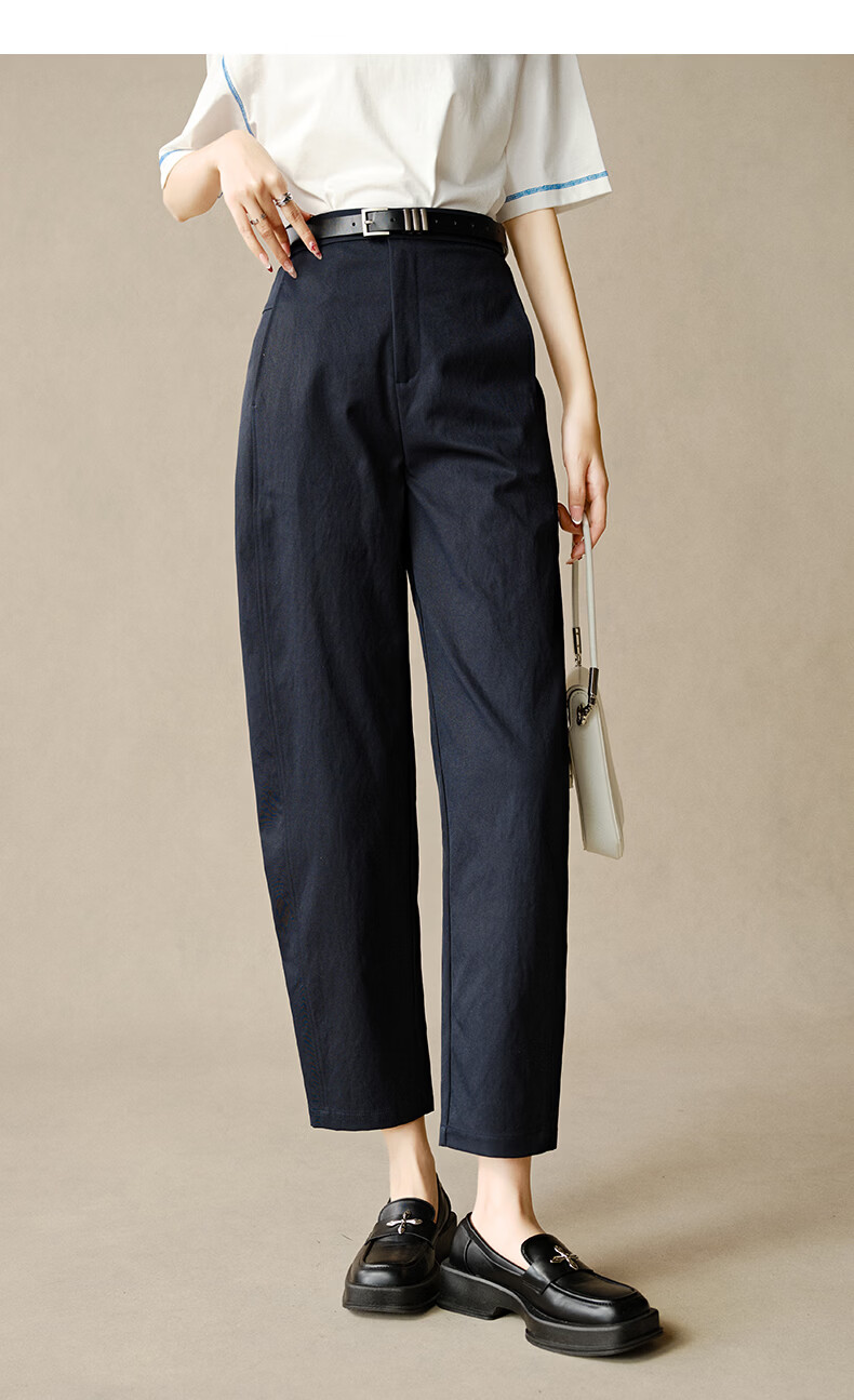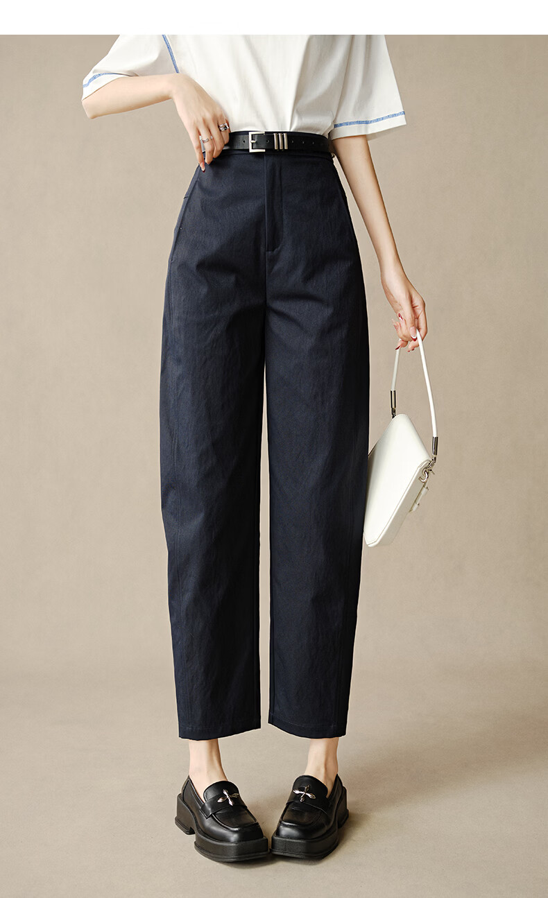 晚白【新品】2026春款时尚半松紧裤子显瘦利落百搭镰刀休闲裤女 深蓝色 27