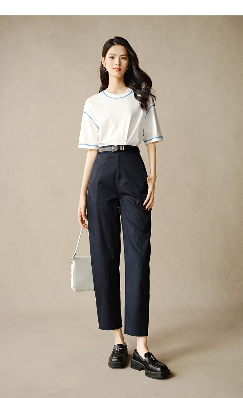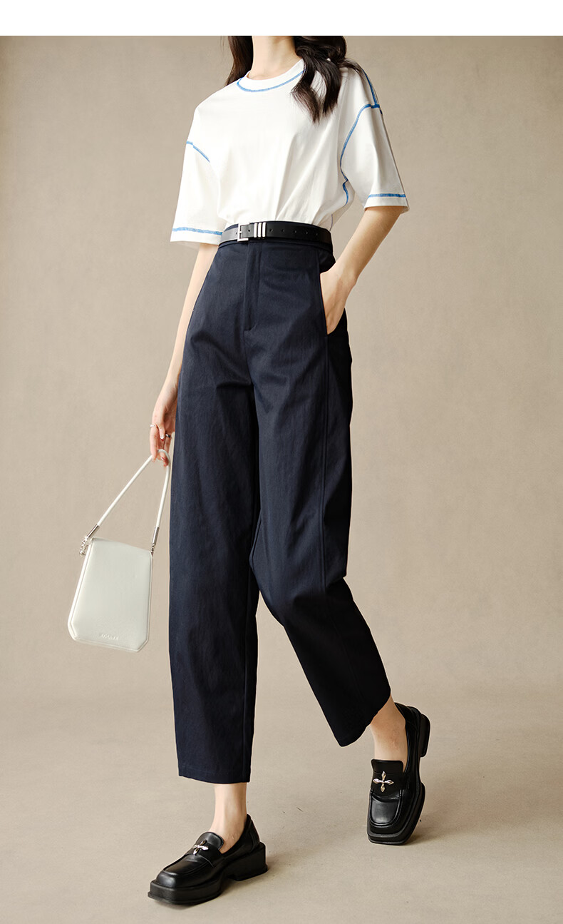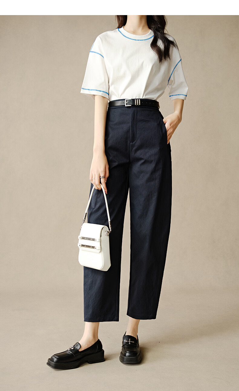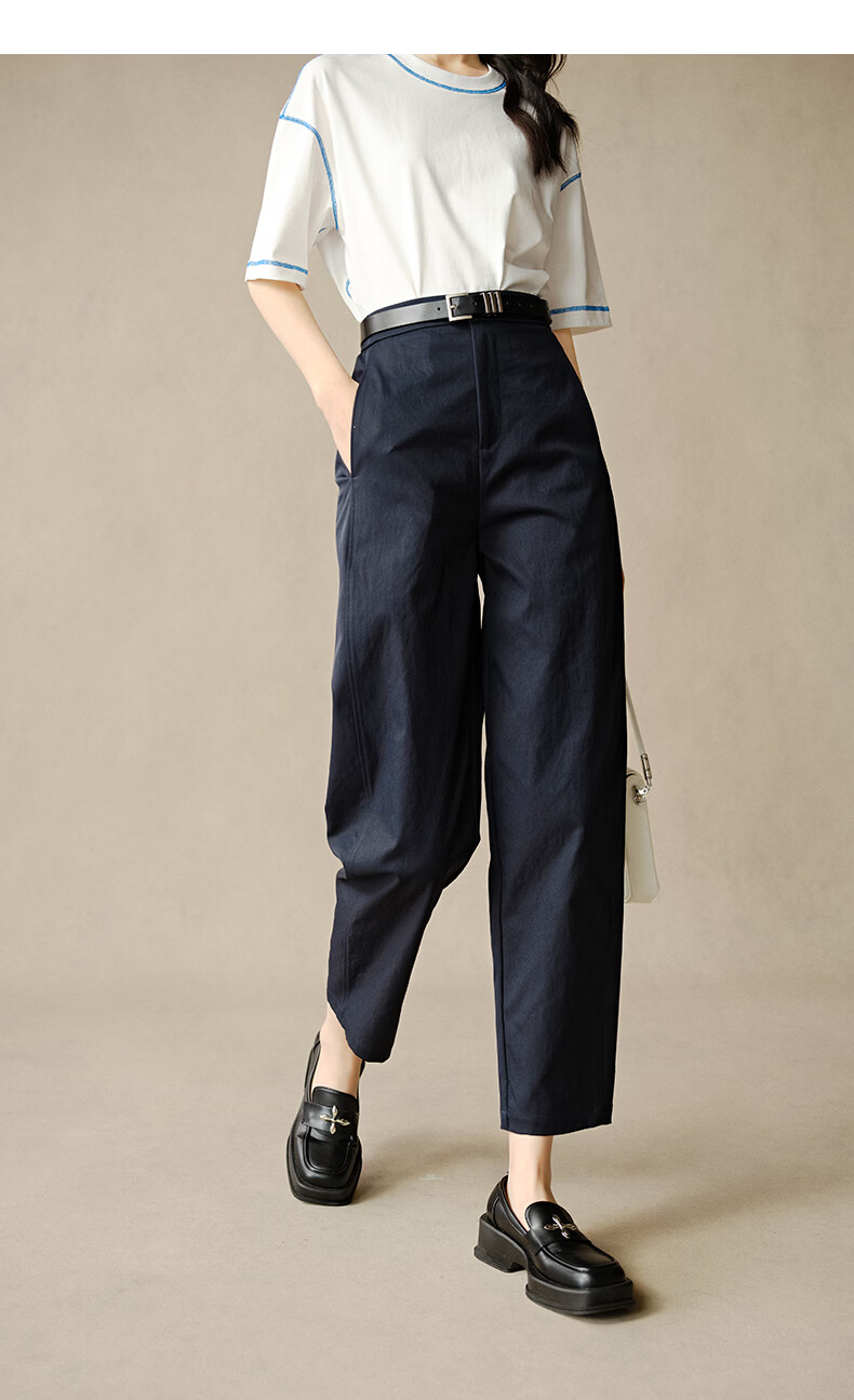 晚白【新品】2026春款时尚半松紧裤子显瘦利落百搭镰刀休闲裤女 深蓝色 27