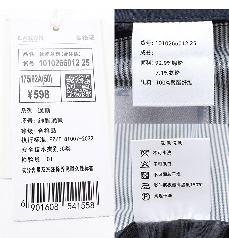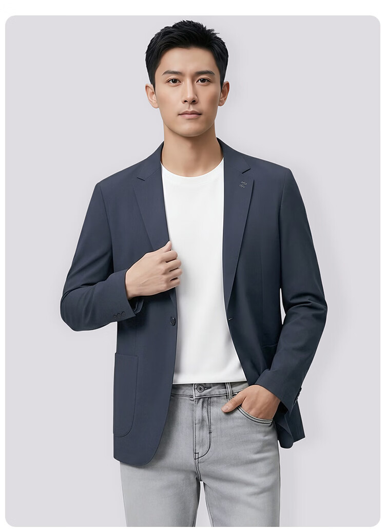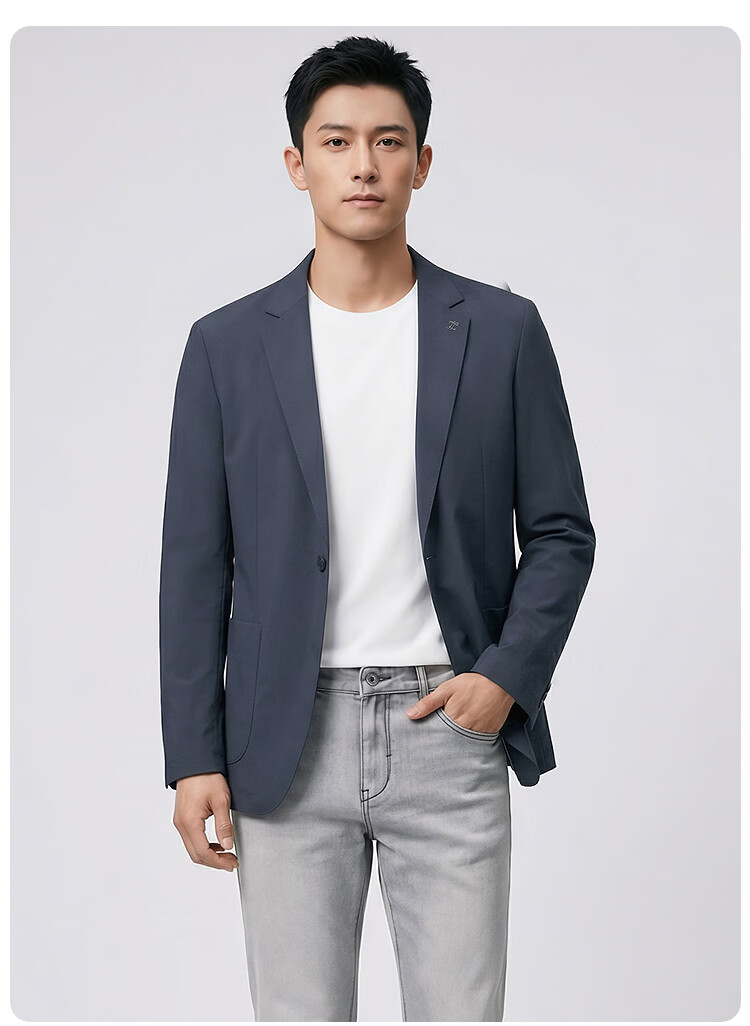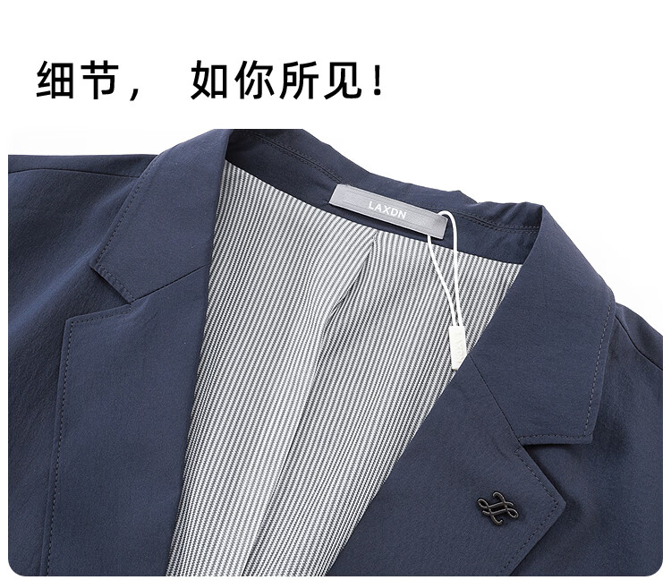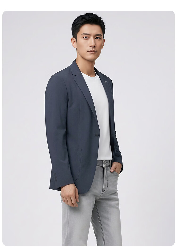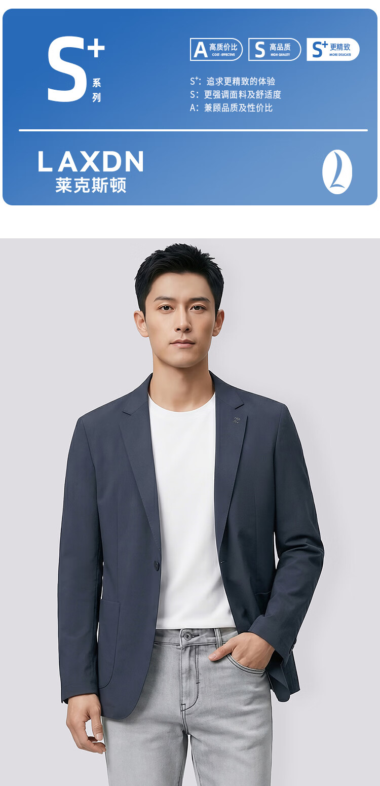 莱克斯顿(laxdn)西服男春秋新款微皱肌理防泼水新中式商务正装高级轻奢修身单西男 灰蓝 46