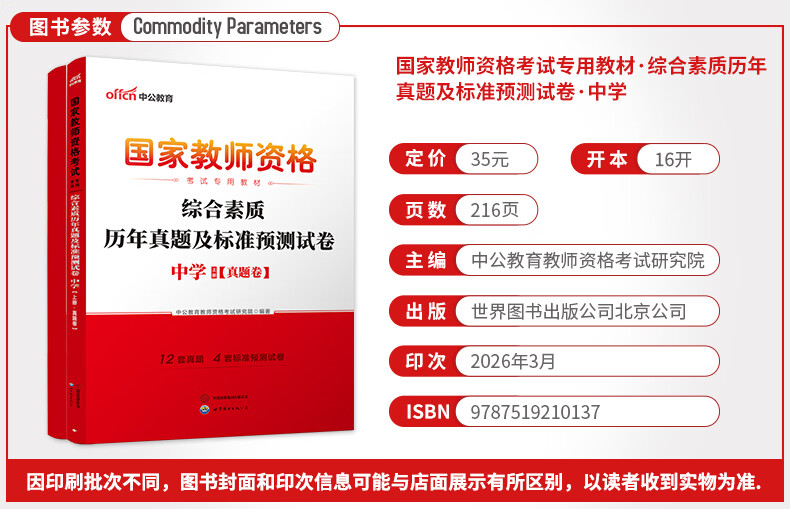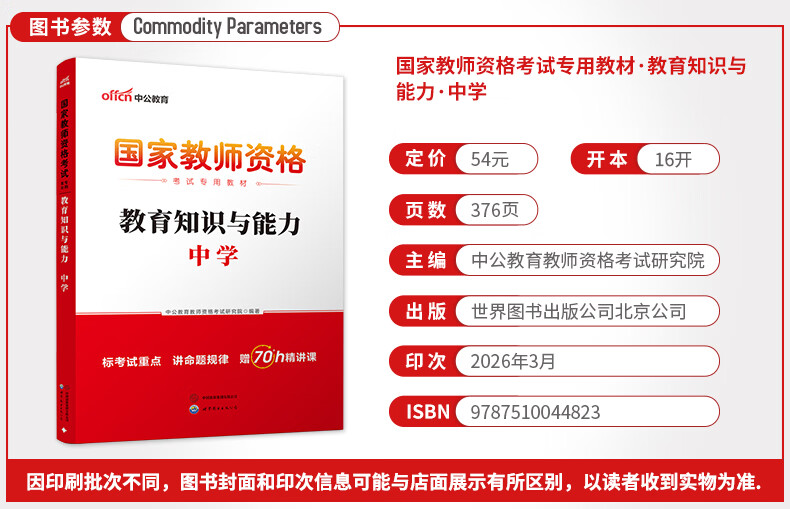 中公教育教资考试资料2026下半年初中高中教师资格证考试教材用书中学中职教资历年真题试卷预测卷教材:综合素质教育知识与能力 教资初中高中语文数学英语物理化学生物地理历史等中学各学科公共科目通用科目一二