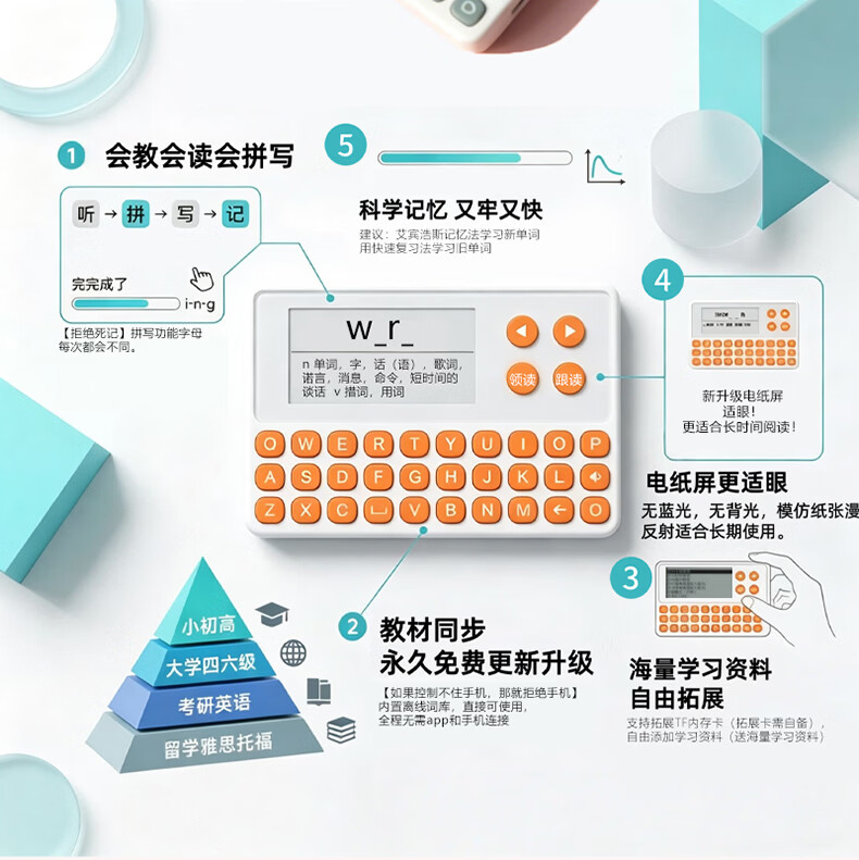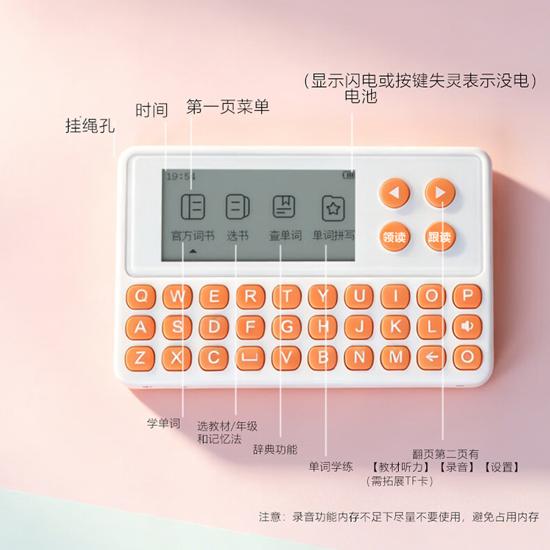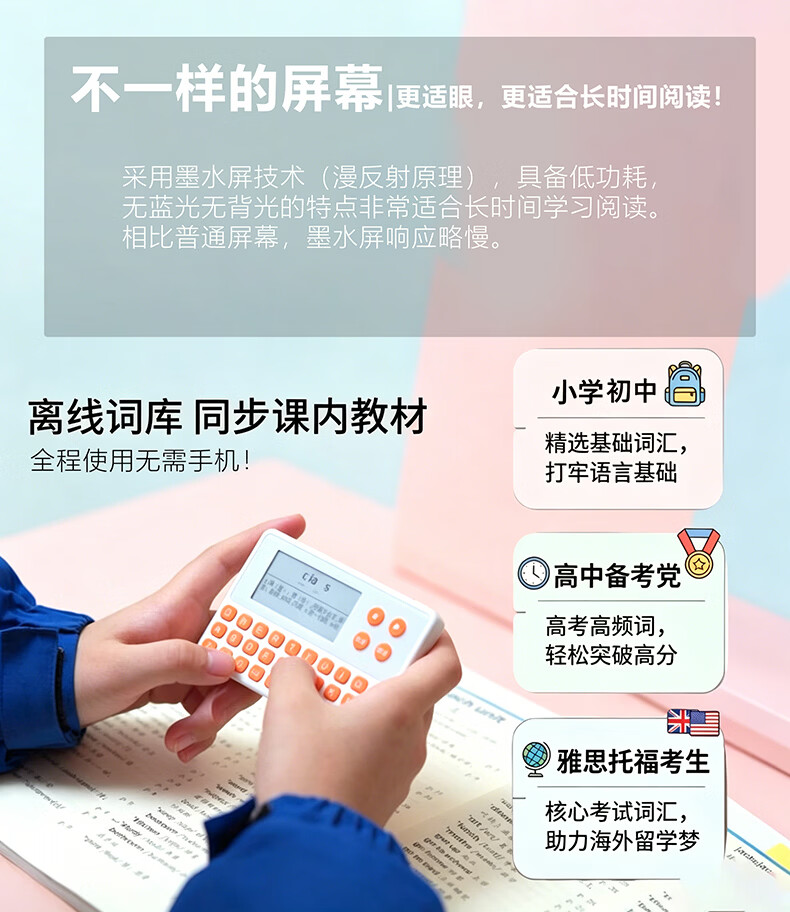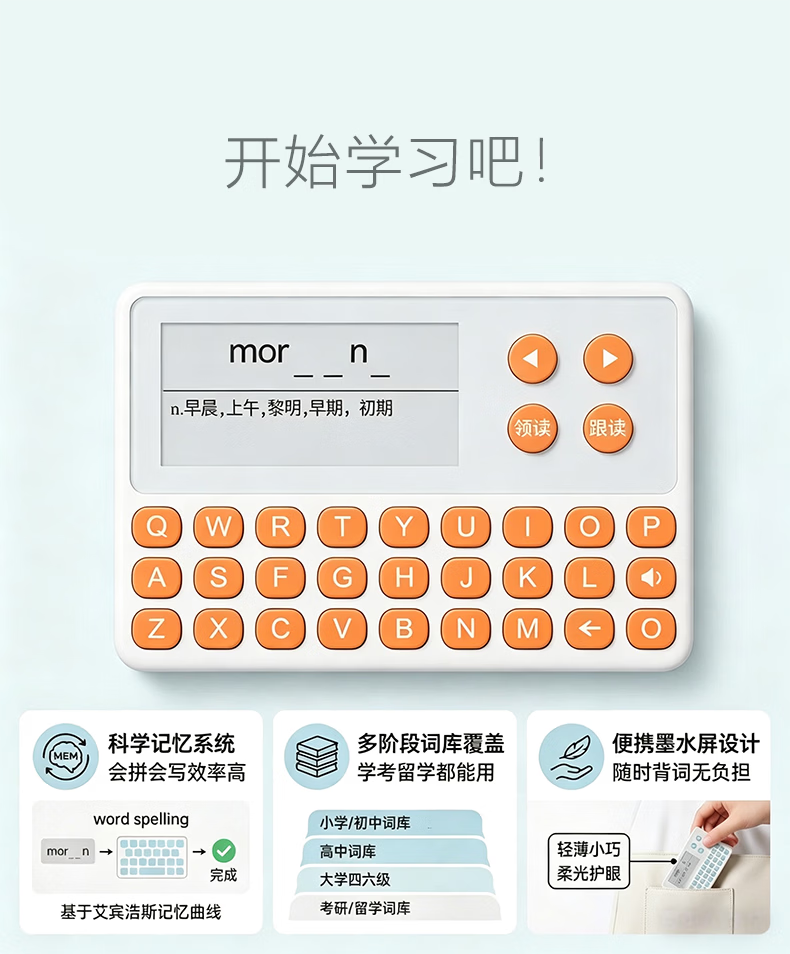 乐肯英语单词机电子单词卡学习机真人发声墨水屏英语背诵单词神器小学初中高中高卡3500大学新概念雅思 【旗舰新品推荐】s10灰键+1年换新+保护套+耳机