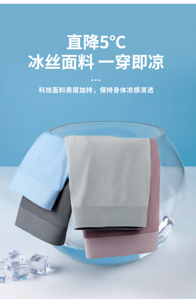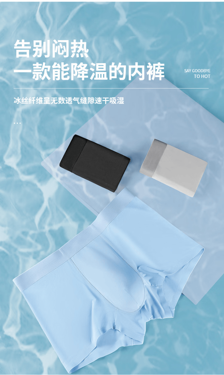 冰丝男士内裤 平角无痕 冰爽凉感 不褪色不起球3条装混色 「星野系列」深碳灰+银雾灰+晴空蓝 3条 3XL (185) 【适合160-180斤穿】