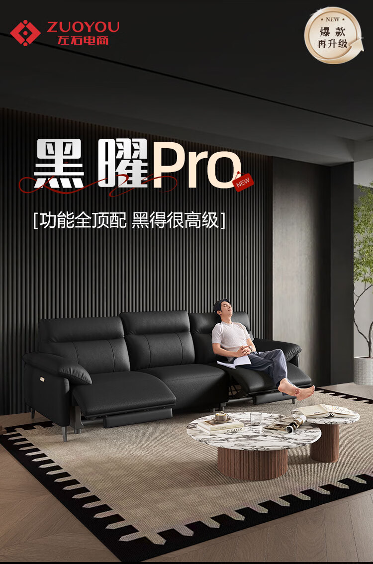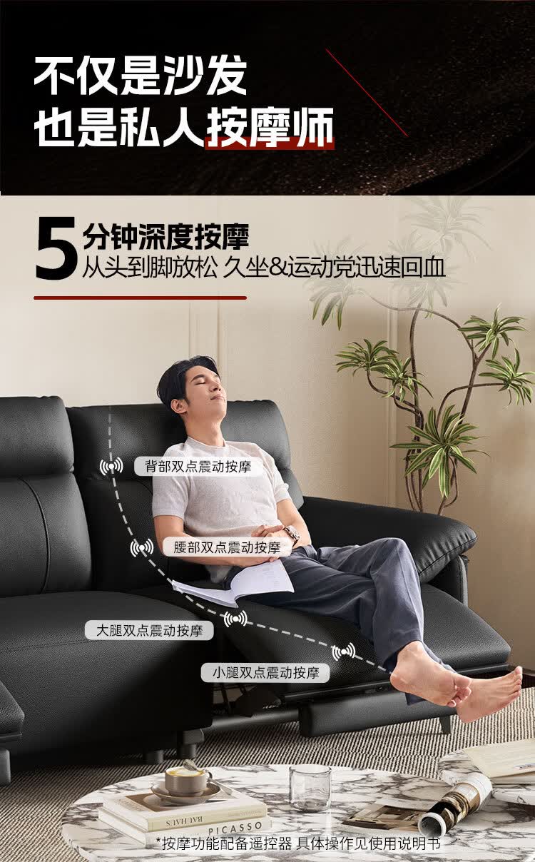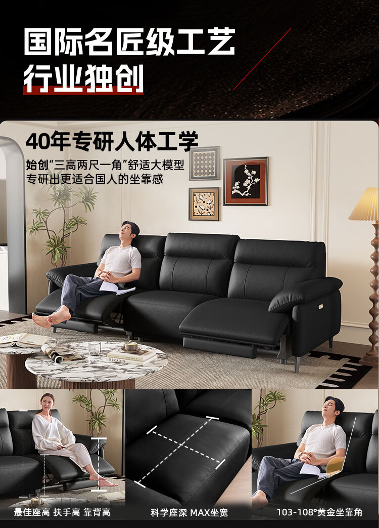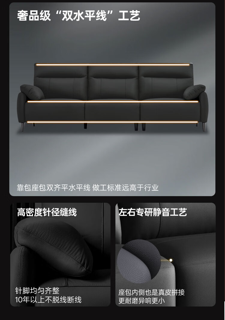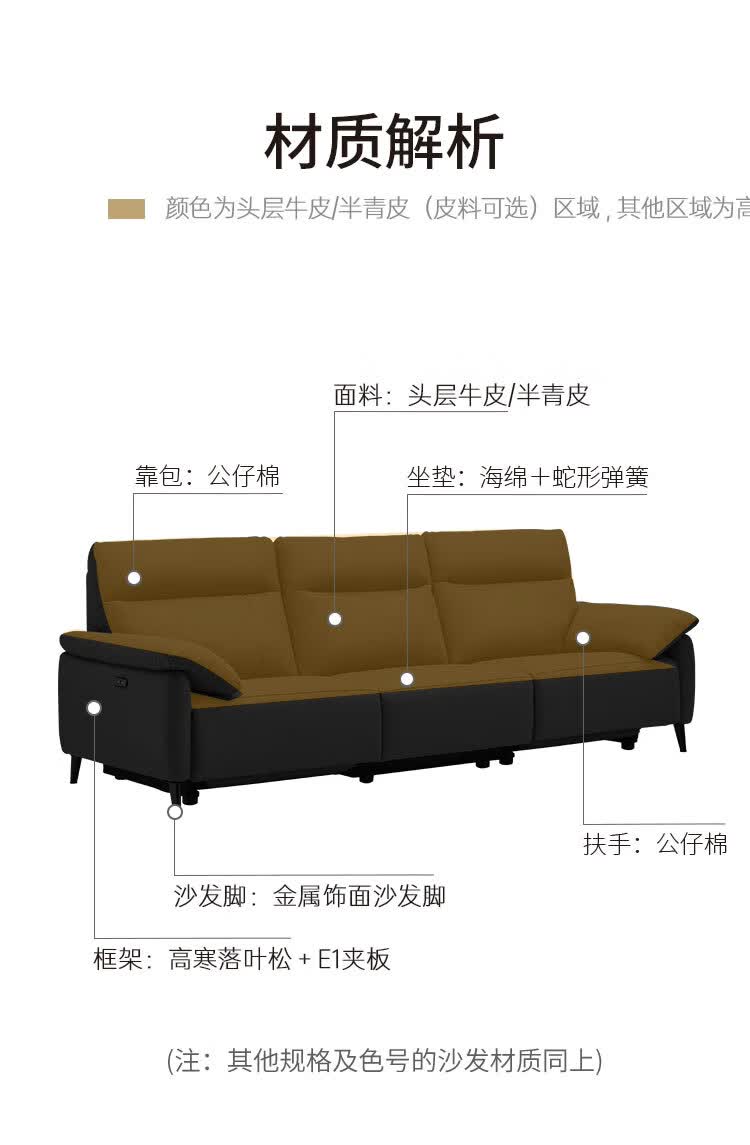 左右半青皮真皮艺沙发简约现代家具可按摩零靠墙电动功能沙发6013-X 【半青皮】2.7m三人位双电动 琥珀咖