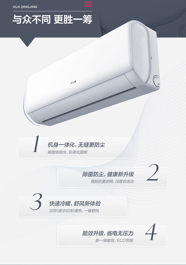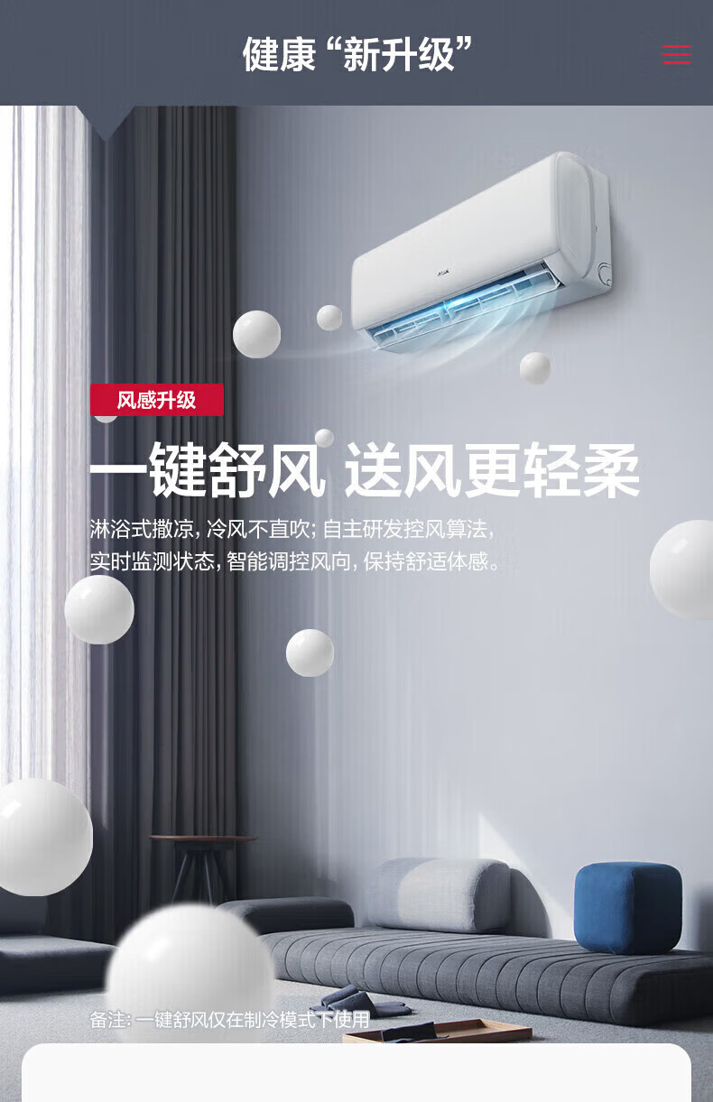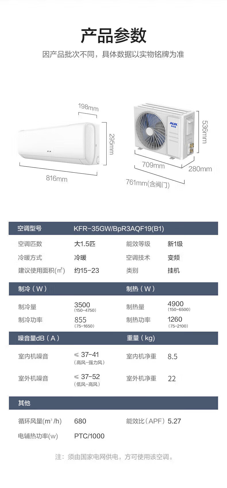 奥克斯空调大1.5匹 倾静新一级能效 变频冷暖 节能防直吹 挂机KFR-35GW/BpR3AQF19(B1) 【经济款大1.5匹挂机】倾静一级能效