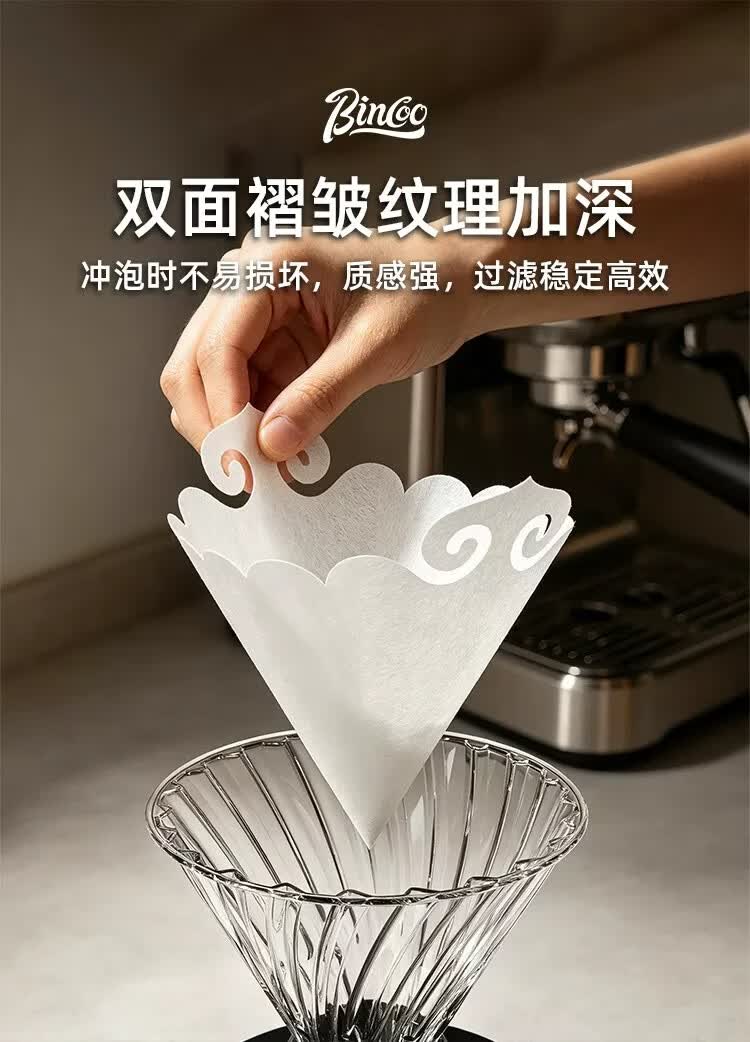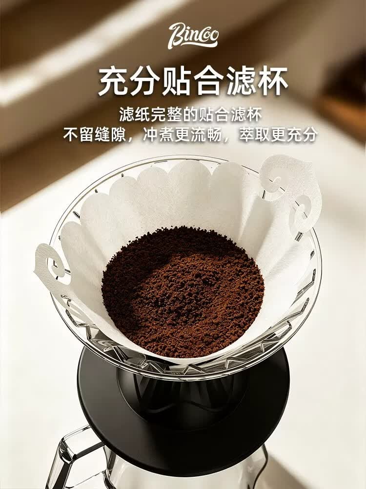 Bincoo咖啡滤纸V02手冲滤纸滴漏式手冲咖啡壶通用创意个性滤纸 V02大号滤纸-40枚