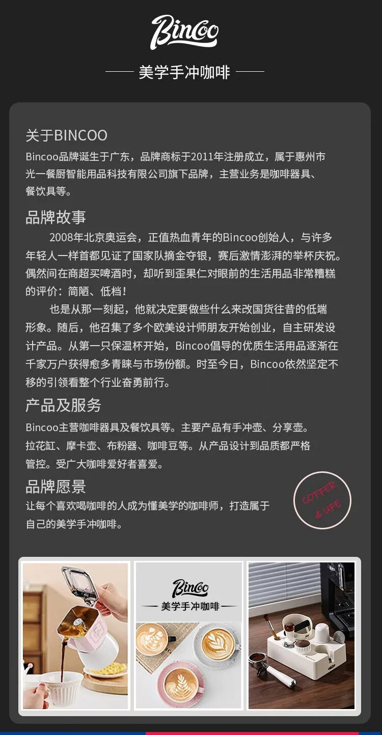 Bincoo手冲咖啡壶套装过滤分享壶陶瓷滤杯手磨咖啡磨豆机家用便携 渐变粉-两件套
