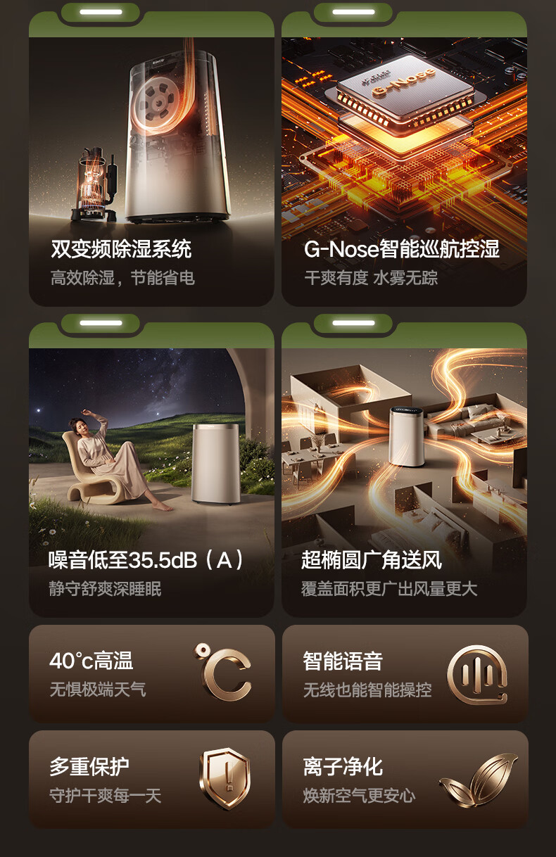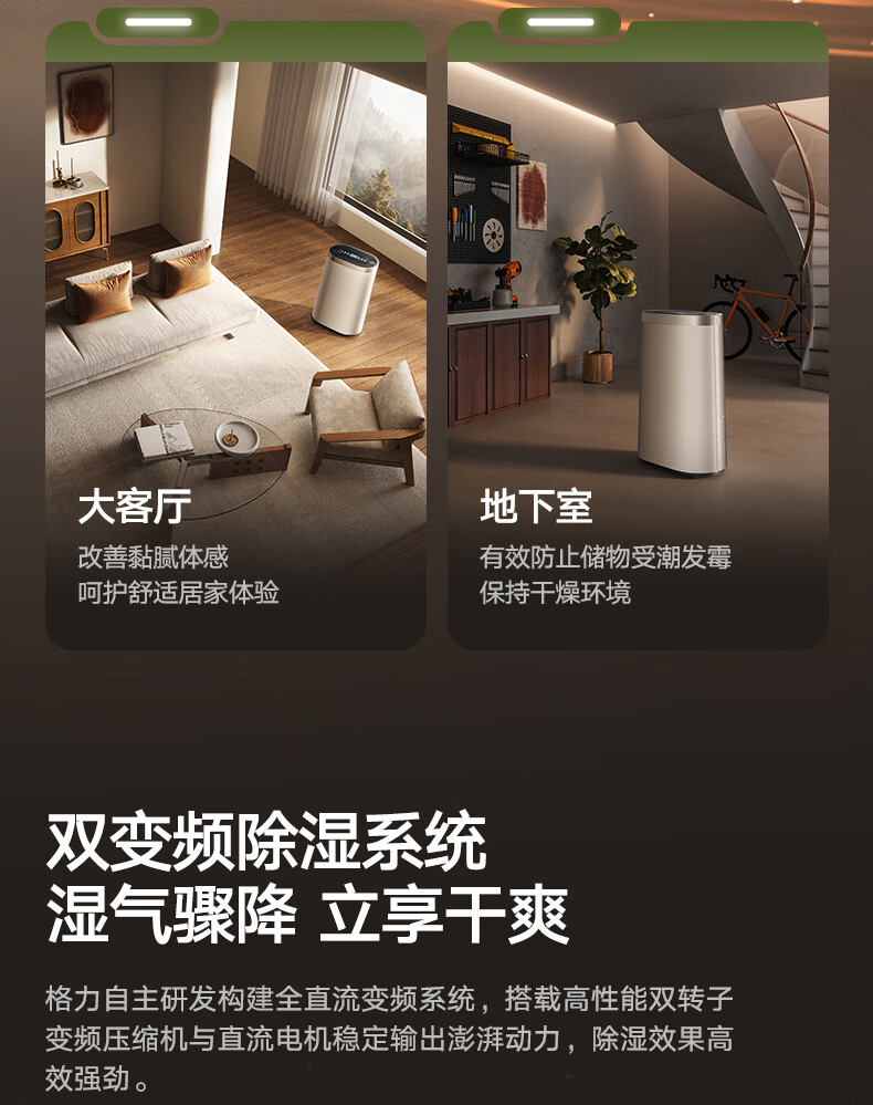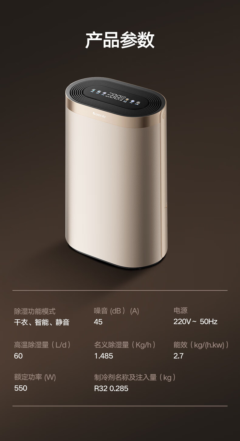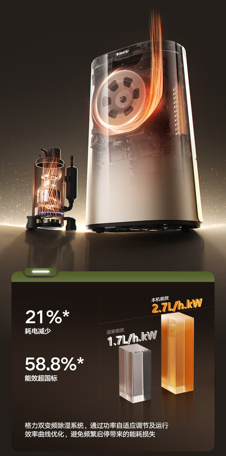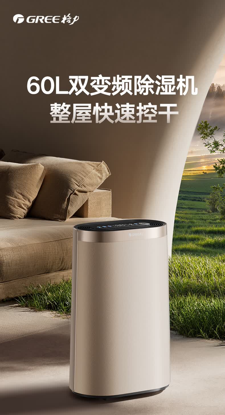 格力双变频除湿机家用抽湿防潮霉干衣Ai智能语音离子净化香薰盒轻音节能60升/天DH60FTA1A(WIFI)