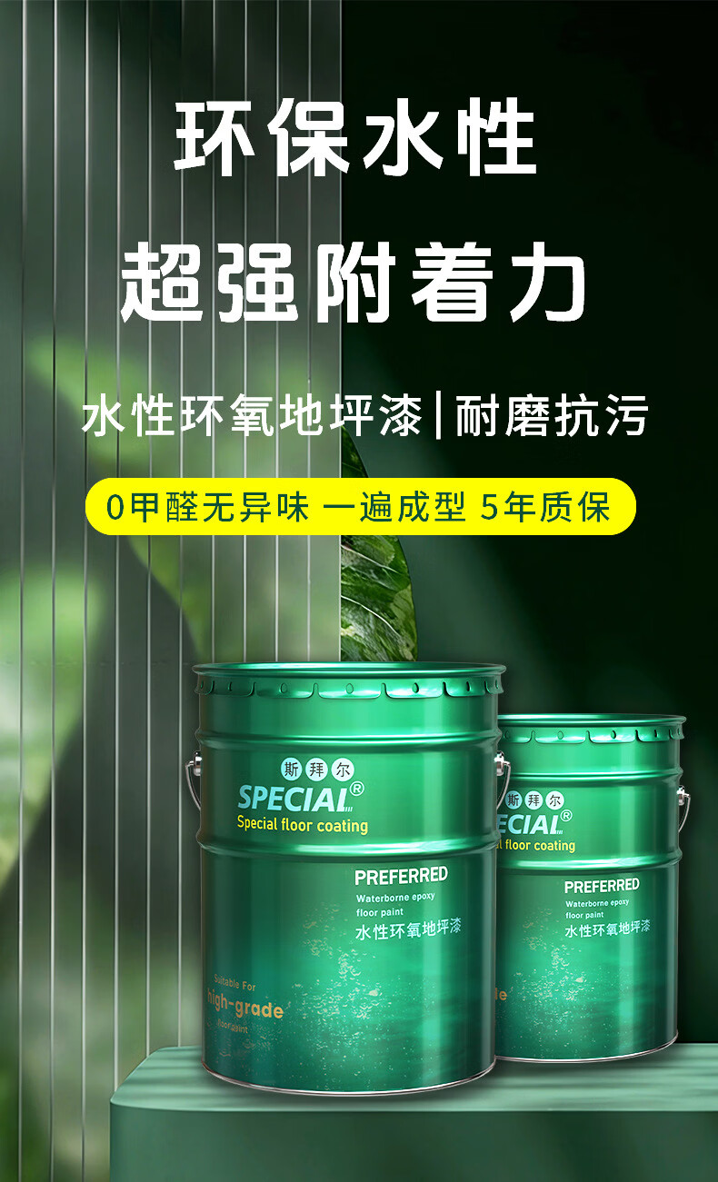 斯拜尔工业级水性环氧地坪漆耐酸碱高硬度抗重压5H自流平混凝土水 标准绿色 30平方套餐水性环氧树脂一遍成型(5KG装)