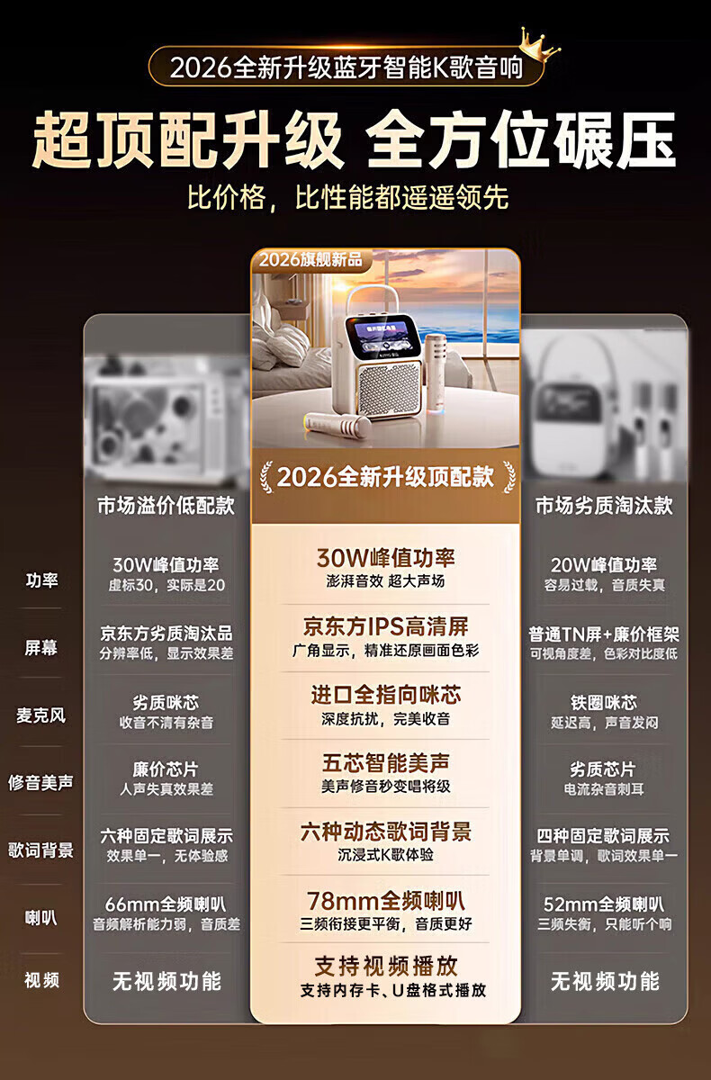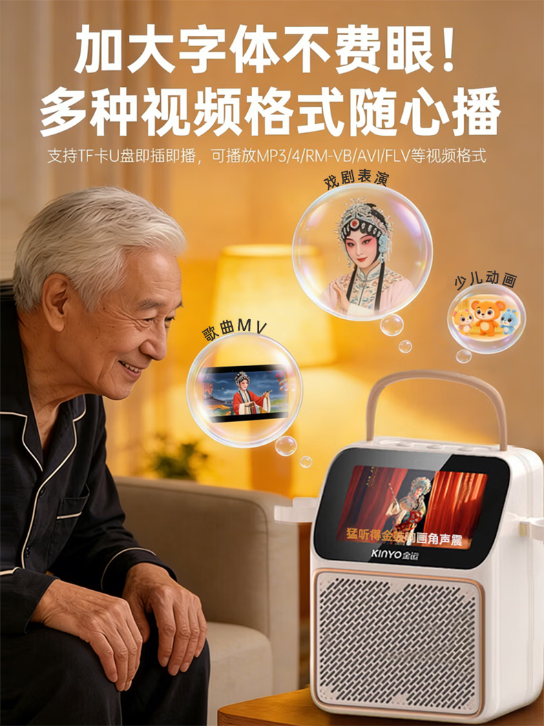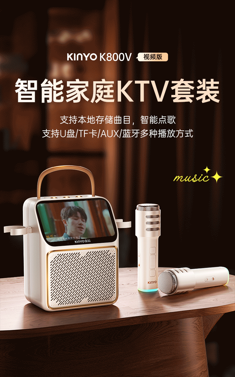 金运(KINYO)【可播视频】动态歌词K歌麦克风音箱一体机家庭KTV套装触屏点歌卡拉OK户外蓝牙音响新年礼物K800V